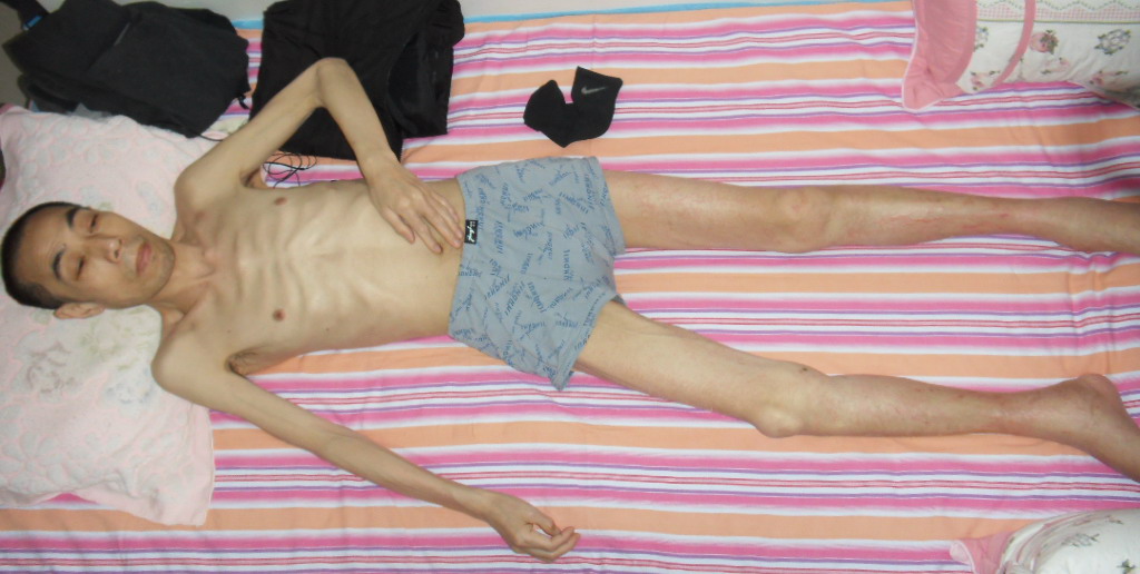 ![]() 刚被营救出狱的滑连有,绝食617天,体重仅剩70斤。 |