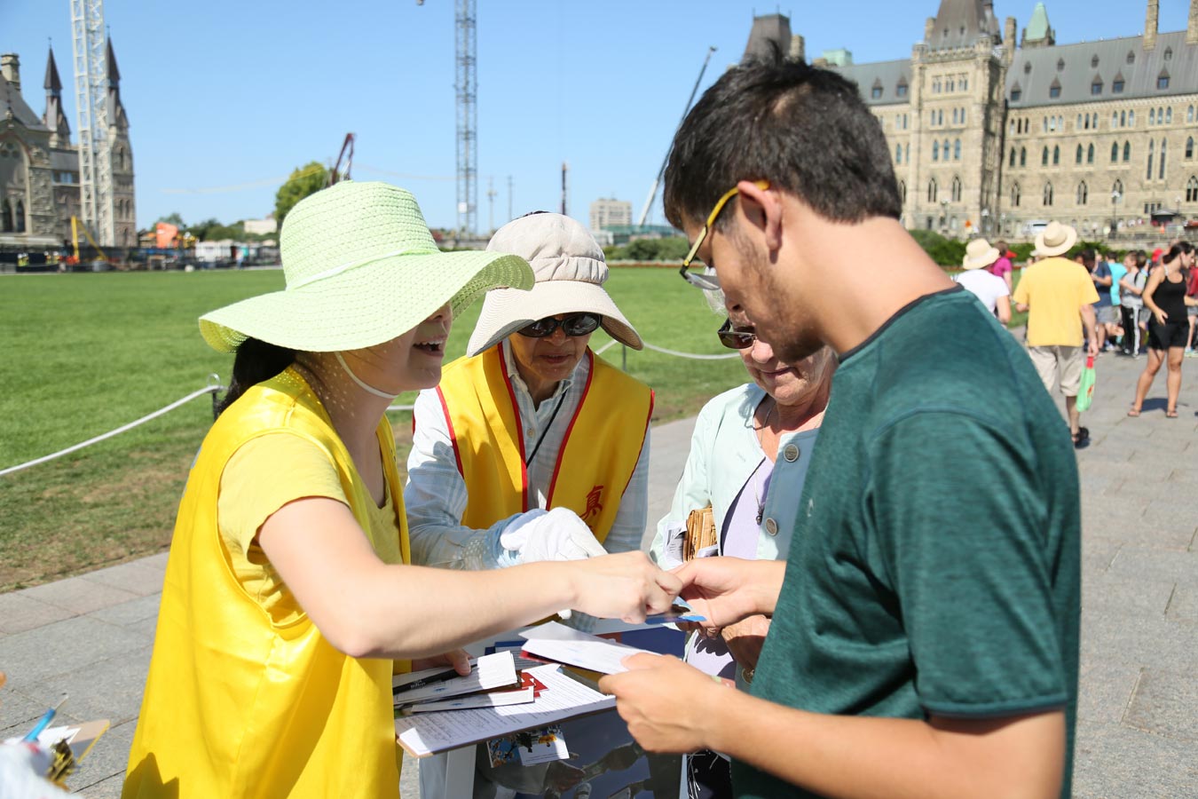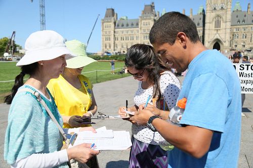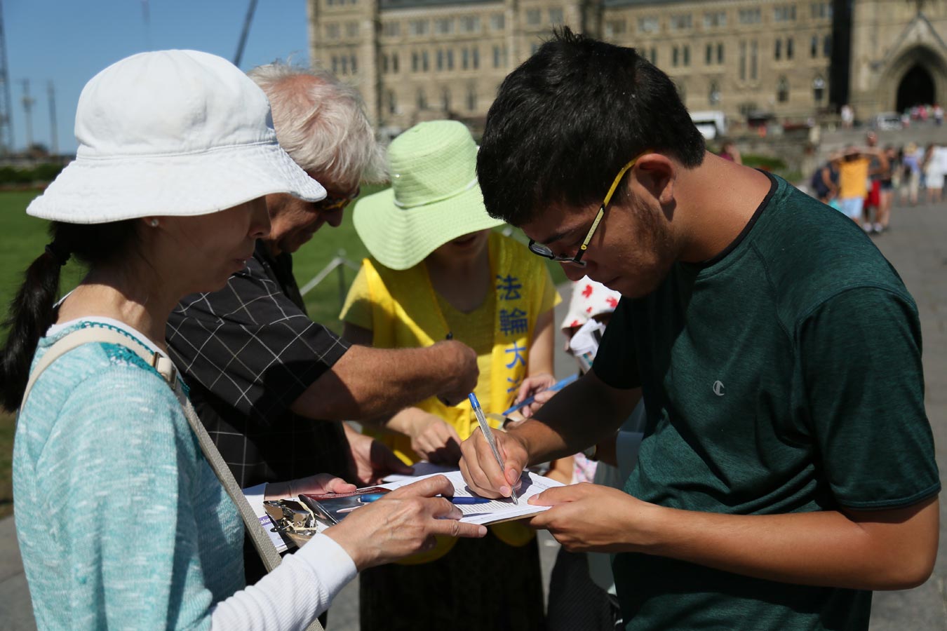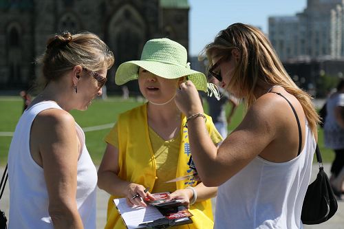 ![]() 图2-5:八月二十六日,法轮功学员在加拿大首都渥太华国会山征签,呼吁即将访华的加拿大总理敦促中共停止迫害。 |
