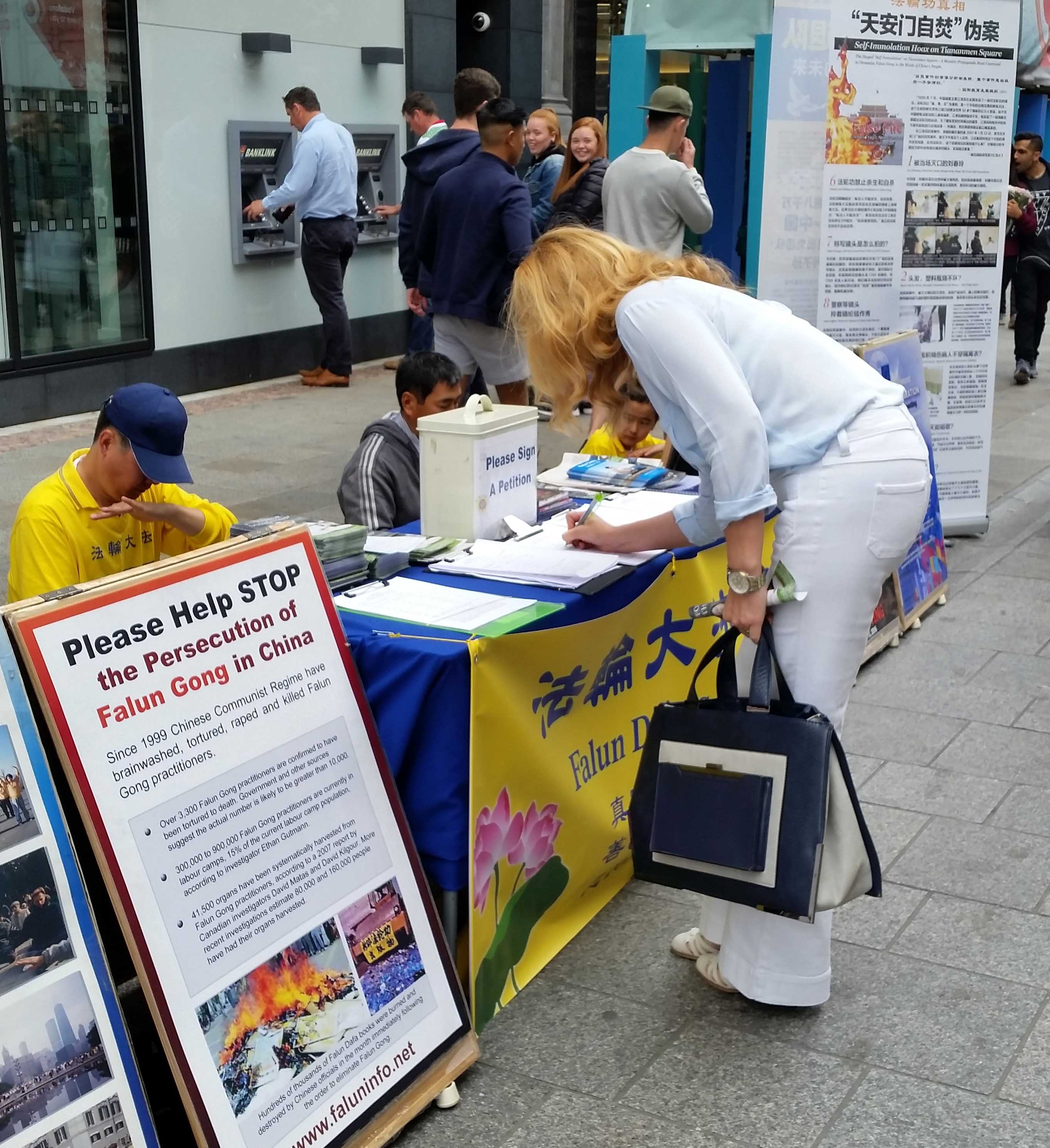 法轮功学员十七年的坚持和努力使许多爱尔兰人明白了中共残酷迫害法轮功的真相,他们告诉法轮功学员:“我已经签名了。”“我看过那部反映迫害的纪录片,太可怕了,这种罪行必须制止。”“还有新的签名吗?我要签。”