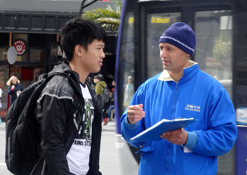 ![]() 图1:奥克兰法轮功学员在市中心的奥缇亚(Aotea)广场举行“停止迫害法轮功,揭露中共活摘法轮功学员器官罪恶”的反迫害活动。 |