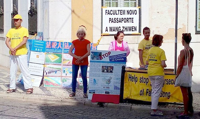 【明慧网二零一六年八月三十日】二零一六年八月二十五日,葡萄牙部分法轮功学员在里斯本中使馆前举办和平抗议,谴责中共非法阻挠王治文赴美与女儿团聚,强烈要求中国现政权立即重发护照,还王治文自由;而且将迫害法轮功的元凶江泽民、曾庆红绳之以法。