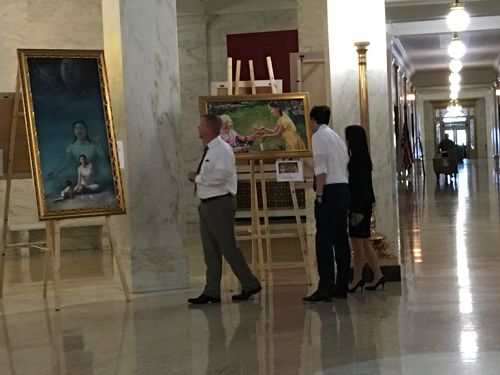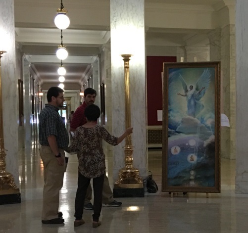 从八月十二日开始,在西弗吉尼亚州政府议会大厦中心圆形大厅展出,吸引了众多政府工作人员,及来自全美和世界各地游客的驻足参观。人们纷纷对法轮功学员表示感谢,感谢他们将如此高水平的画展带到西弗吉尼亚州,让他们有机会了解到法轮功及迫害真相。部分观众对法轮功修炼表示浓厚的兴趣。逾百人签名谴责中共对法轮功的迫害及活摘器官的罪行,声援法轮功的反迫害。