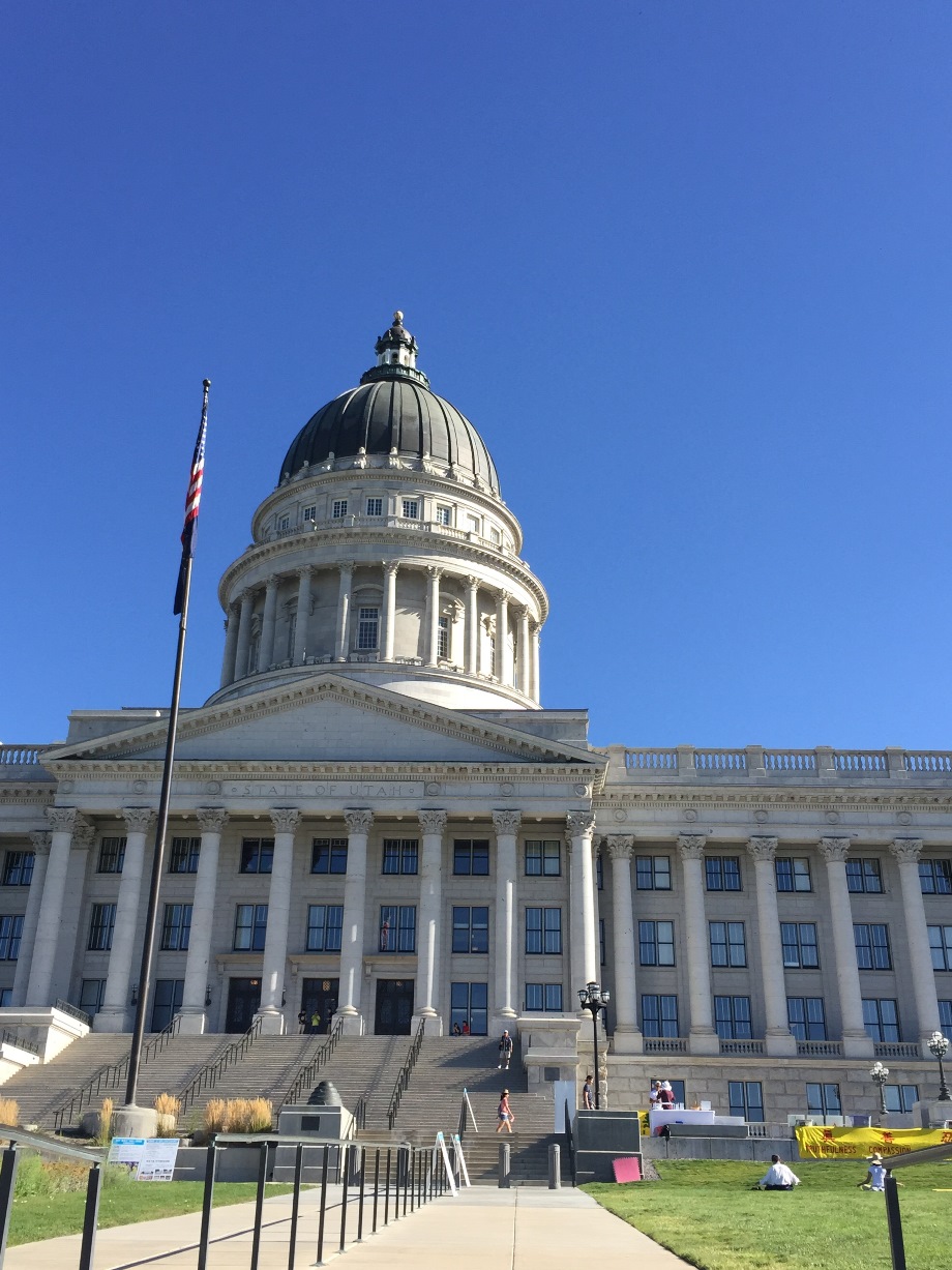 “我走了很多城市,第一次在政府大楼里面看到你们。”一个来自加州的导游在犹他州议会大厦里面惊奇地说。“这么偏僻的地方都能看到他们!”游客们大声讨论着。