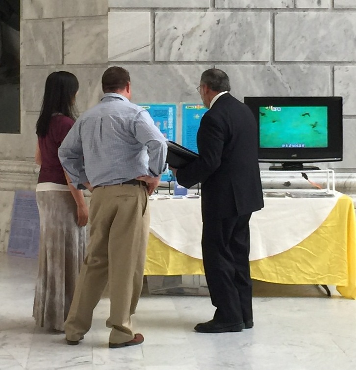 ![]() 图2-4:美国犹他州议会大厦的大厅内的法轮功真相展位 |