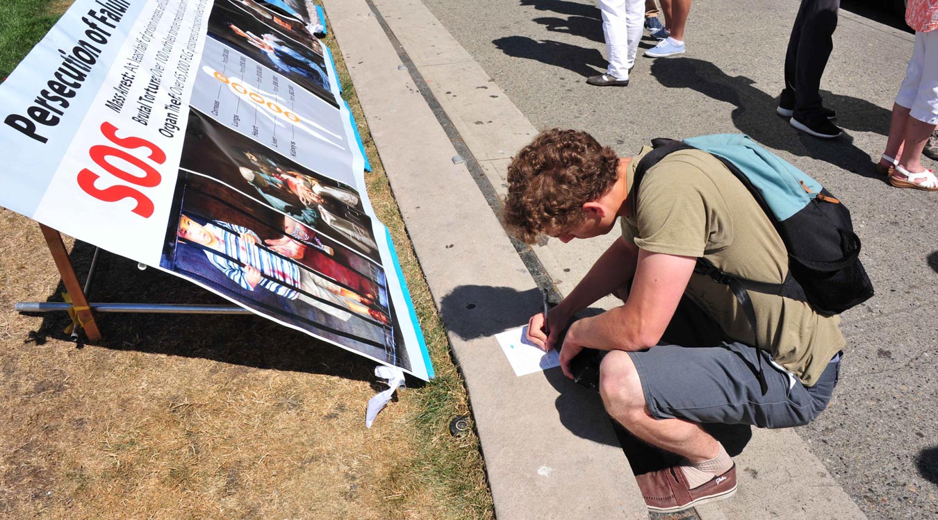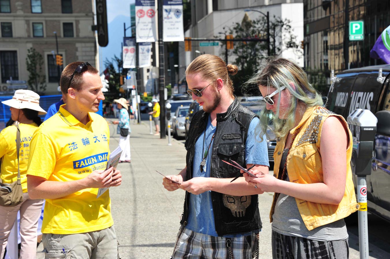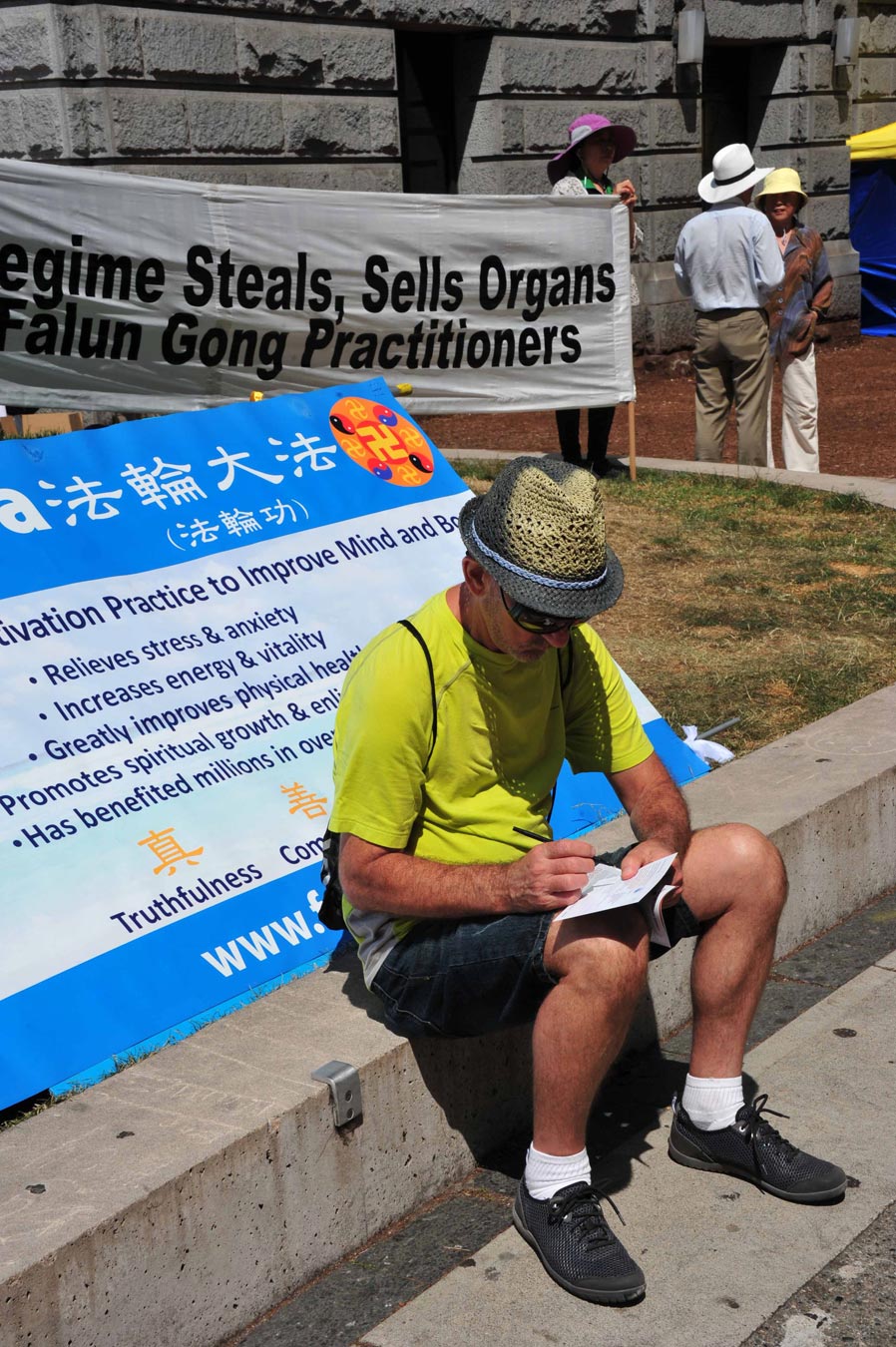 这些感人的声音,理性的建议,一个个善良人们的签名汇聚成正义的声音:停止活体摘取法轮功学员器官,停止迫害法轮功,这是在温哥华市中心法轮功学员反迫害活动现场所发生的故事。