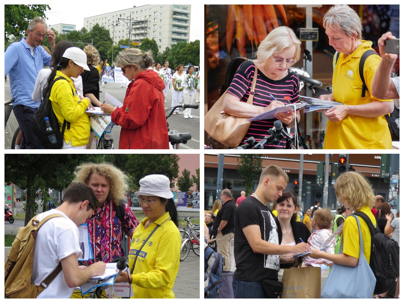 几位从慕尼黑来柏林游玩的年轻大学生,在了解到中共迫害法轮功的恶行后,纷纷签名声援法轮功学员的反迫害,其中一位小伙子 Simon Strober说自己签名声援是因为“这是一件非常重要的事情,所以我要尽一份力量。” 他祝愿法轮功学员一切顺利。