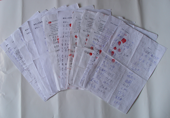 黑龙江省密山市和周边地区有的法轮功学员从2015年七月份,在向老百姓讲真相时,一边讲清真相、劝三:退.,一边征签起诉江泽民。有的人听明白真相后都做了三:退.,并在征签表上郑重的签上自己的名字,按上红手印。到现在已经有2039人签名控告江泽民。