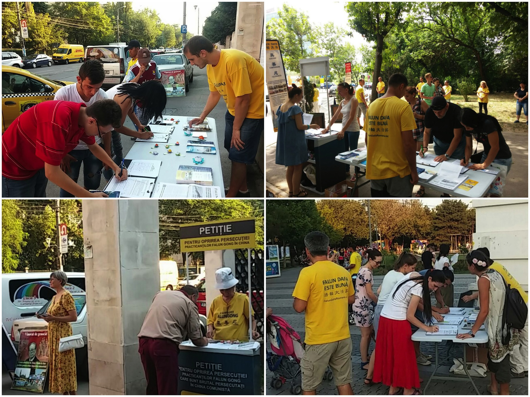 七月三十日,他们来到了首都附近的城市Targoviste的Mitropoliei公园和Chindia公园,举行了反迫害DAFOH(医生反对强制摘取器官组织)征签活动。