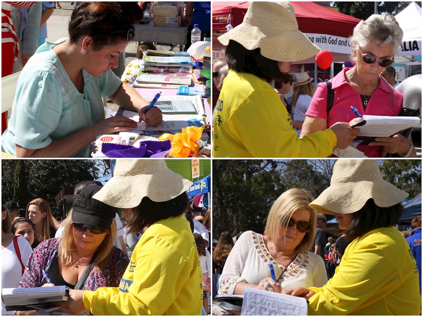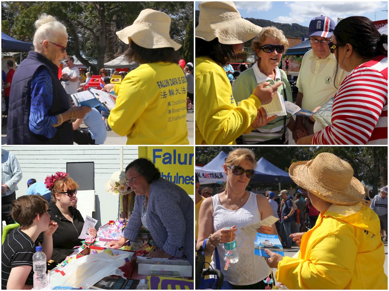 十多年来,卧龙岗地区的法轮功学员每年都参加考瑞玛尔节庆,设真相摊位,以多种形式向当地民众讲真相。当天的真相摊位上既有折莲花,又有书法表演,结合讲真相和征签。年轻母亲霍奇森(Hodgson)高兴地接过用毛笔书写的她的中文名字的那张纸后表示,她之前只知道法轮功是一种修炼形式,并不知道中共活摘法轮功学员器官的事。当她阅读了真相资料后,感到太恐怖了,她说:“对于中国政府对和平的修炼人所犯的这种罪行,我们的政府应该帮助制止它。肯定要制止它,这太可怕了!”