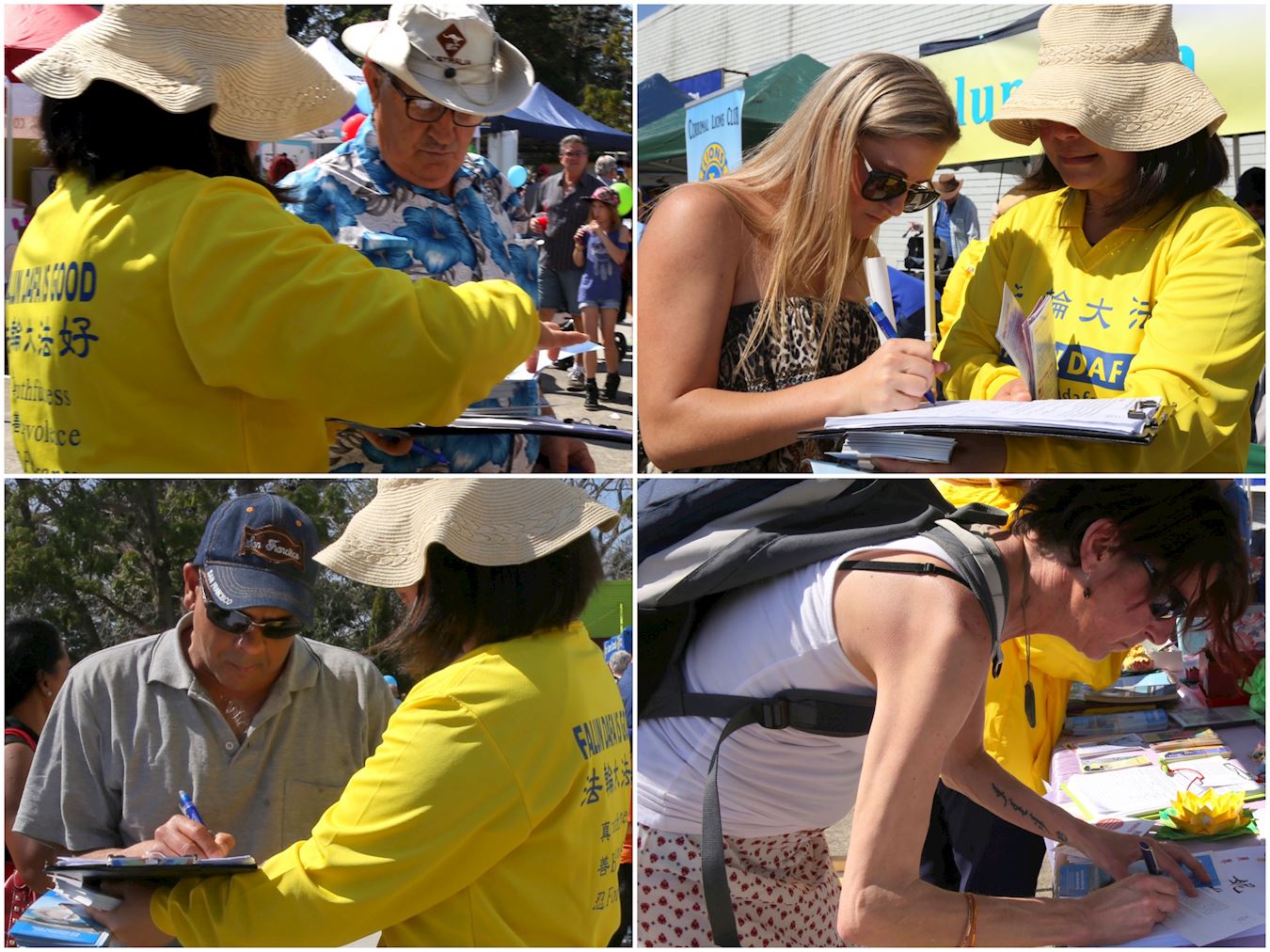 ![]() 图2-3:活动当天,很多民众签名支持法轮功 |