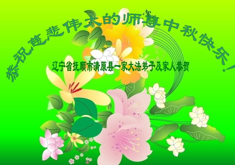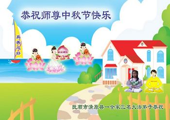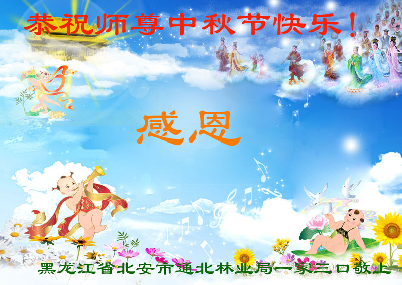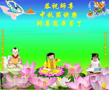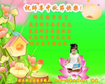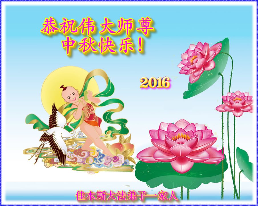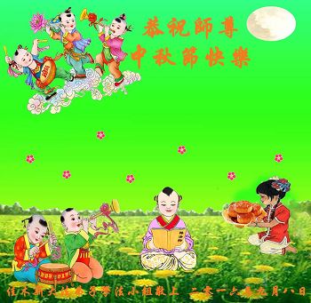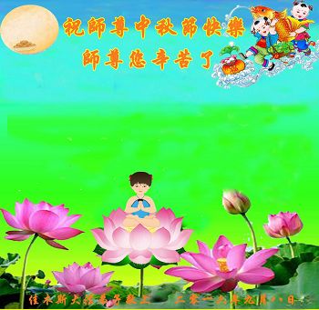 中秋佳节即将来临,我们全家三代五口人、还有孩子的姑姑、叔叔、婶婶委托我中秋佳节问候李大师,敬祝伟大的师父中秋佳节快乐!我们都是大法的受益者,“法轮大法好”我们记在心中。再一次祝李大师节日快乐!