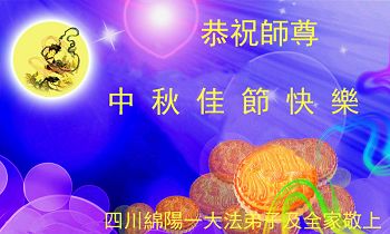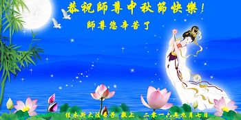 尊敬的李大师好!我们中国人传统的八月十五中秋节即将到来,在这万家团圆之际,首先恭贺大师中秋节快乐!万事如意!我们中国有善念的好人都知道法轮大法好,真善忍好!我们盼望大师早日回来,中国就有希望了,一切都会变好。我们感谢大师对我们的护佑,我们都得福报了。在此谢谢大师!大法弟子的家人敬上