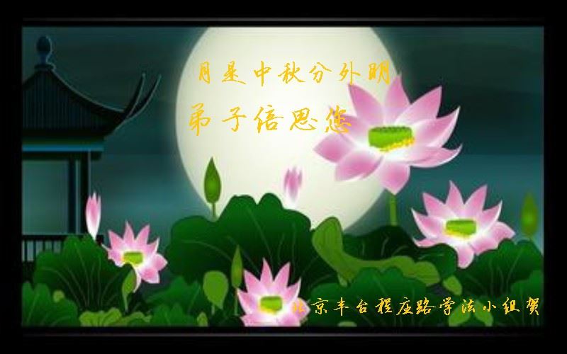 法轮功神佑大中华,真善忍诚信你我他。祝师父中秋快乐!谢师父慈悲救度!诚心叩拜!
