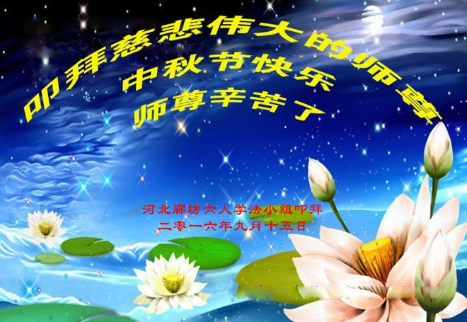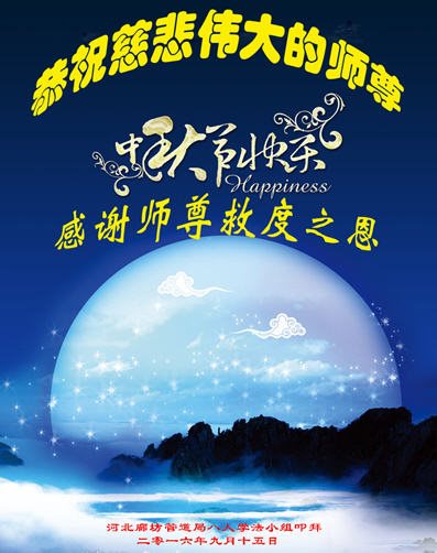 中国大陆卫生系统全体大法弟子恭祝慈悲伟大的师尊中秋快乐!