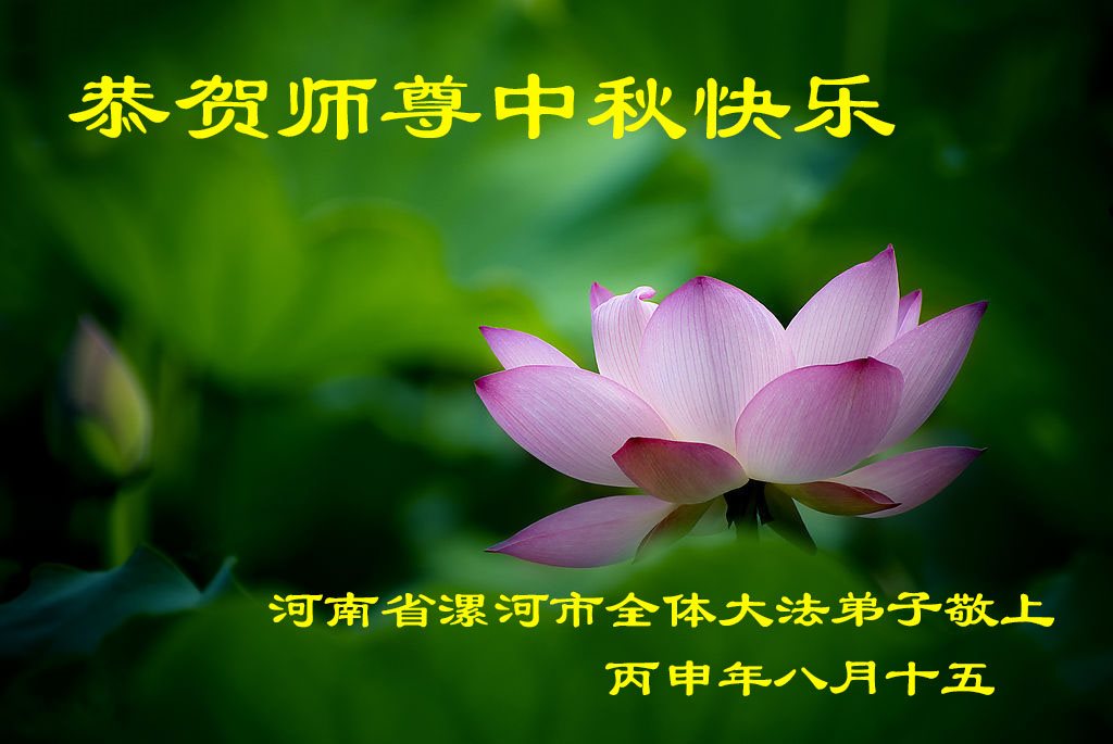 慈悲伟大的师父:您好!邯郸纺织系统大法弟子跪拜师尊向师父敬祝中秋节快乐!能成为大法弟子,能肩负助师的重担,能成为这场历史大戏的主角,是我们生命永远的荣耀。作为大法弟子,我们面对着被邪*党-毒害的众生,如何破除众生思想禁锢,救度更多的人,唤醒他们的本性,如何去掉怕心,都对我们自身的修炼和救度众生提出了更高的要求。回首过往,还有太多的不足和遗憾,尚有太多的众生没有被救度,深感痛心疾首。二十一年修炼路,岁月更替,时空变幻,历经种种阻挠与考验,始终不改的是随师正法的心,感谢师父一路看护、加持与点化!感谢师父为宇宙所有众生的操劳与付出!我们邯郸纺织系统大法弟子一定会坚定信心,修好自己,抓紧救人,放下名、利、情,请师父放心。