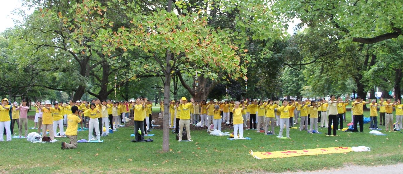 来自中国吉林省的王先生和妻子,刚到多伦多几天,他们路过皇后公园被炼功场面所吸引,停下来拍照。王先生感慨地说:“海外就是自由,这样的场面到处可见。其实我们国内的人很多都知道,法轮功也就是要祛病健身,要做好人,为什么要受到迫害?象当时的四二五事件,中共说是围攻中南海,我非常清楚他们也就是要政府给一个正常炼功的权利,当时朱镕基都答应了,就是江泽民要搞迫害。”