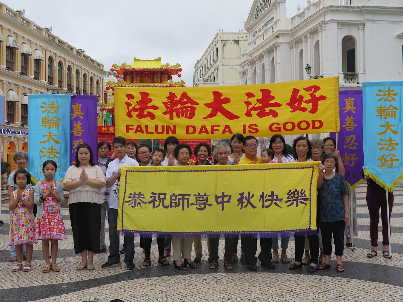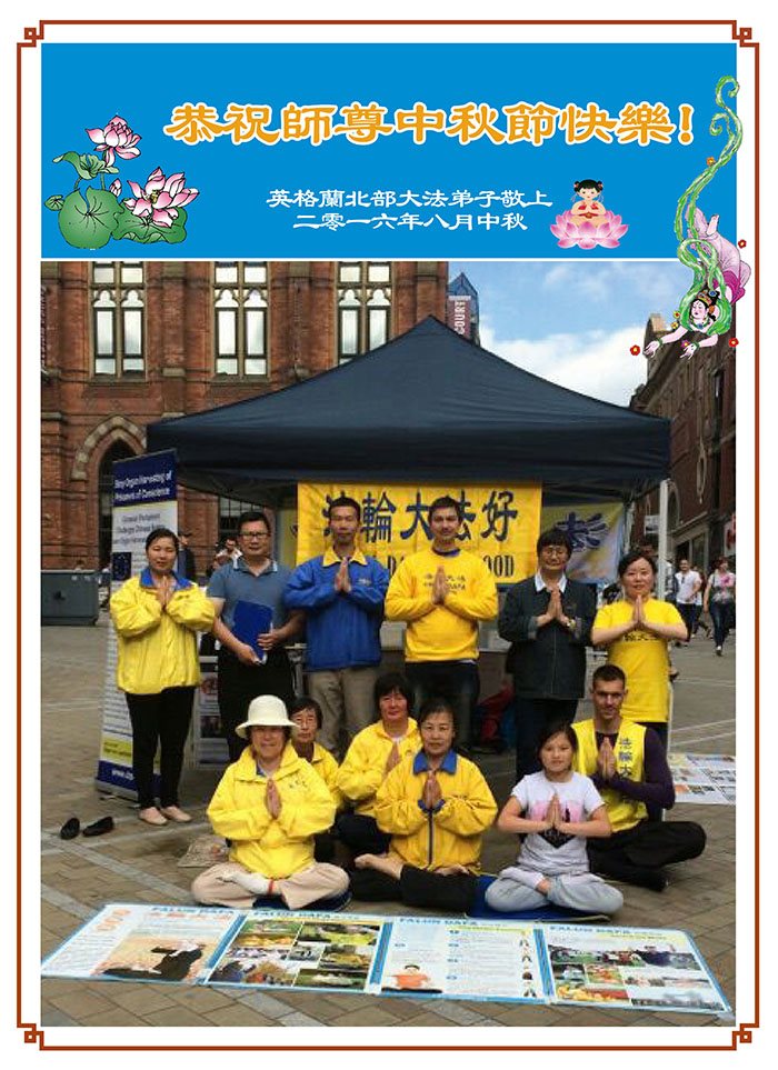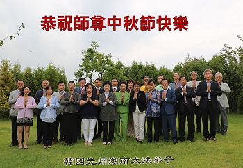 广东省梅州市一家四口大法弟子及全家二十多人恭祝李洪志师父中秋快乐!