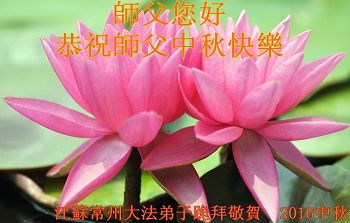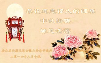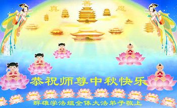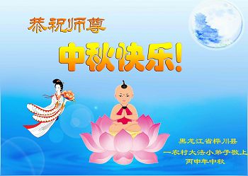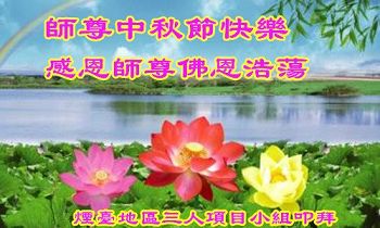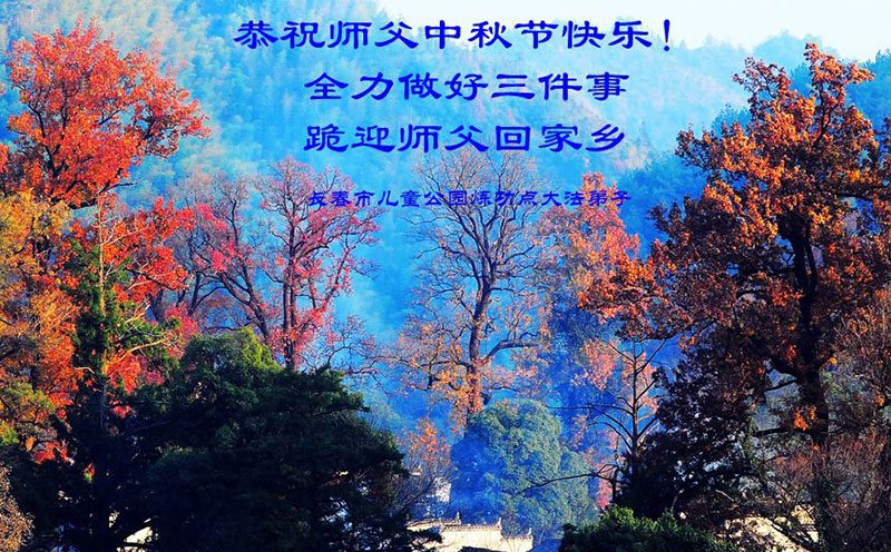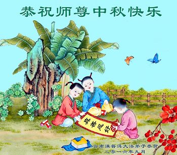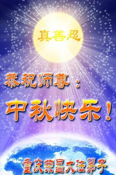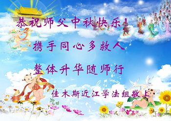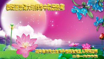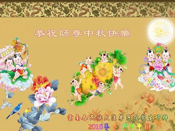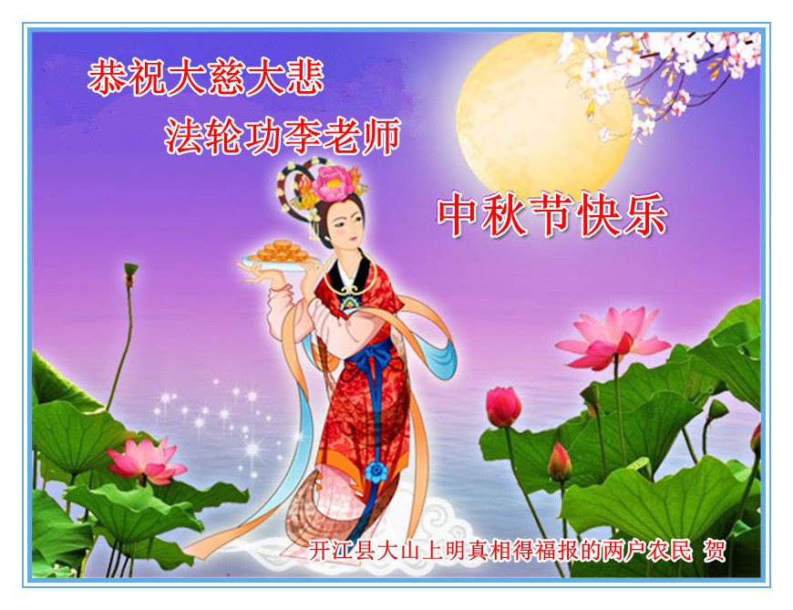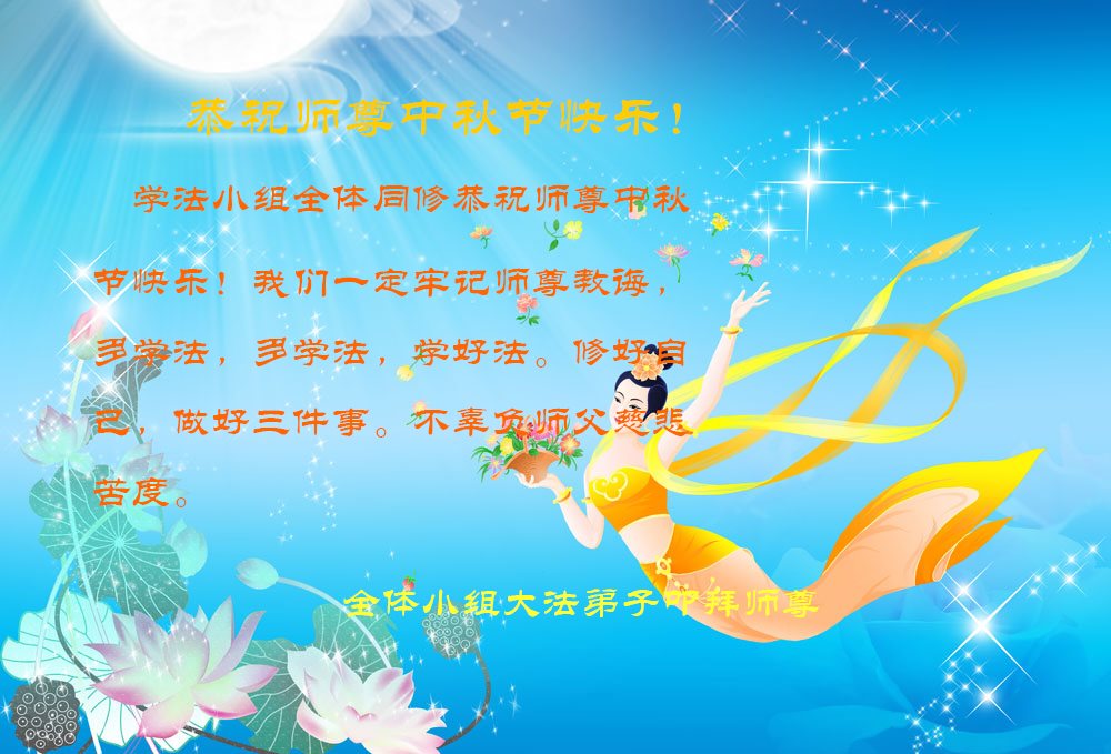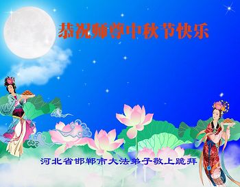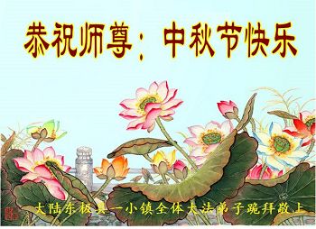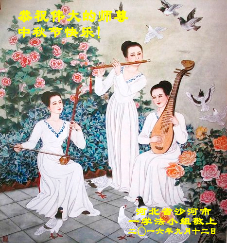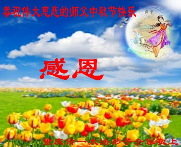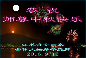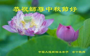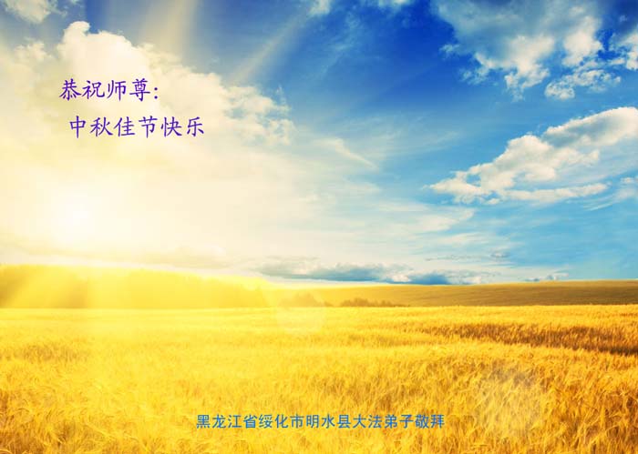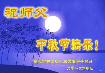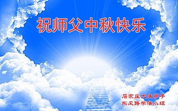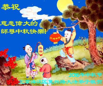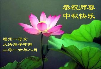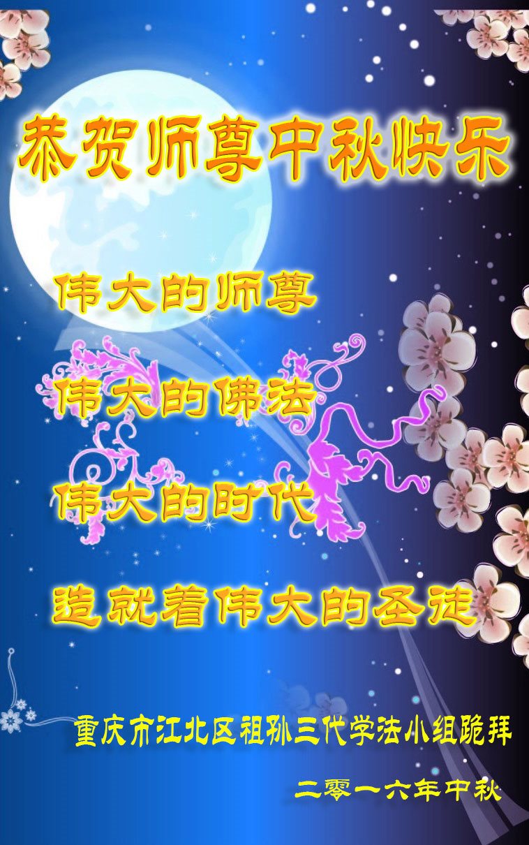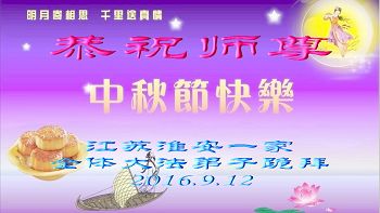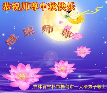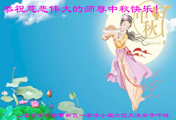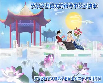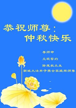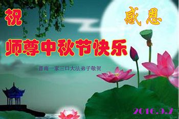 中秋节快到了,我和我得法三年,过去一字不识现在能看大法书学法,八十四的老母亲及明真相的妹妹恭祝师尊中秋节快乐!叩谢师恩,感恩师尊您的慈悲苦度。我们深知:没有恩师的救度,没有大法的传出,就没有我们的今天。