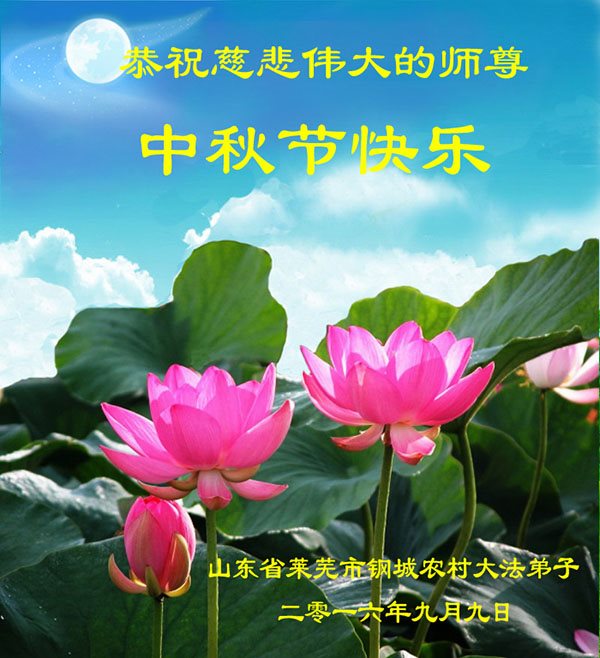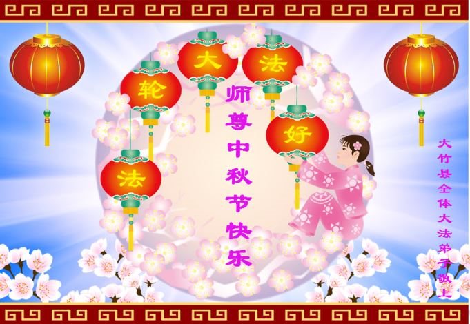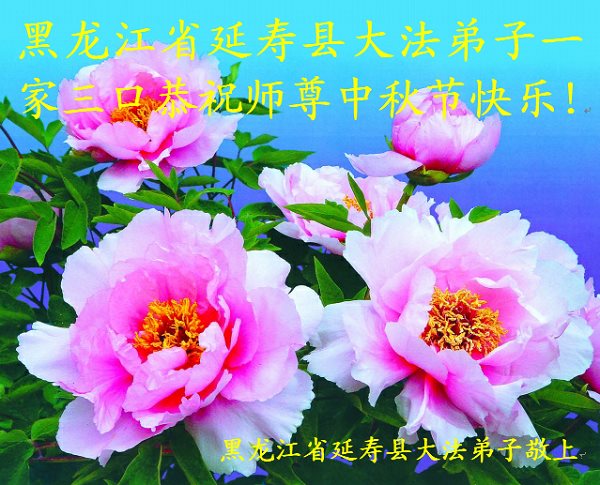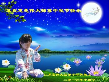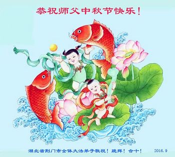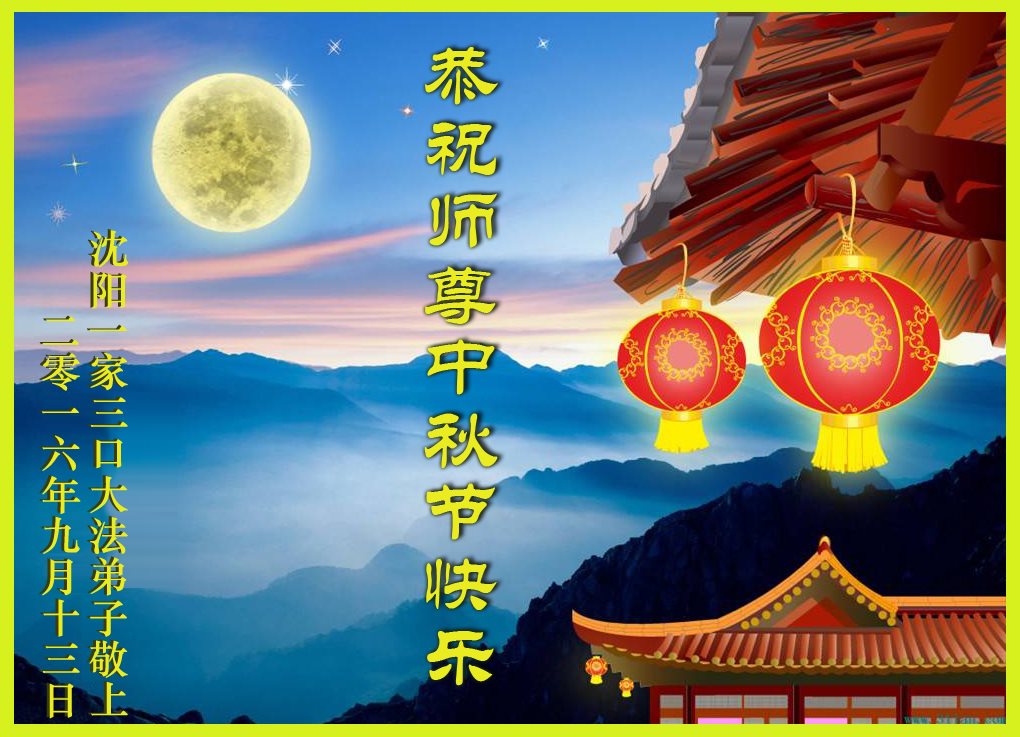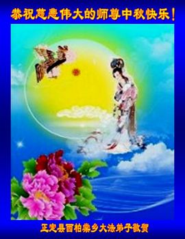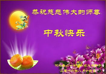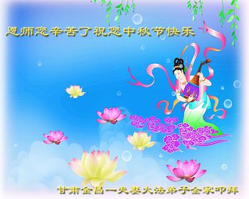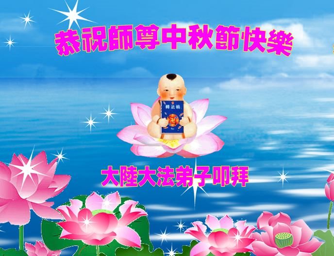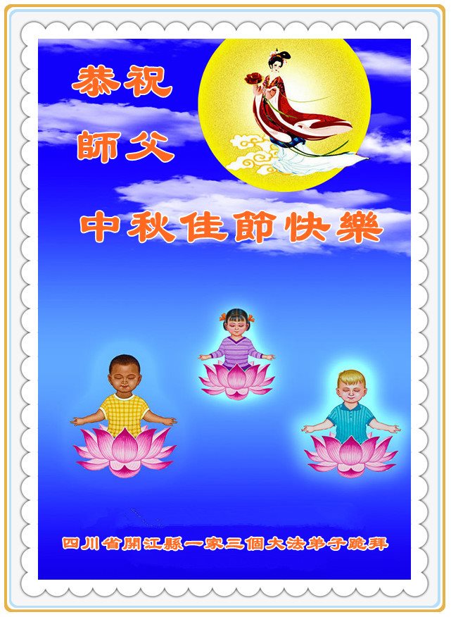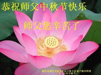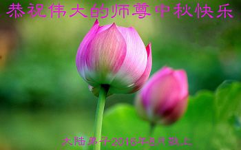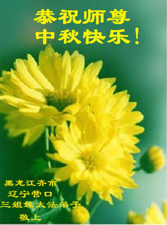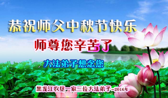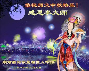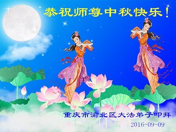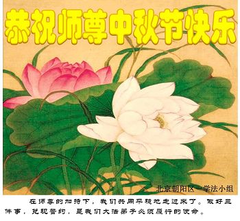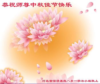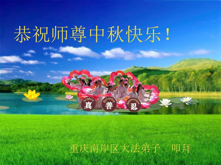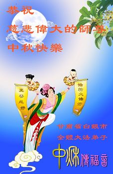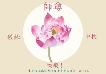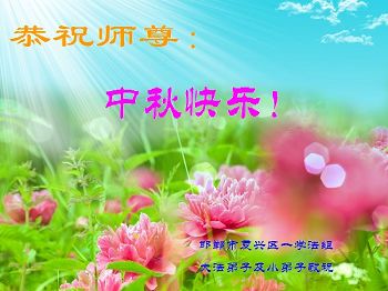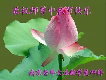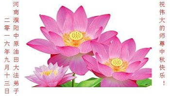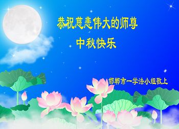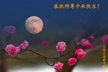 中秋节快到了,我和我得法三年,过去一字不识现在能看大法书学法,八十四的老母亲及明真相的妹妹恭祝师尊中秋节快乐!叩谢师恩,感恩师尊您的慈悲苦度。我们深知:没有恩师的救度,没有大法的传出,就没有我们的今天。