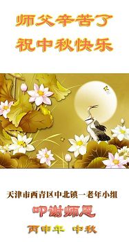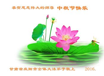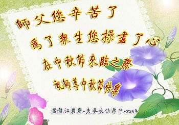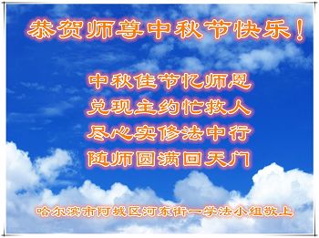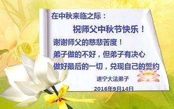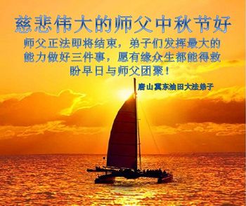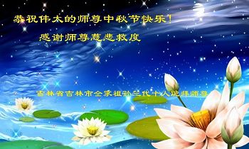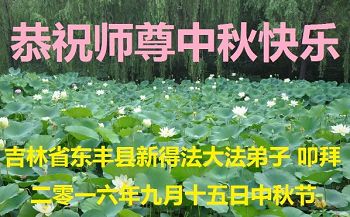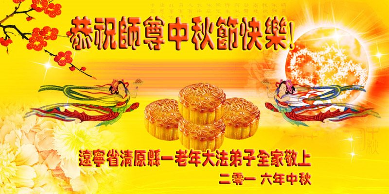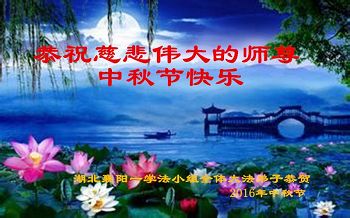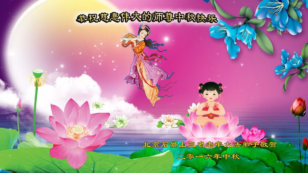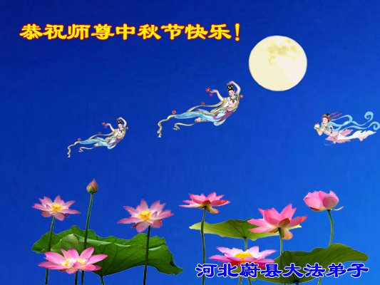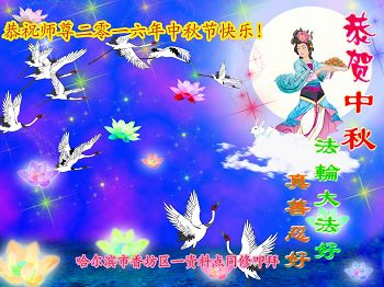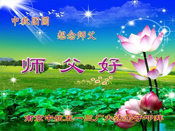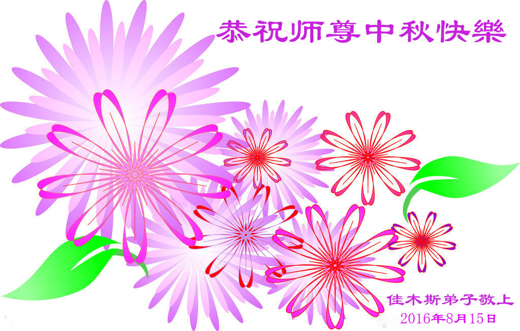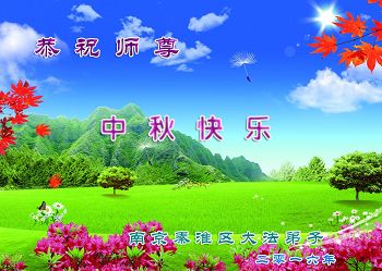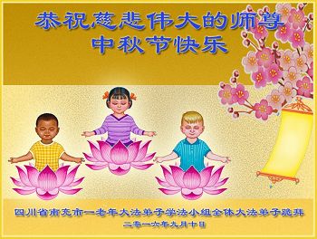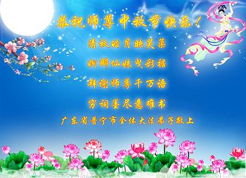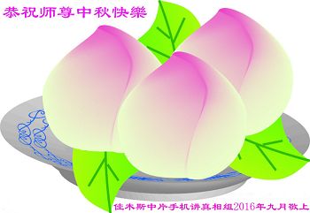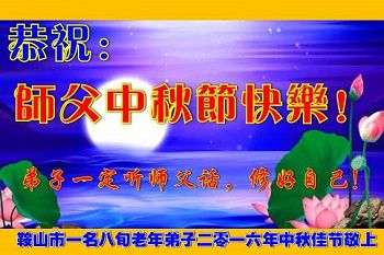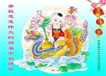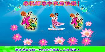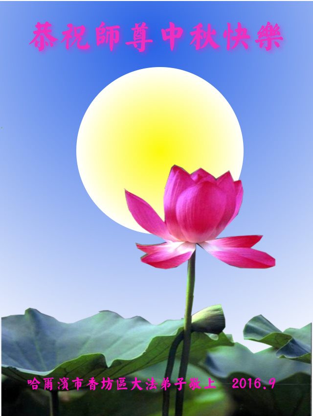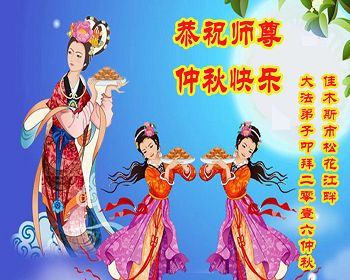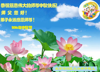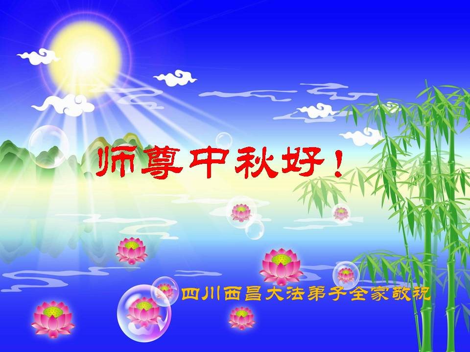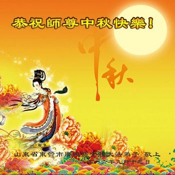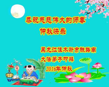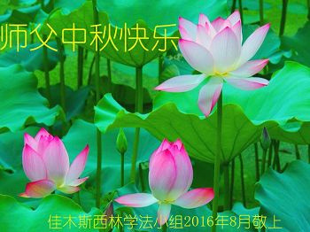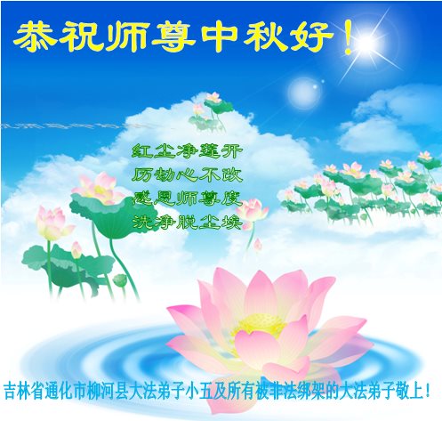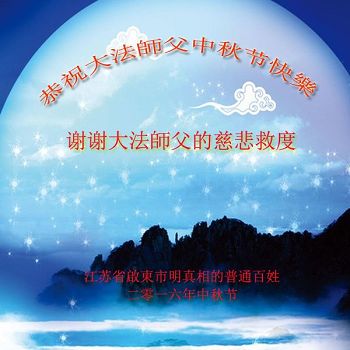 中秋节快到了,我和我得法三年,过去一字不识现在能看大法书学法,八十四的老母亲及明真相的妹妹恭祝师尊中秋节快乐!叩谢师恩,感恩师尊您的慈悲苦度。我们深知:没有恩师的救度,没有大法的传出,就没有我们的今天。