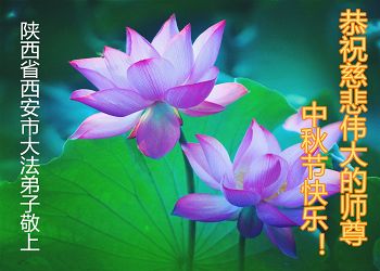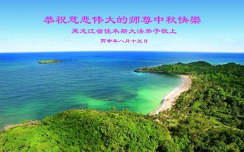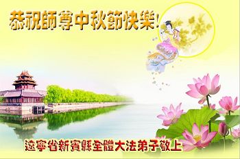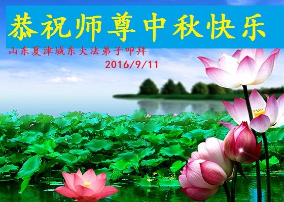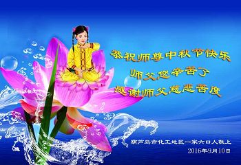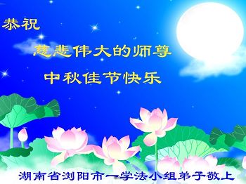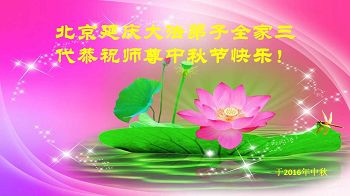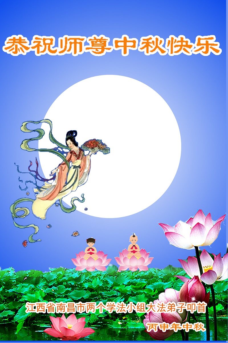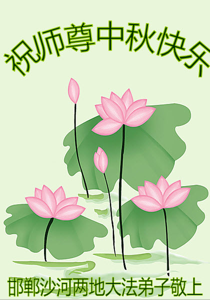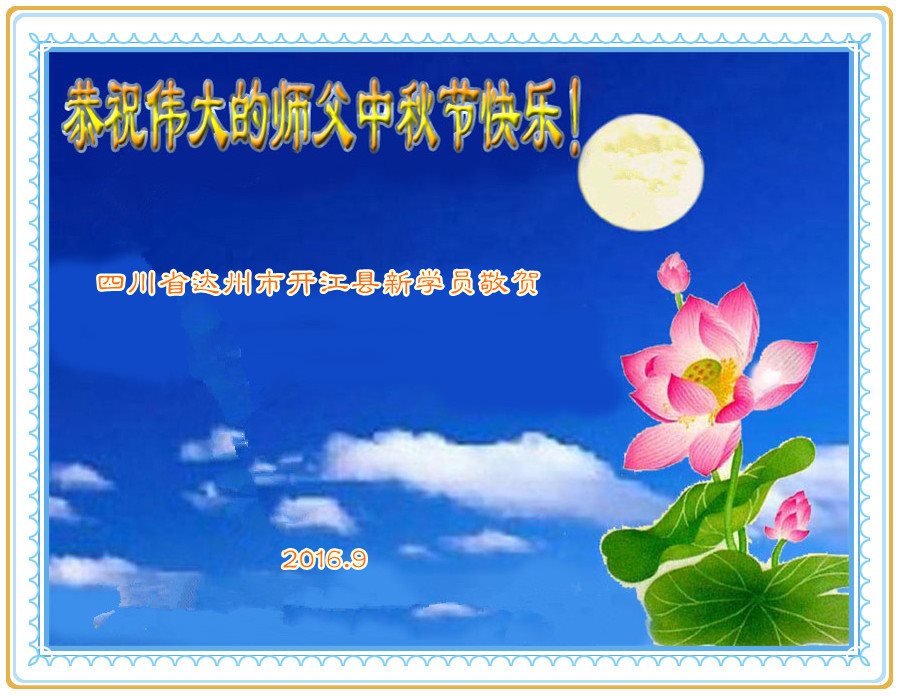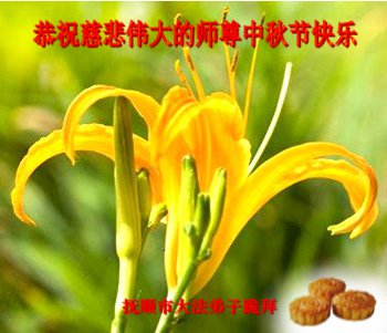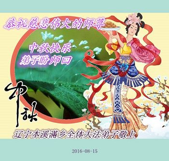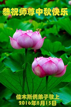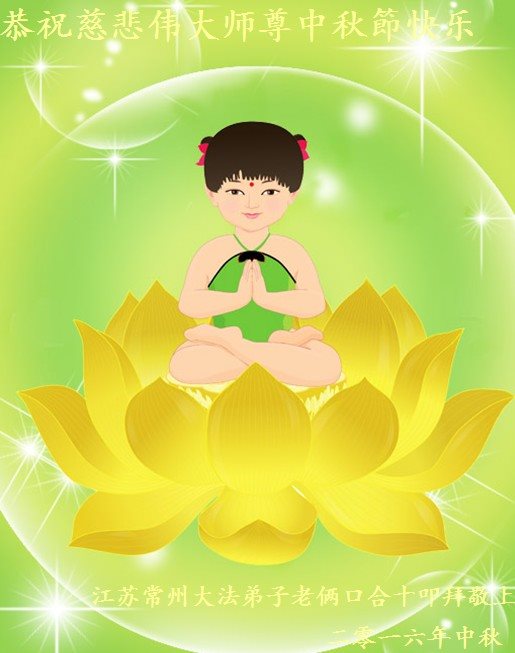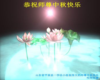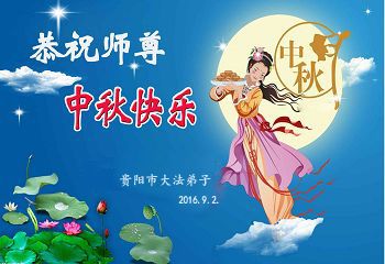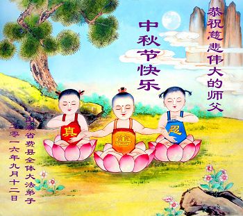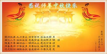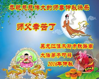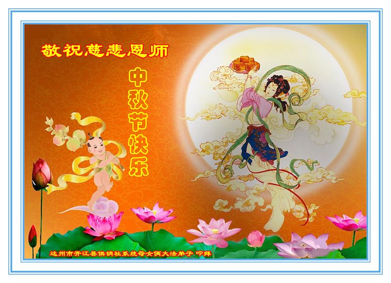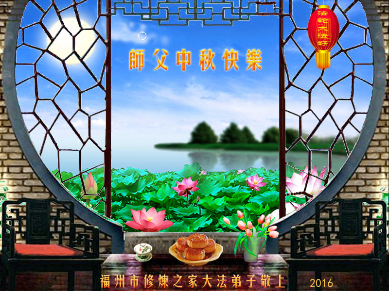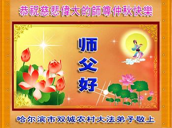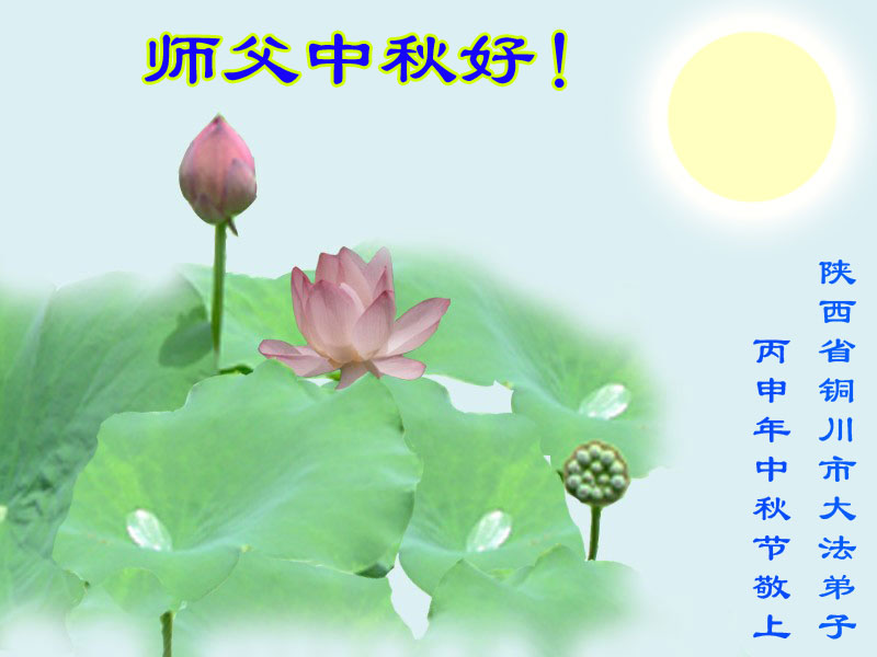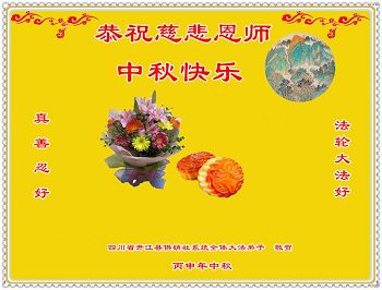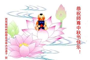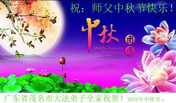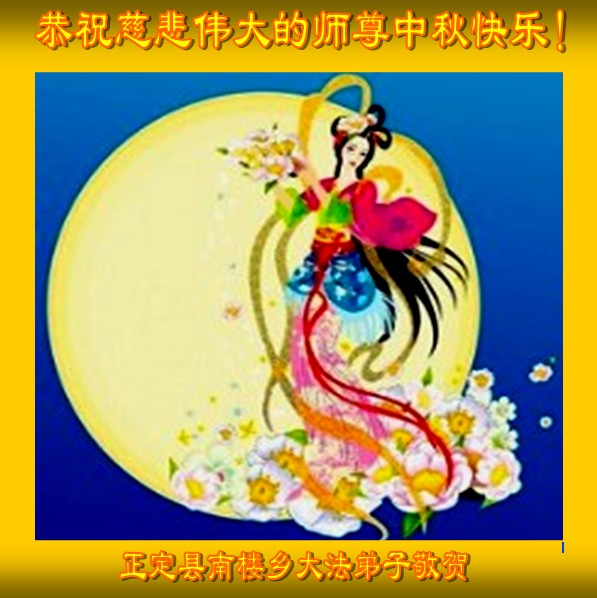 中秋节快到了,我和我得法三年,过去一字不识现在能看大法书学法,八十四的老母亲及明真相的妹妹恭祝师尊中秋节快乐!叩谢师恩,感恩师尊您的慈悲苦度。我们深知:没有恩师的救度,没有大法的传出,就没有我们的今天。