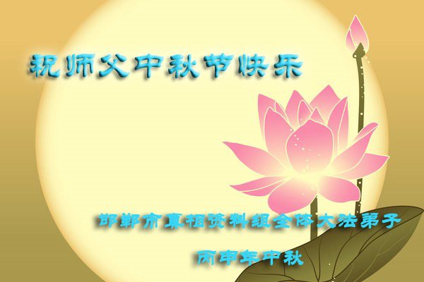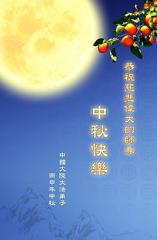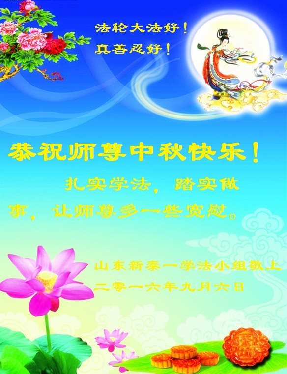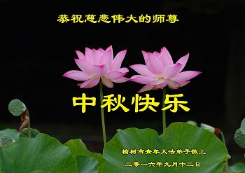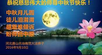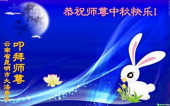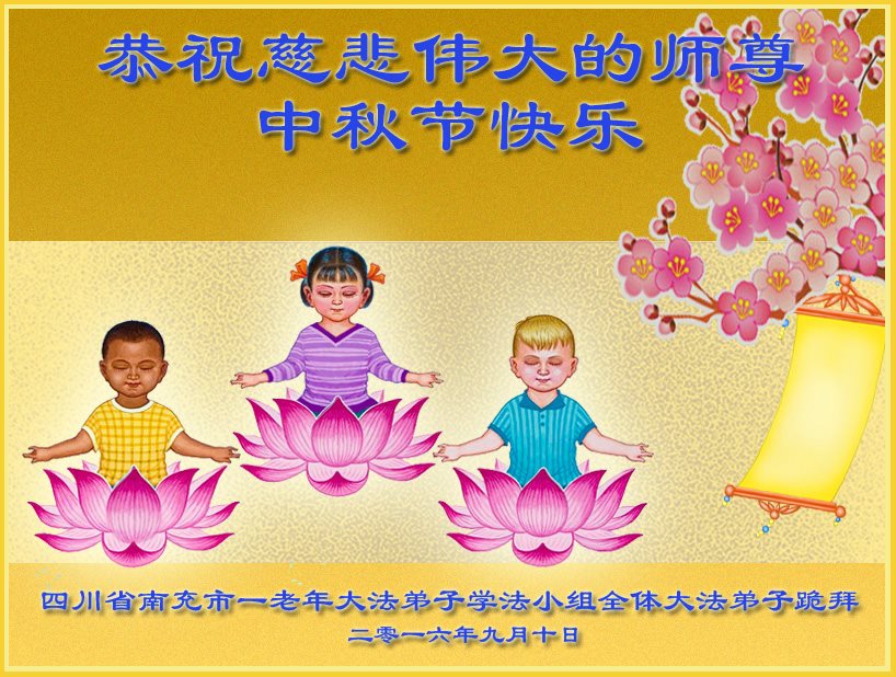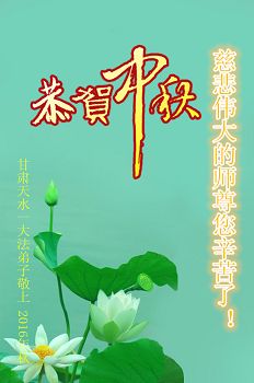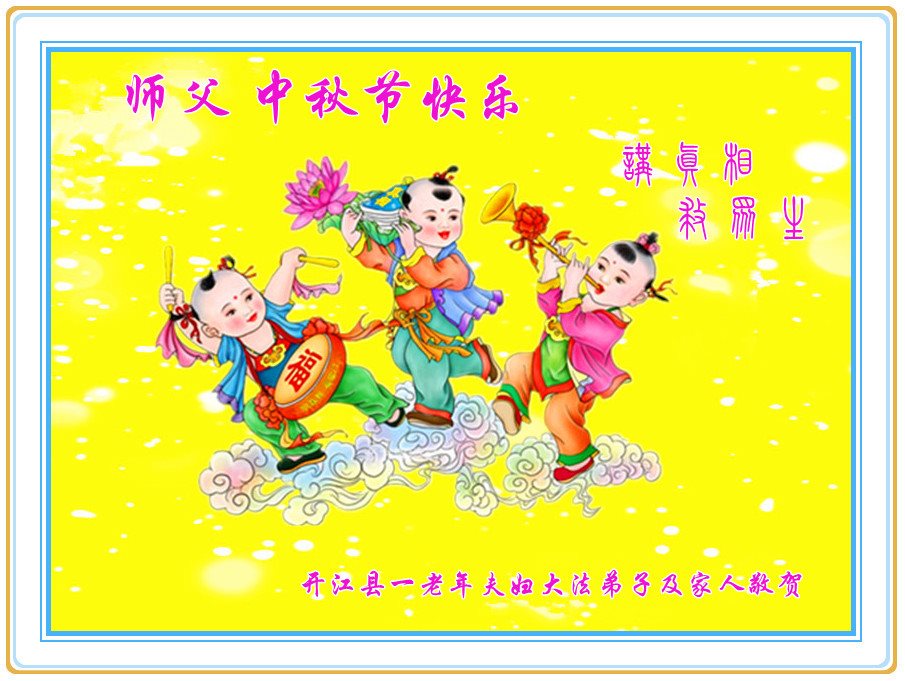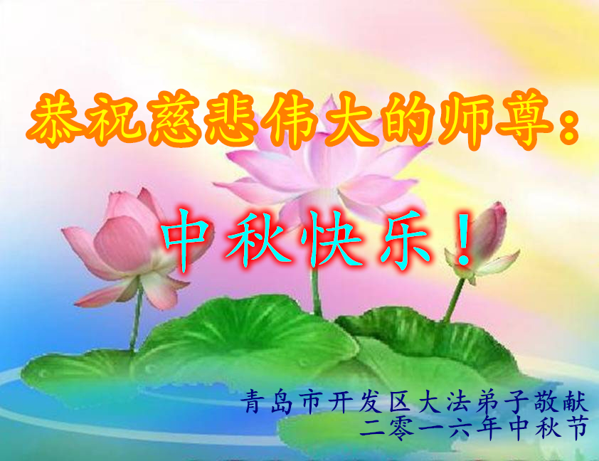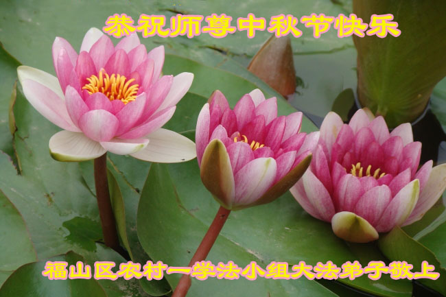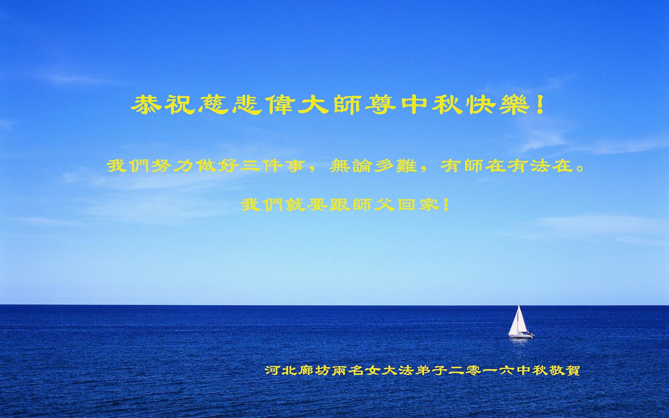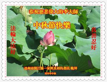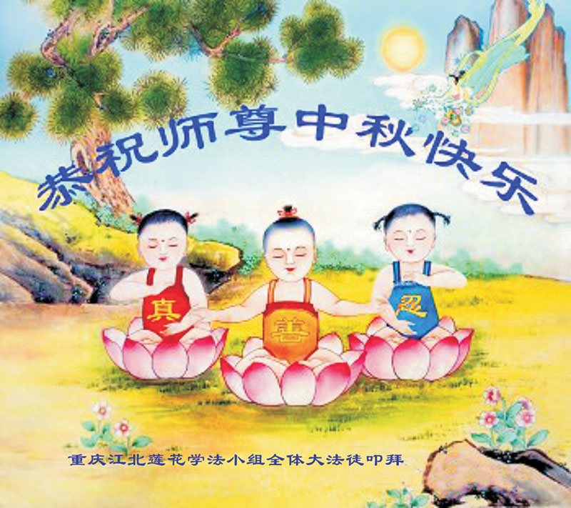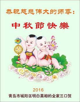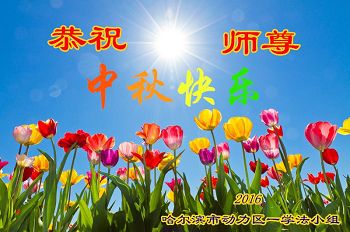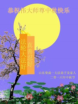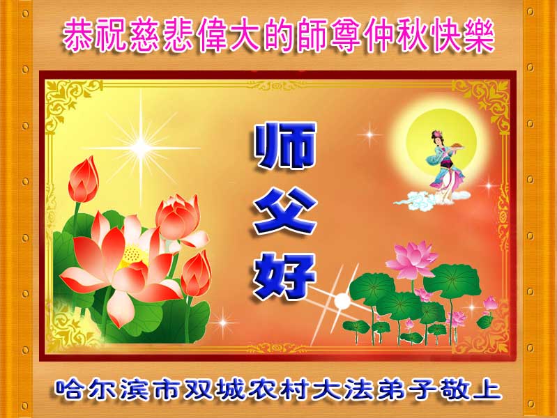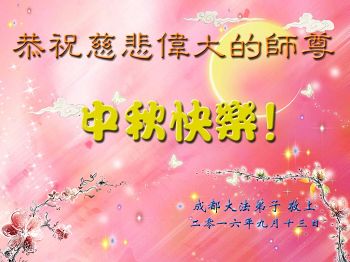 中秋节快到了,我和我得法三年,过去一字不识现在能看大法书学法,八十四的老母亲及明真相的妹妹恭祝师尊中秋节快乐!叩谢师恩,感恩师尊您的慈悲苦度。我们深知:没有恩师的救度,没有大法的传出,就没有我们的今天。