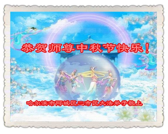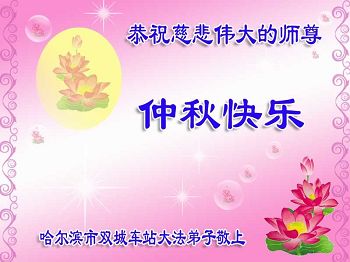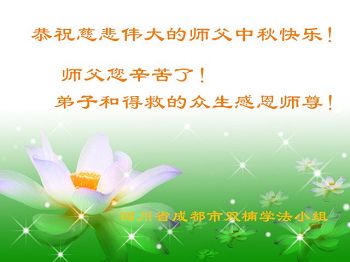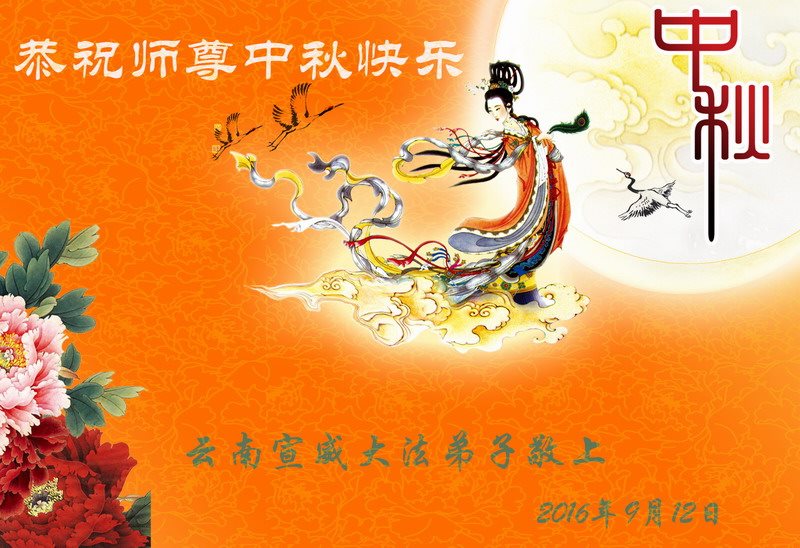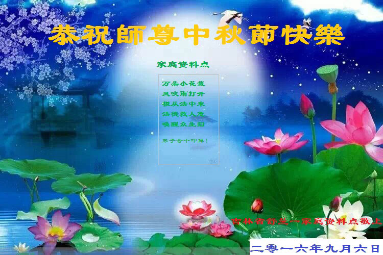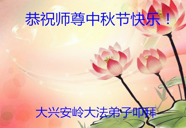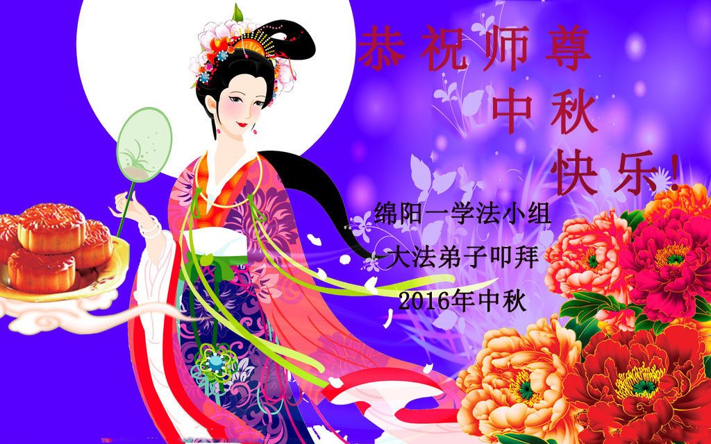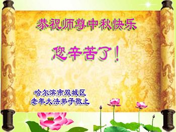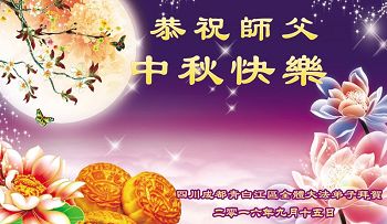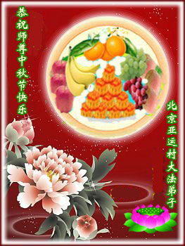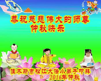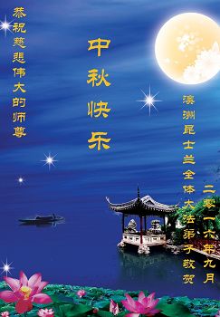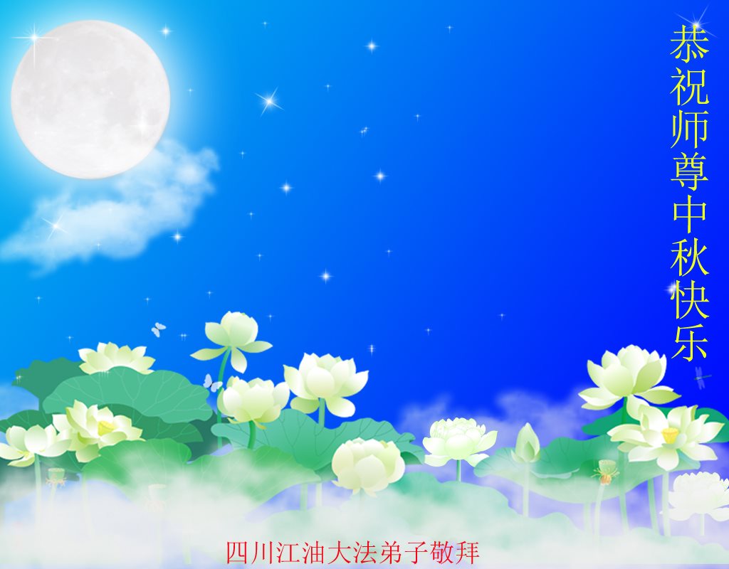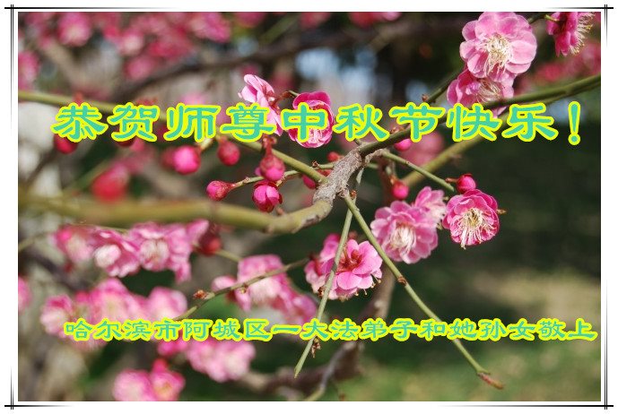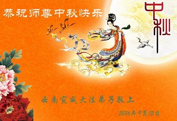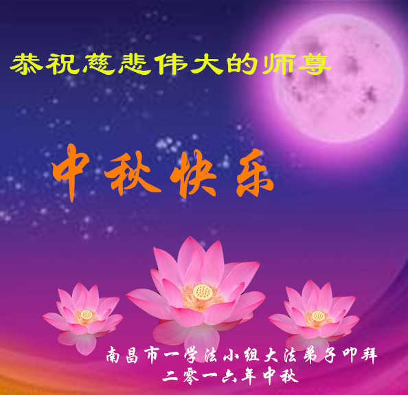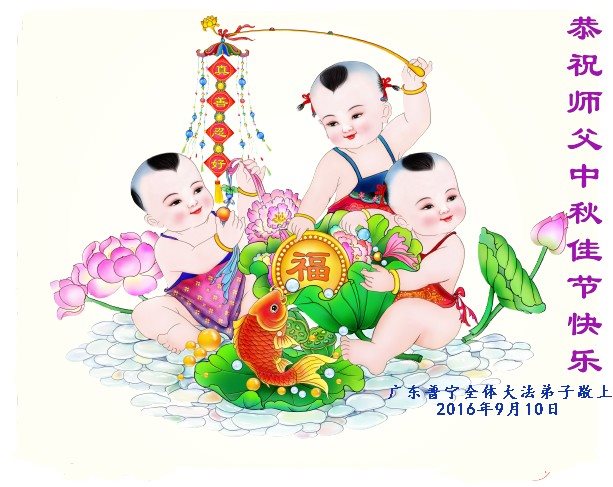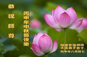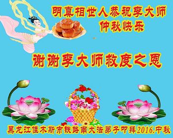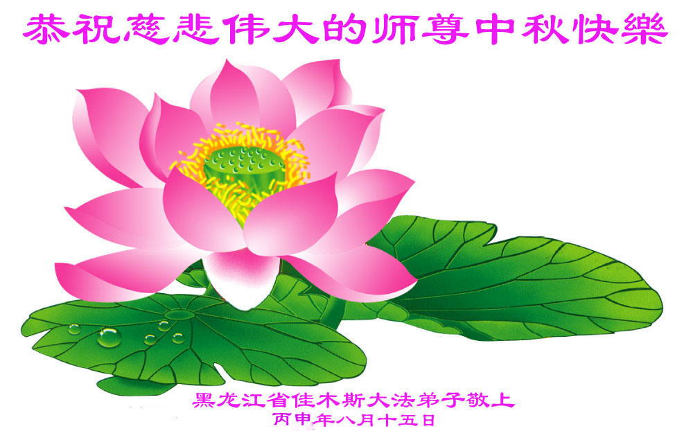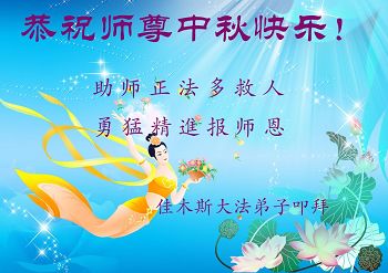 中秋节快到了,我和我得法三年,过去一字不识现在能看大法书学法,八十四的老母亲及明真相的妹妹恭祝师尊中秋节快乐!叩谢师恩,感恩师尊您的慈悲苦度。我们深知:没有恩师的救度,没有大法的传出,就没有我们的今天。