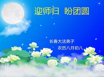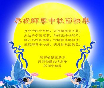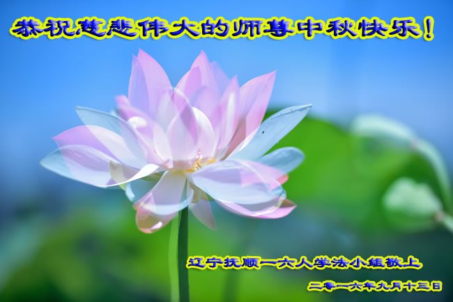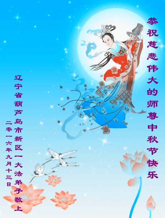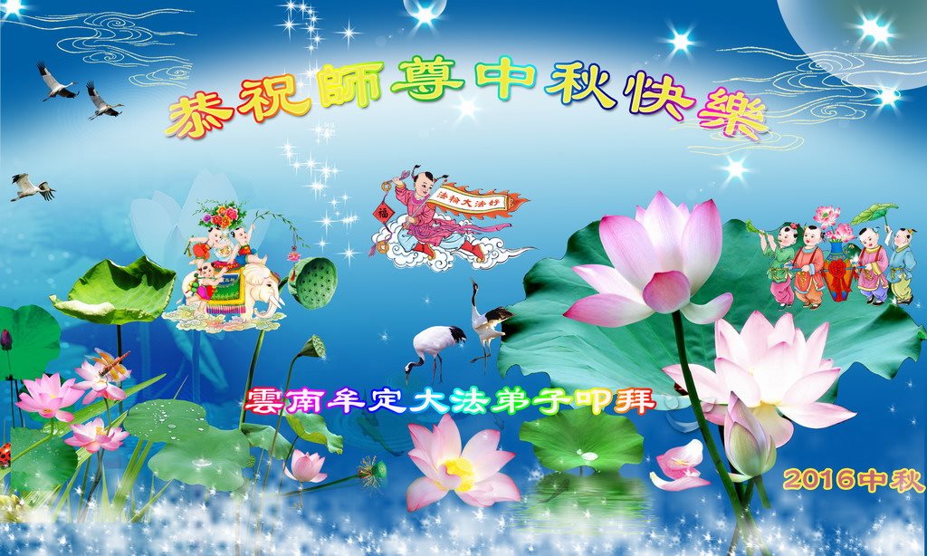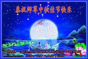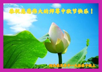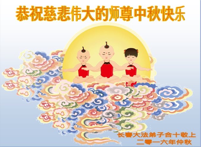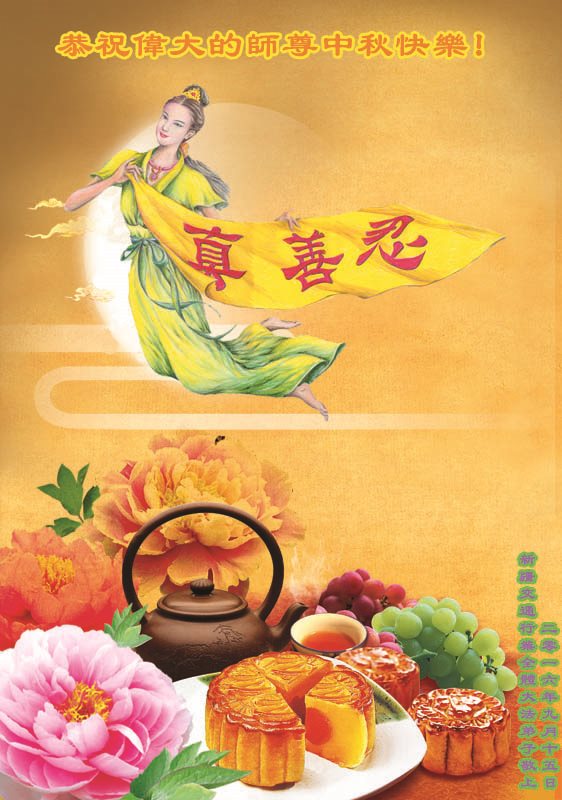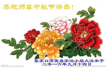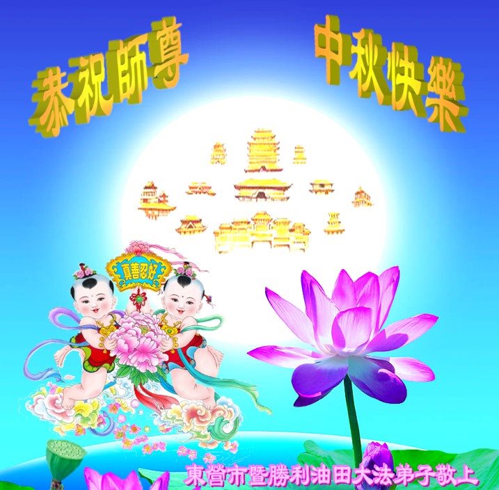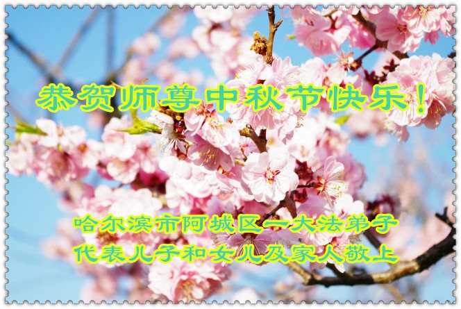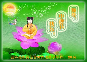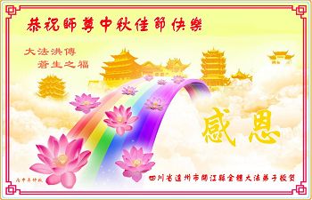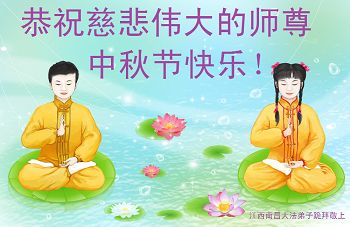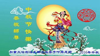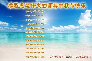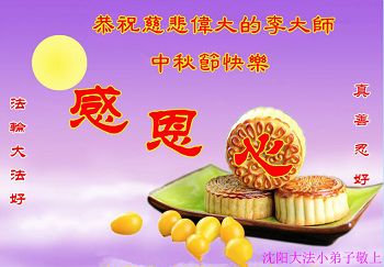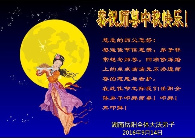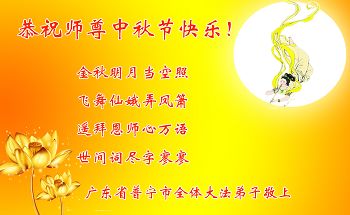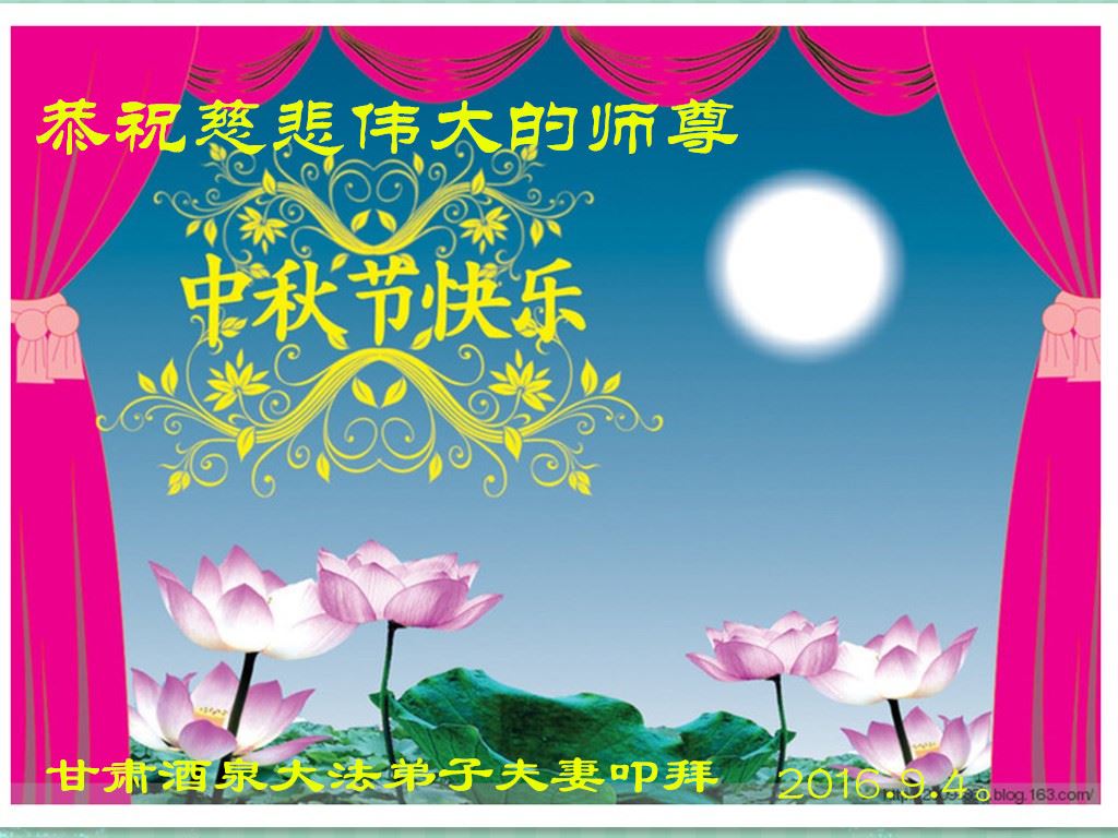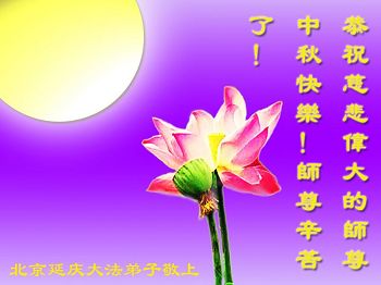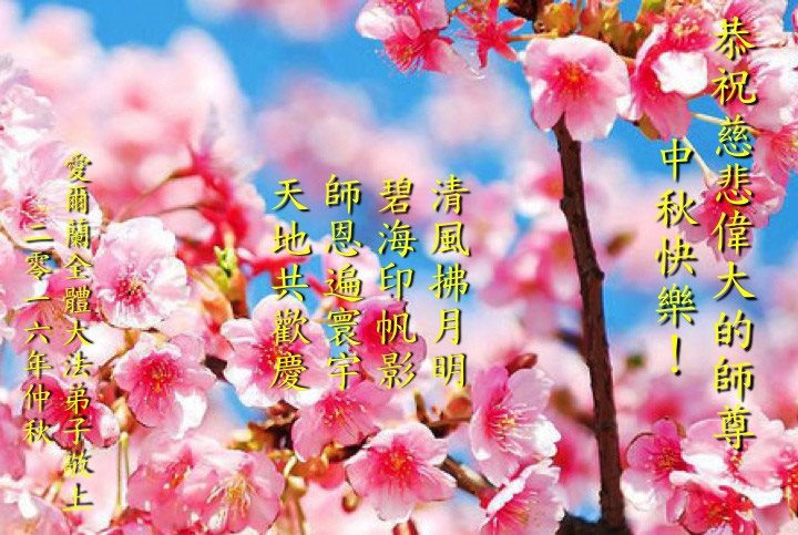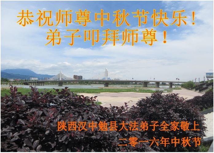 中秋节快到了,我和我得法三年,过去一字不识现在能看大法书学法,八十四的老母亲及明真相的妹妹恭祝师尊中秋节快乐!叩谢师恩,感恩师尊您的慈悲苦度。我们深知:没有恩师的救度,没有大法的传出,就没有我们的今天。