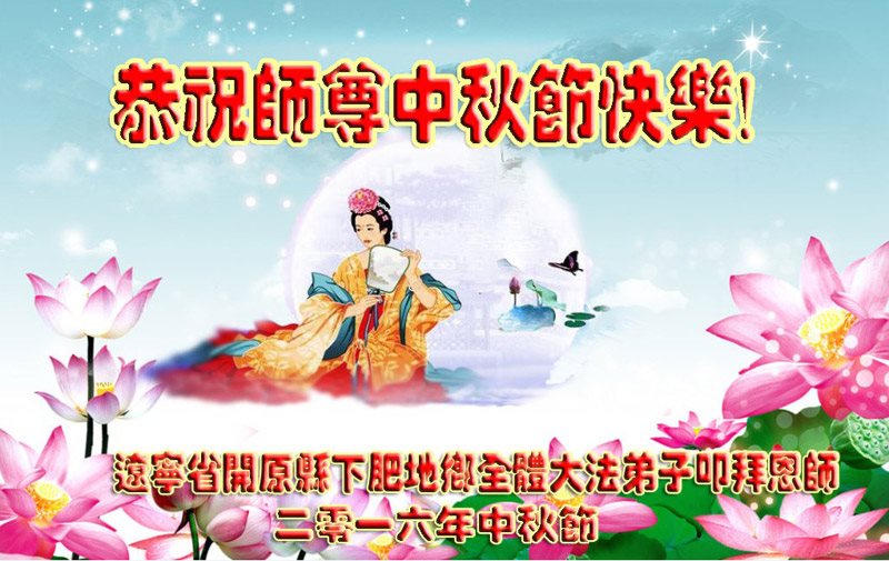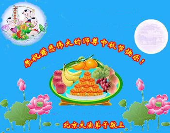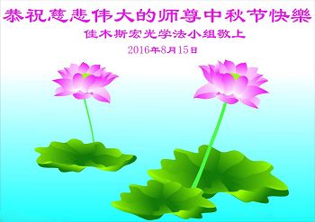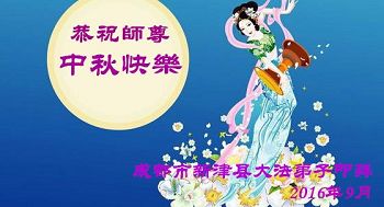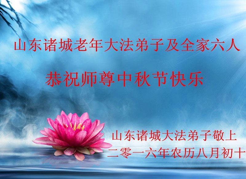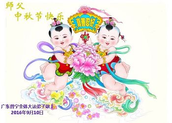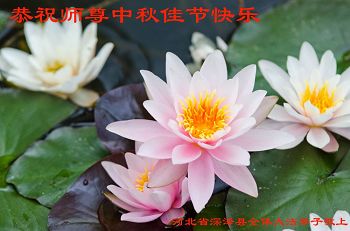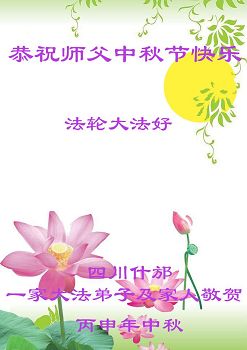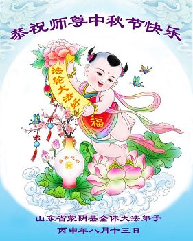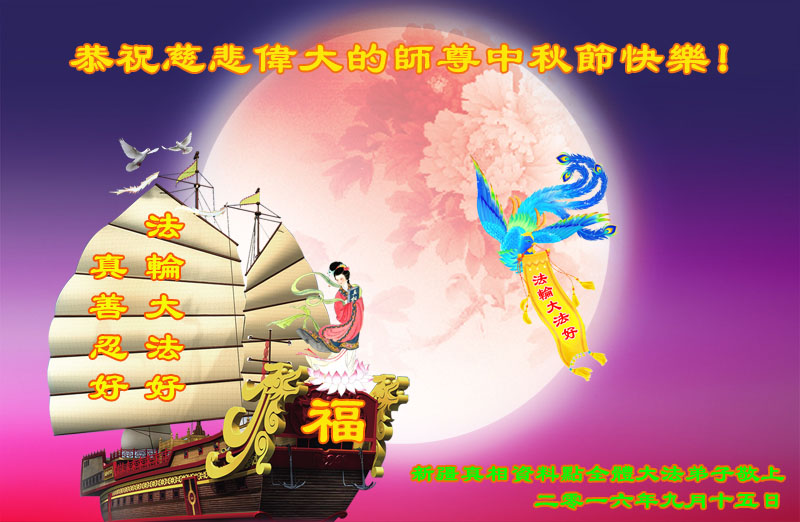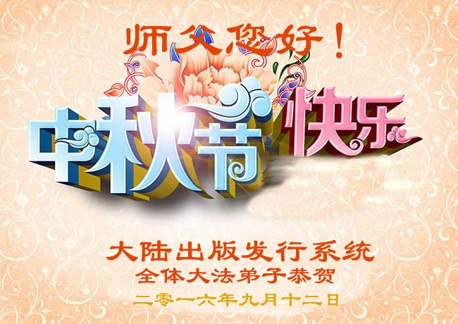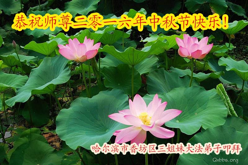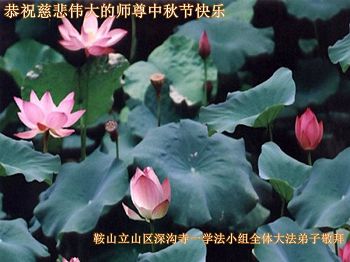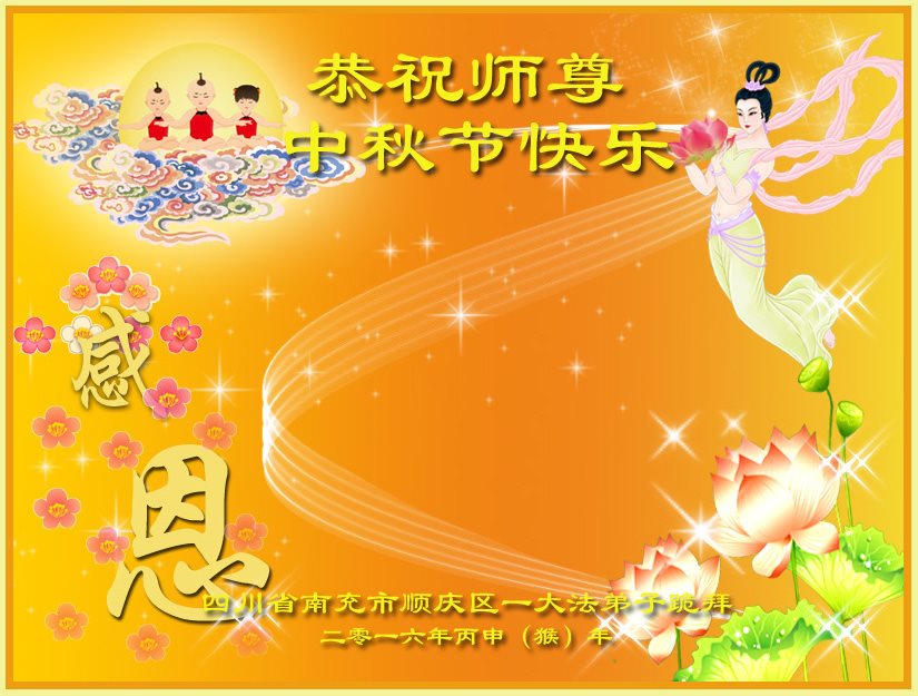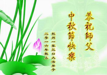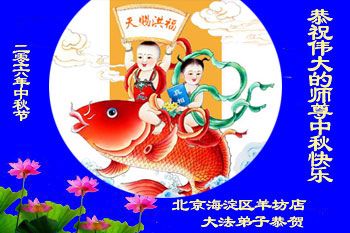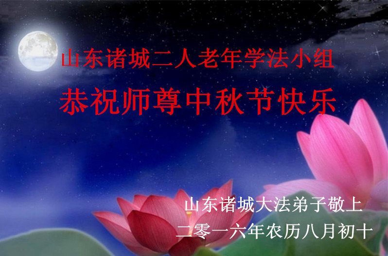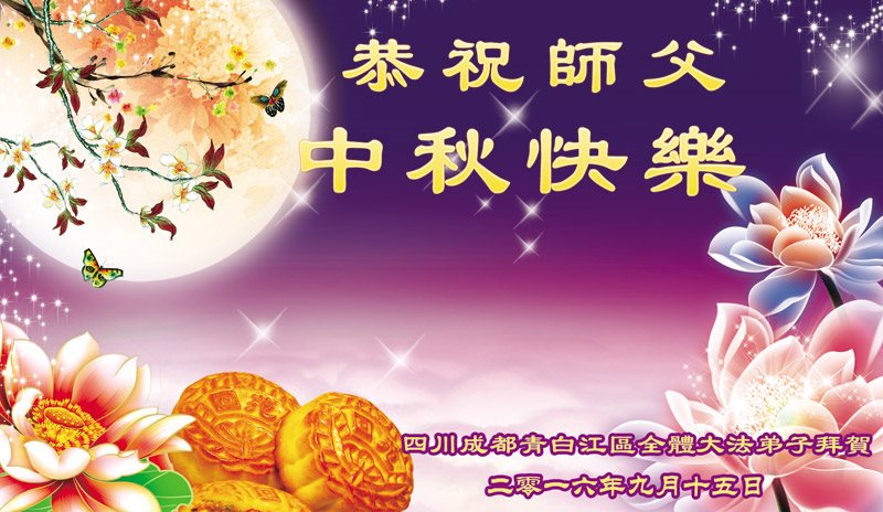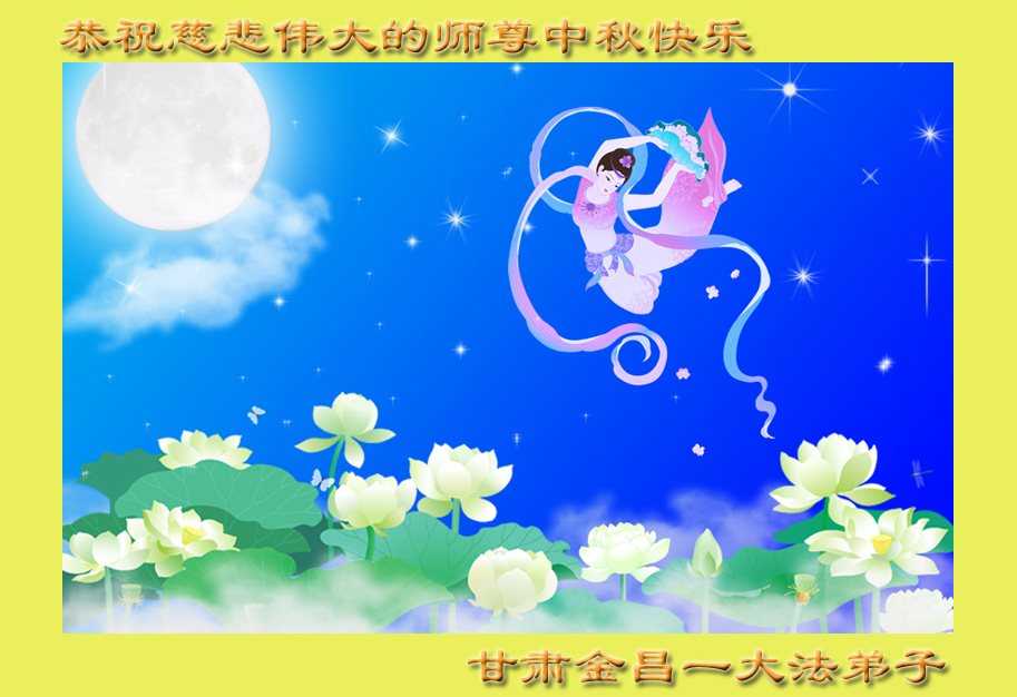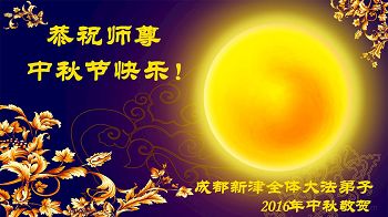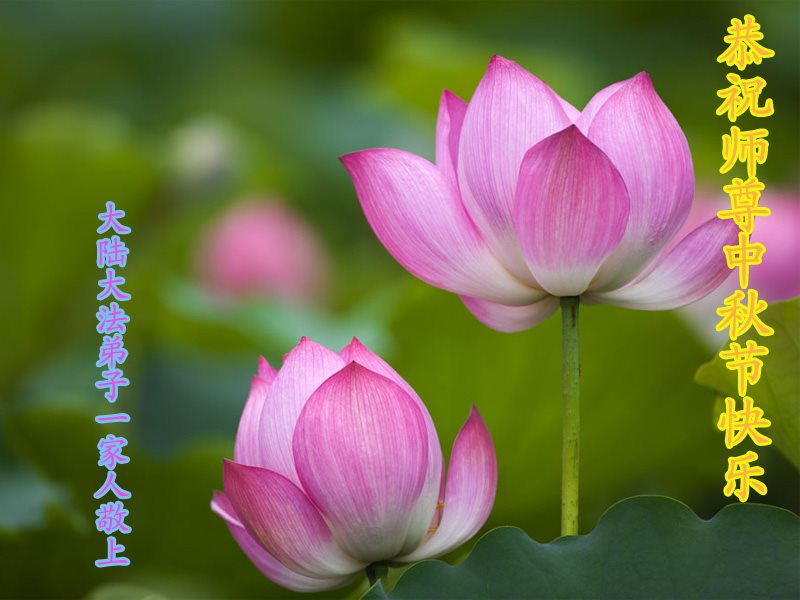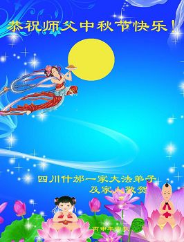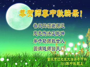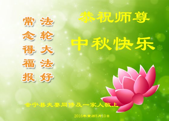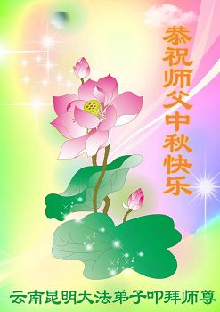 中秋节快到了,我和我得法三年,过去一字不识现在能看大法书学法,八十四的老母亲及明真相的妹妹恭祝师尊中秋节快乐!叩谢师恩,感恩师尊您的慈悲苦度。我们深知:没有恩师的救度,没有大法的传出,就没有我们的今天。