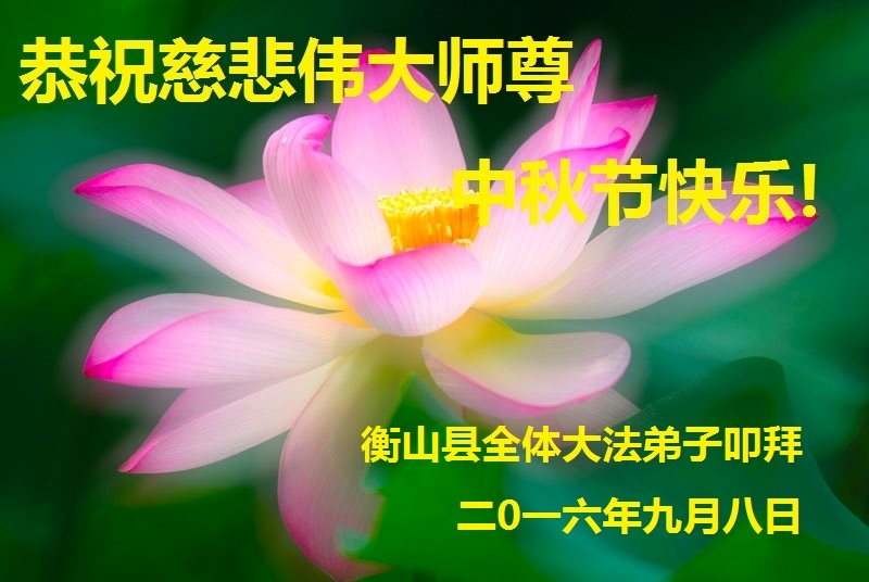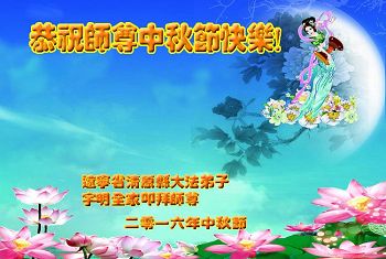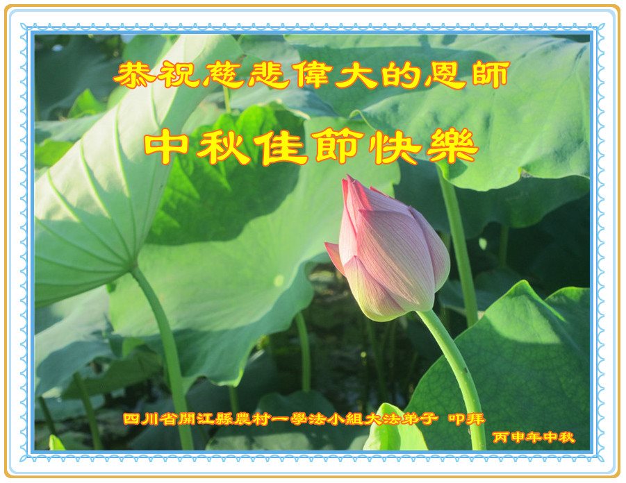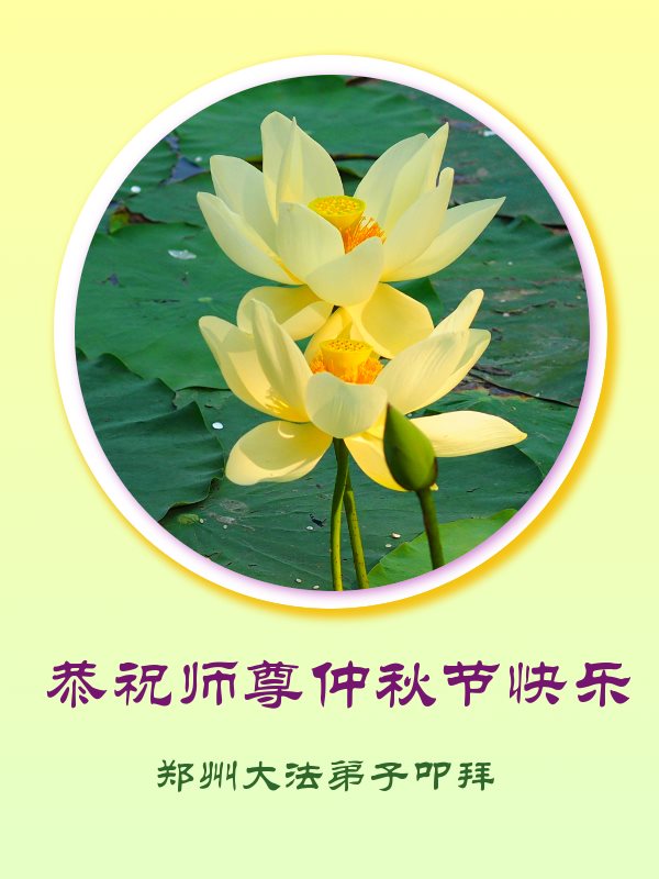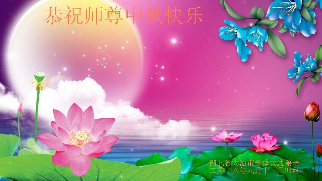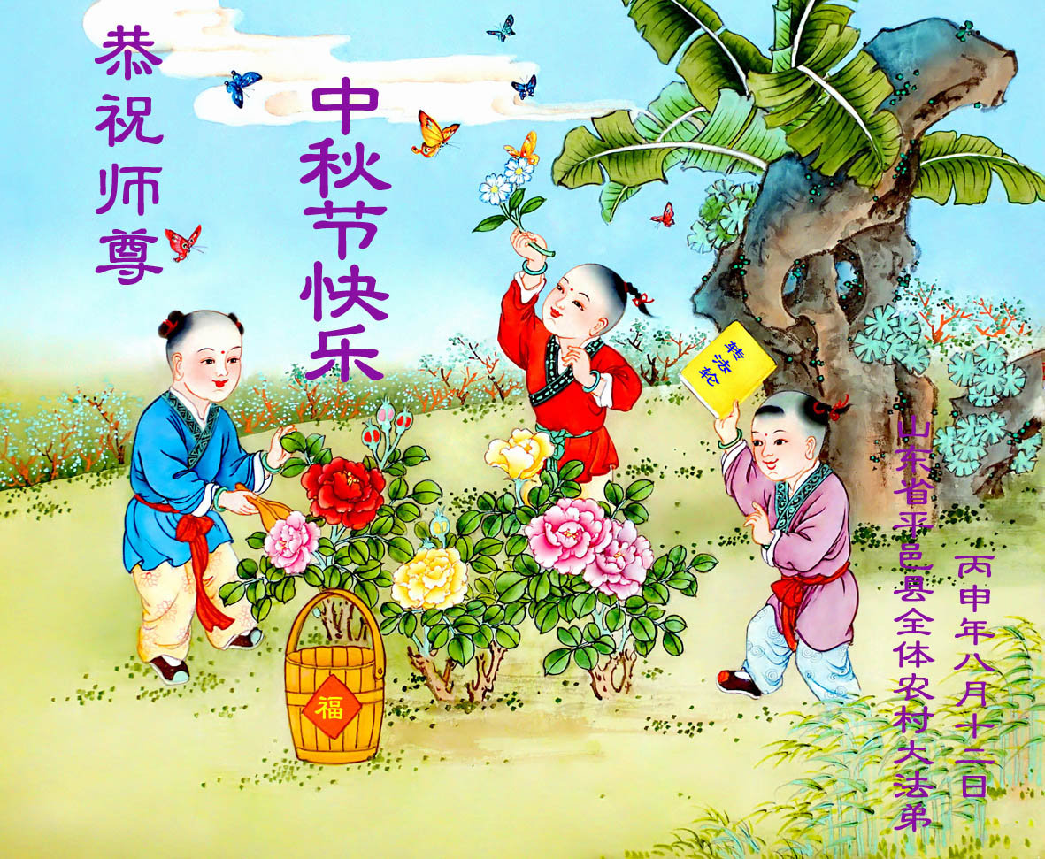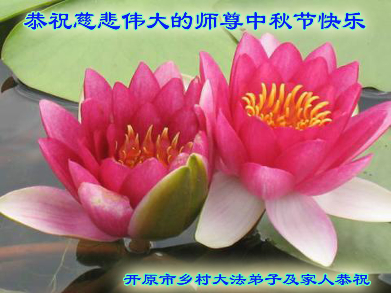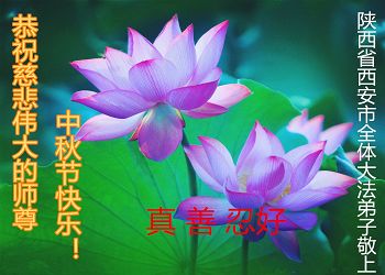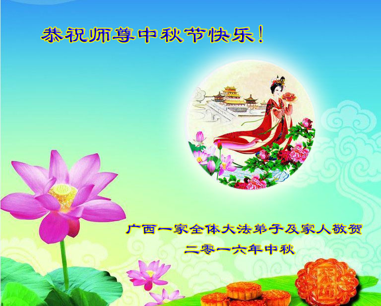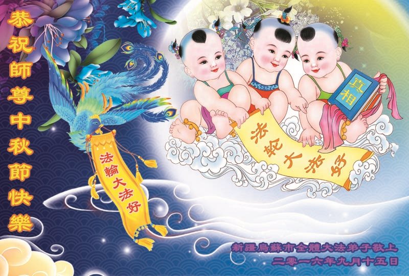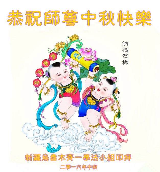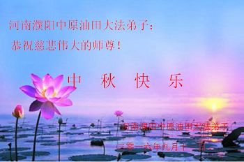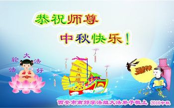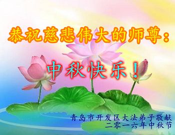 中秋节快到了,我和我得法三年,过去一字不识现在能看大法书学法,八十四的老母亲及明真相的妹妹恭祝师尊中秋节快乐!叩谢师恩,感恩师尊您的慈悲苦度。我们深知:没有恩师的救度,没有大法的传出,就没有我们的今天。
