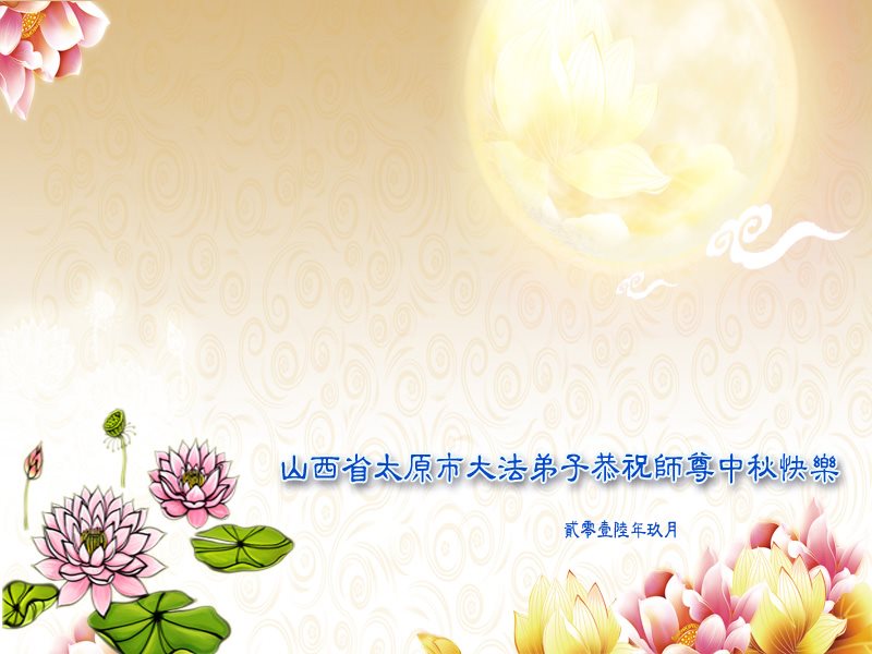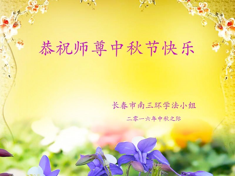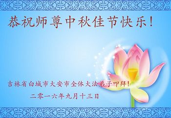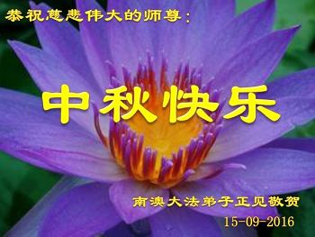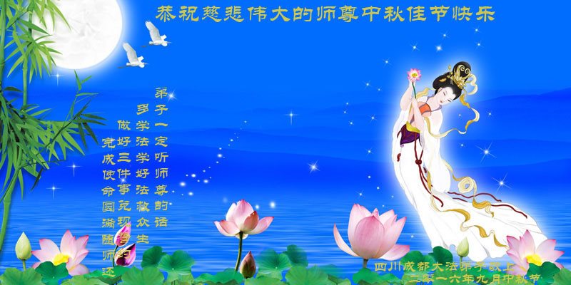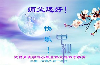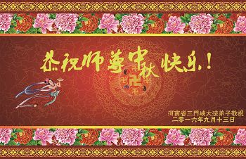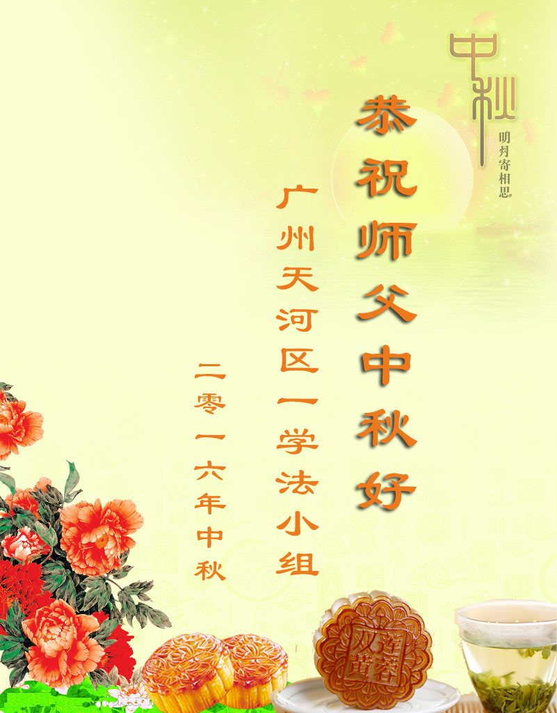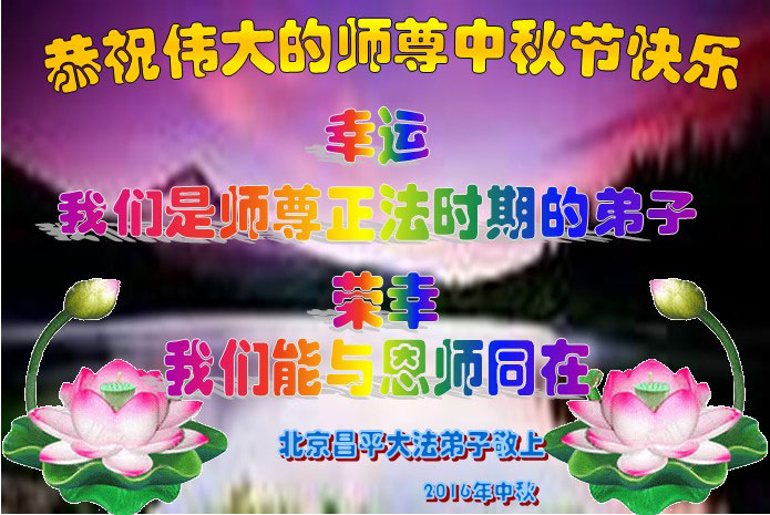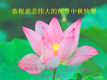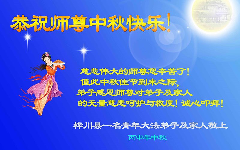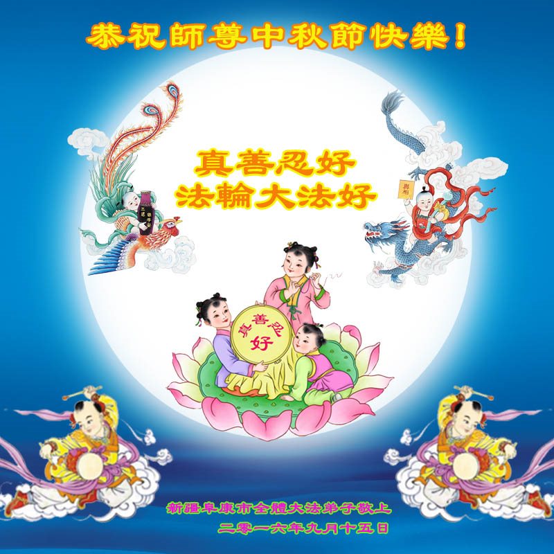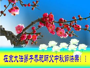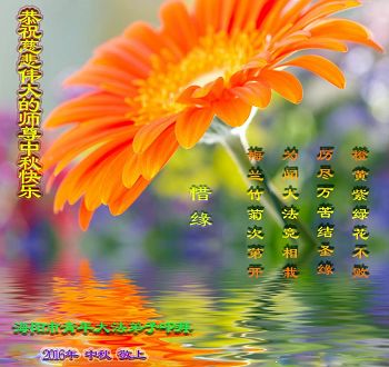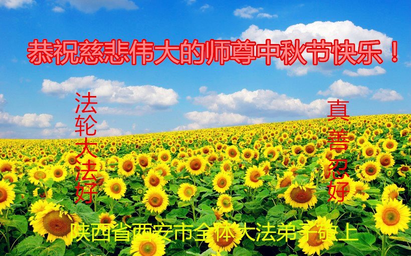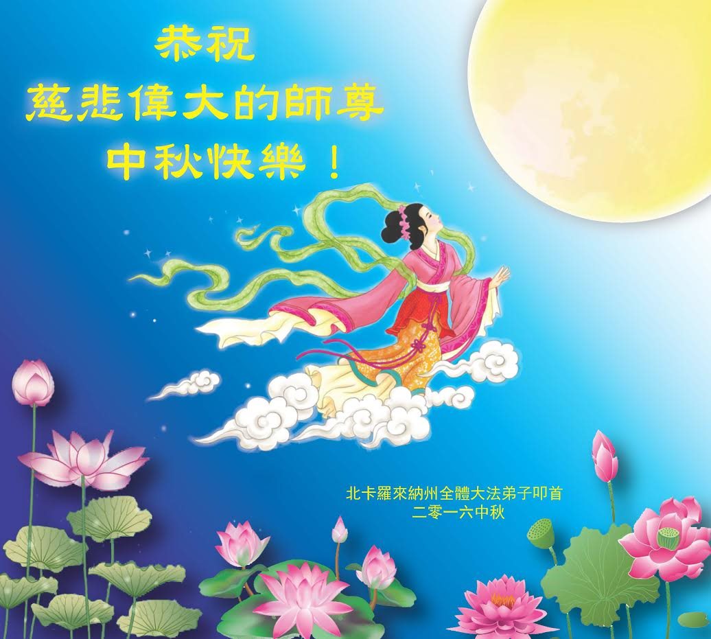 中秋节快到了,我和我得法三年,过去一字不识现在能看大法书学法,八十四的老母亲及明真相的妹妹恭祝师尊中秋节快乐!叩谢师恩,感恩师尊您的慈悲苦度。我们深知:没有恩师的救度,没有大法的传出,就没有我们的今天。