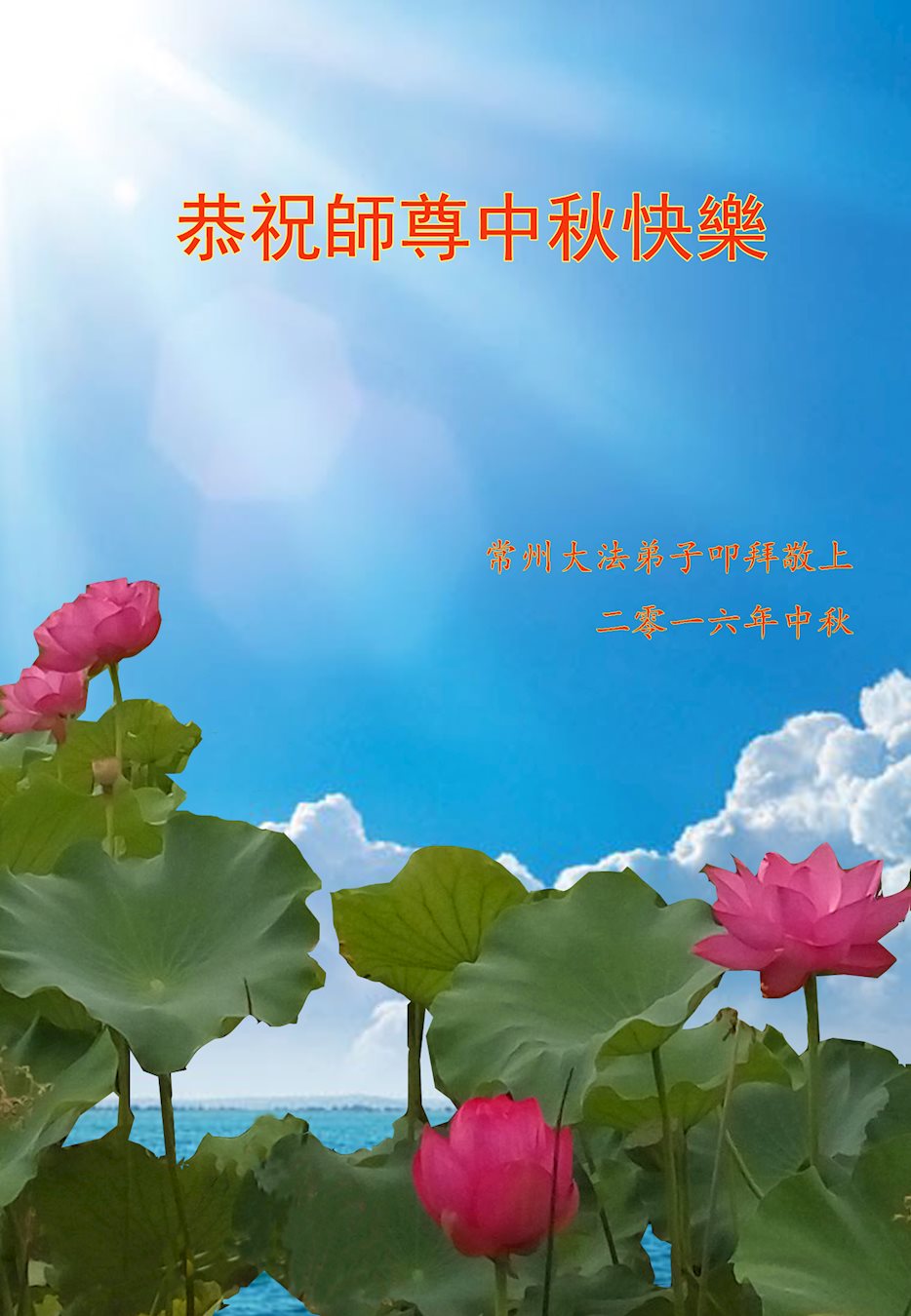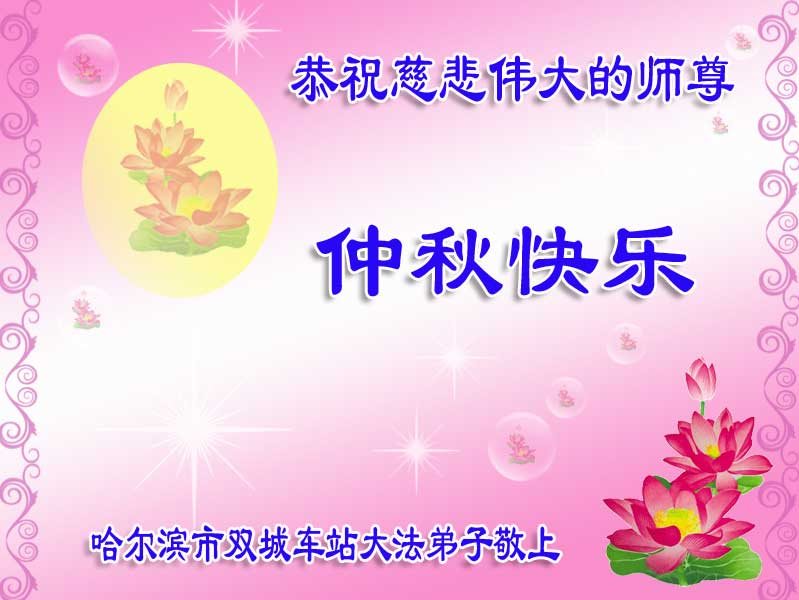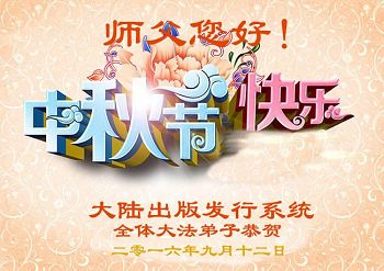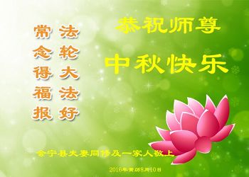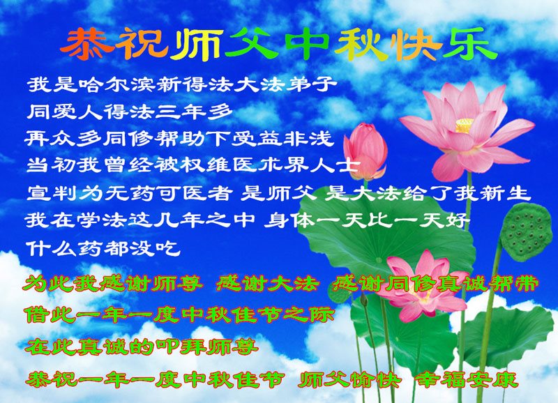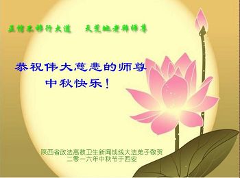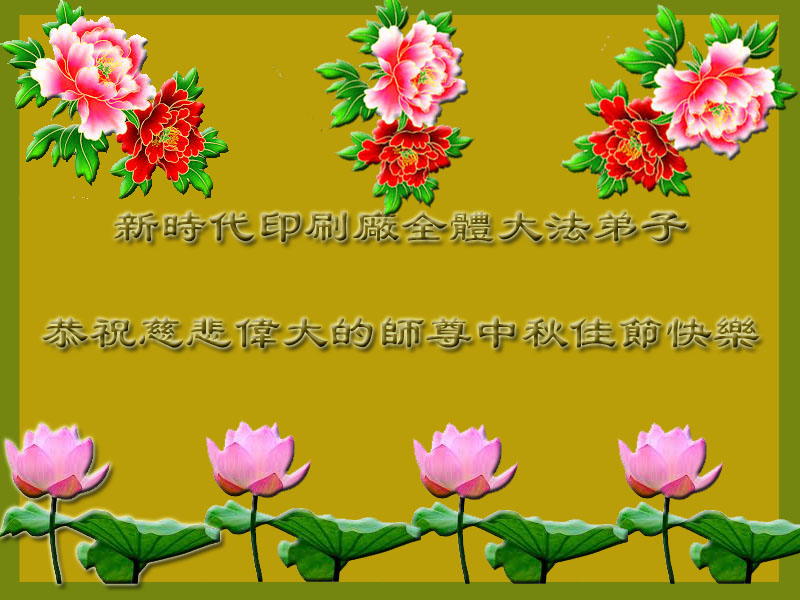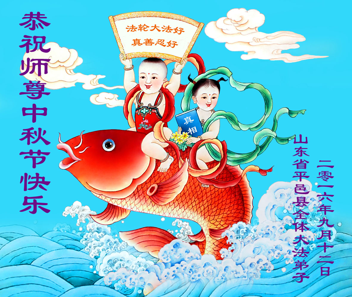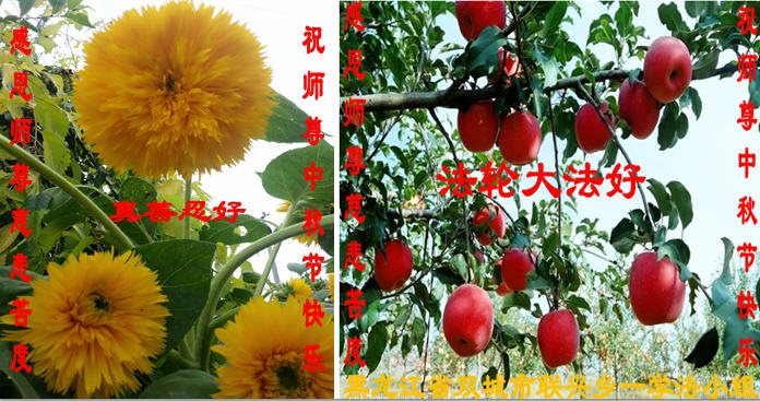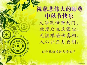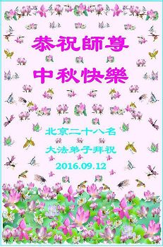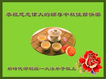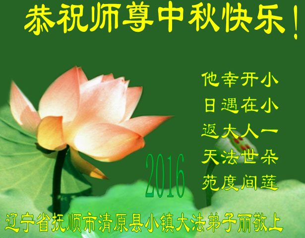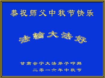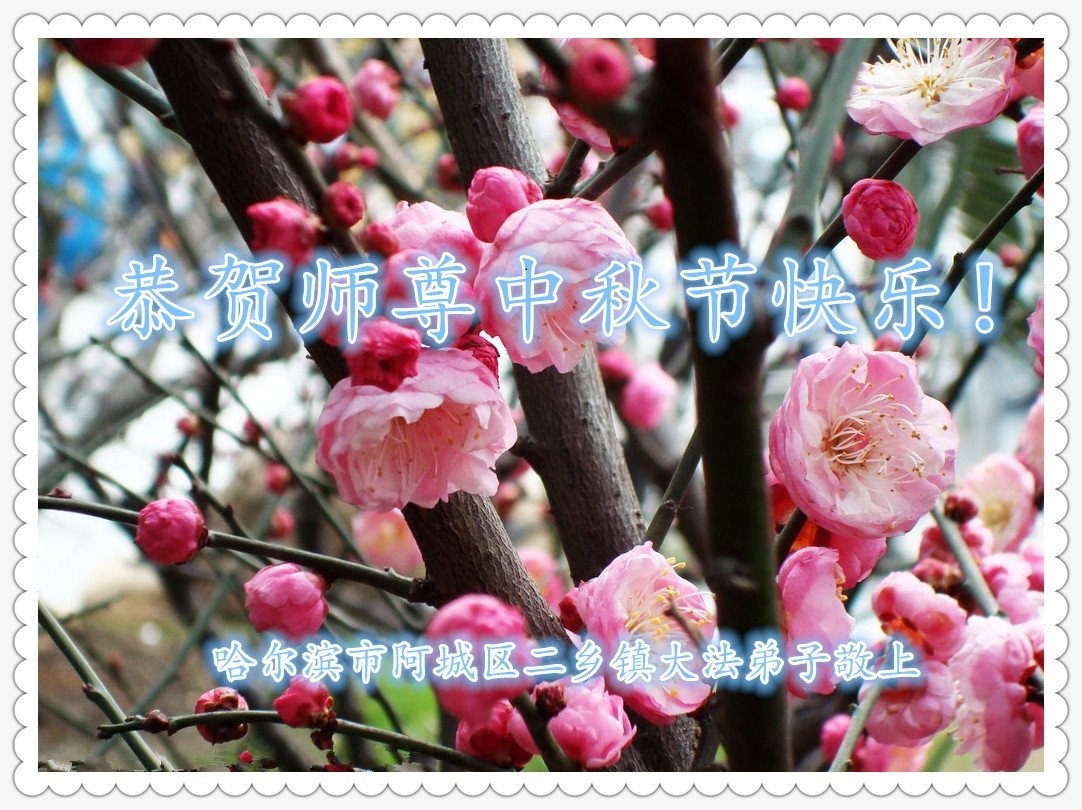 中秋节快到了,我和我得法三年,过去一字不识现在能看大法书学法,八十四的老母亲及明真相的妹妹恭祝师尊中秋节快乐!叩谢师恩,感恩师尊您的慈悲苦度。我们深知:没有恩师的救度,没有大法的传出,就没有我们的今天。