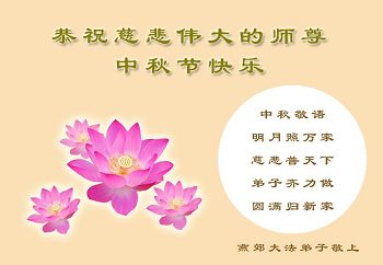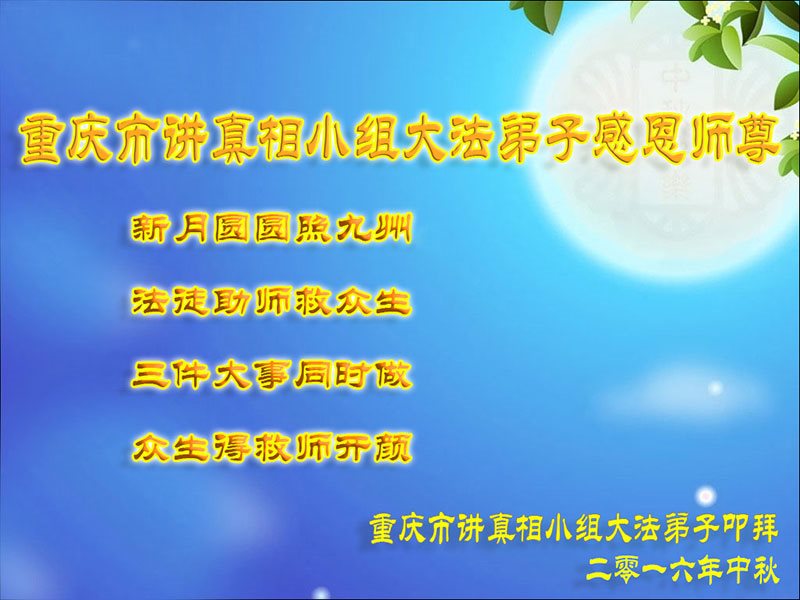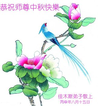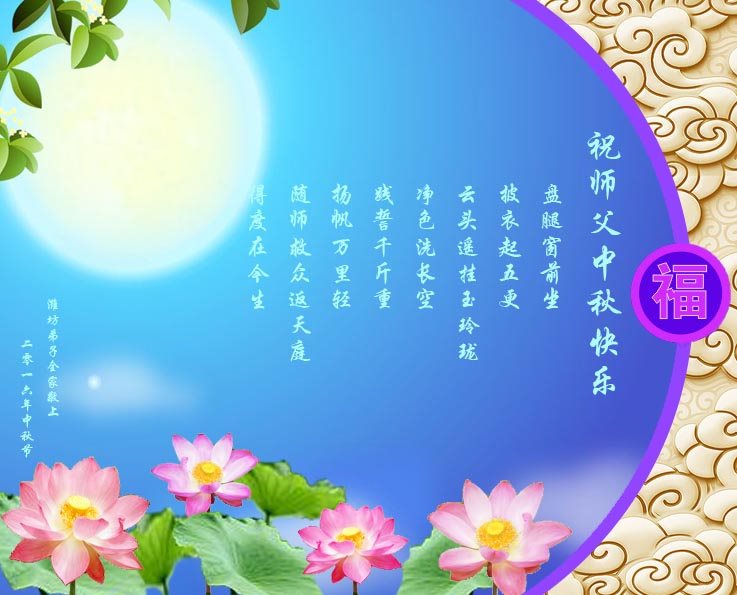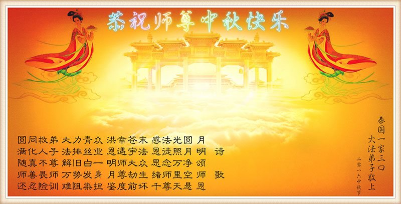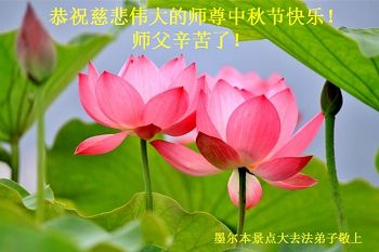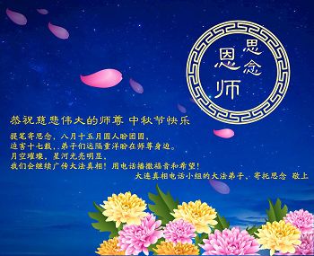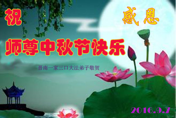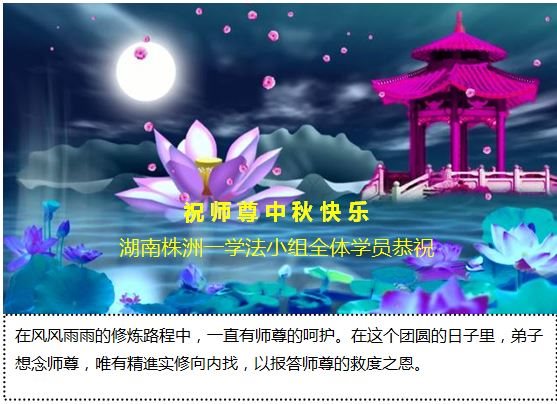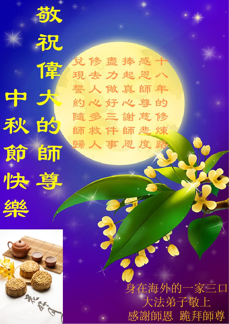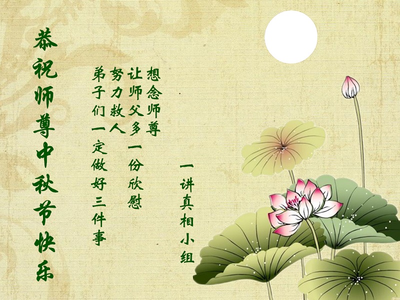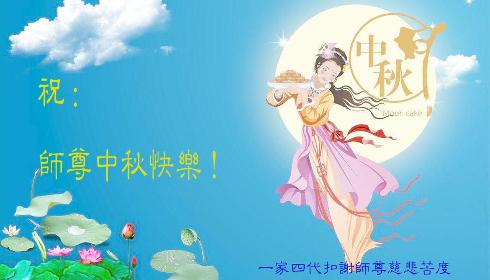 在中秋佳节到来之际,弟子真诚感谢师尊对弟子及明真相的女儿的慈悲呵护与救度!弟子唯有做好三件事,在法中精進再精進,报答师恩。