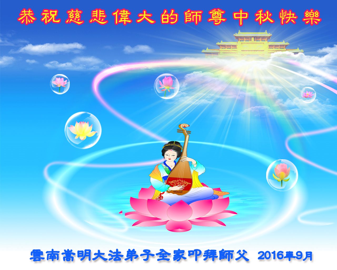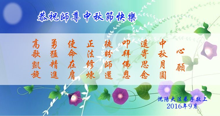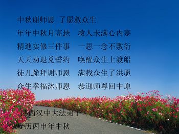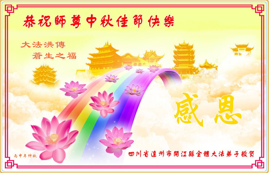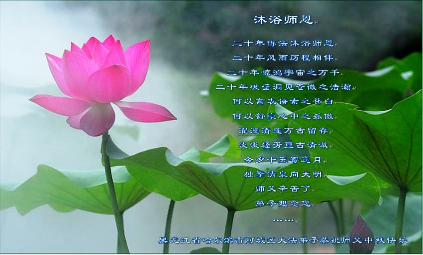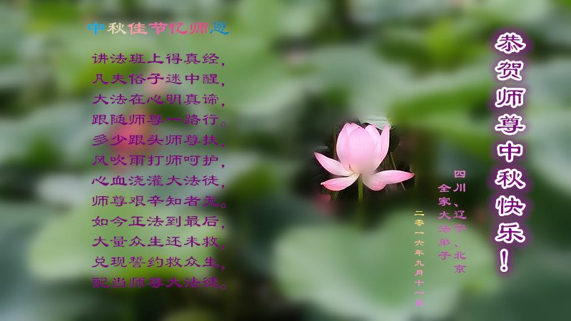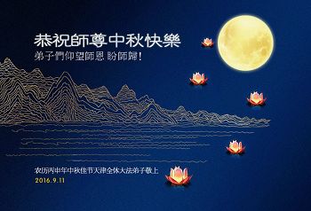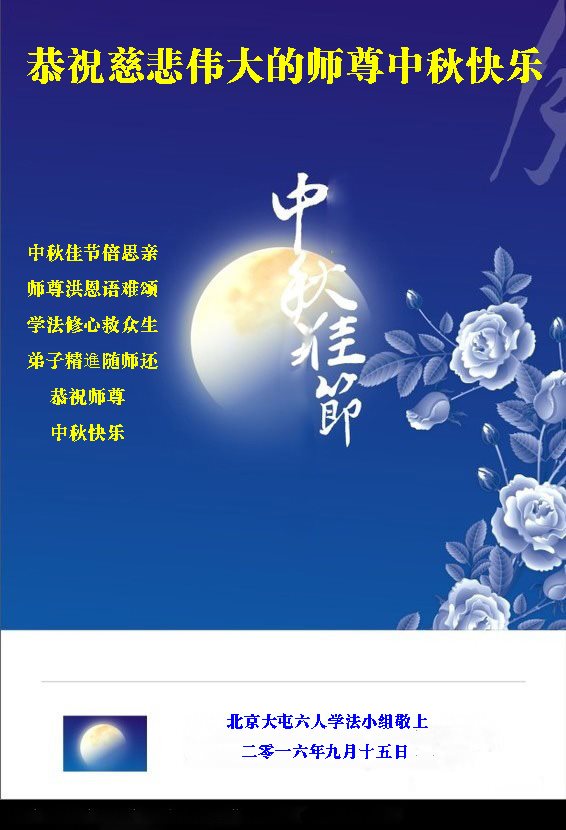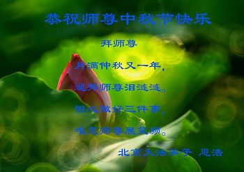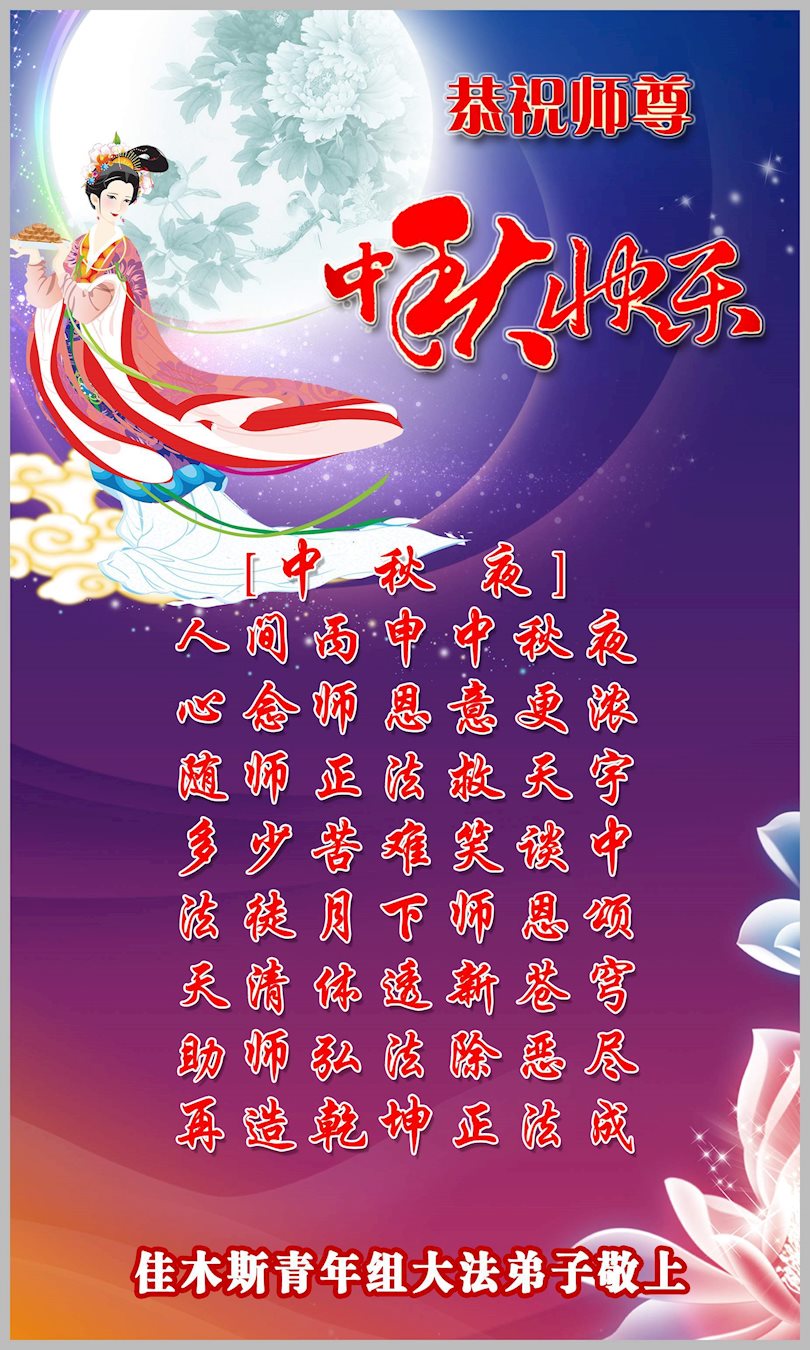 在中秋佳节到来之际,弟子真诚感谢师尊对弟子及明真相的女儿的慈悲呵护与救度!弟子唯有做好三件事,在法中精進再精進,报答师恩。
