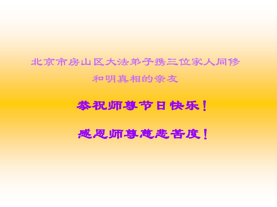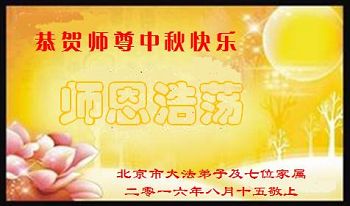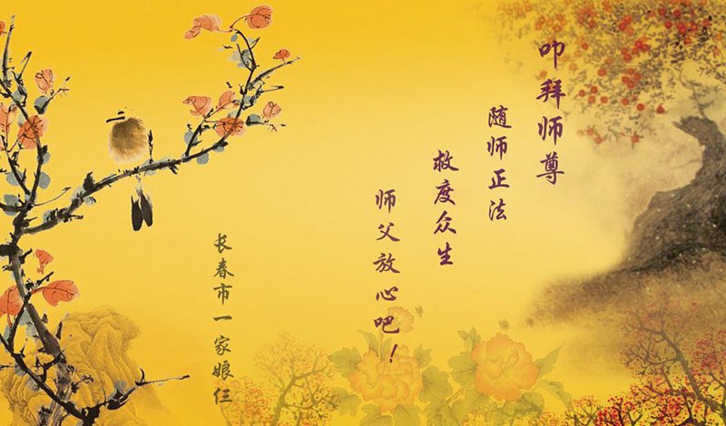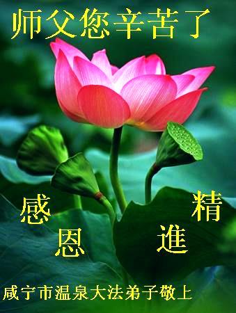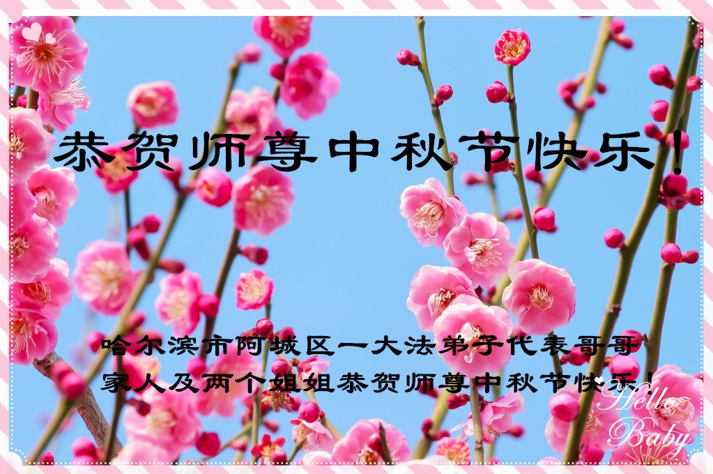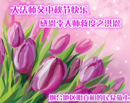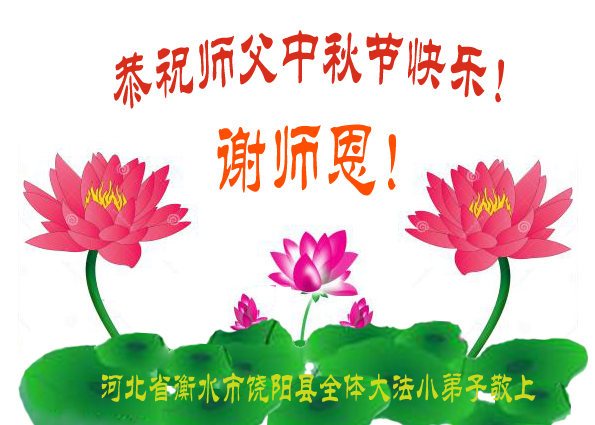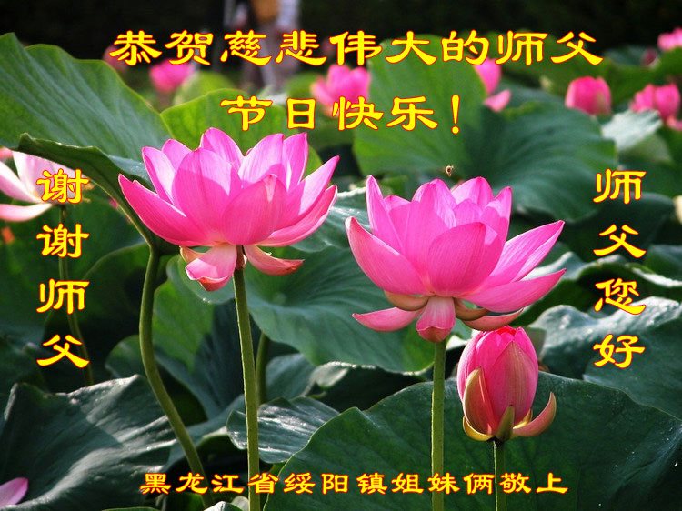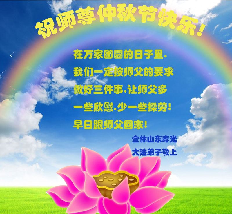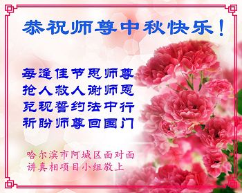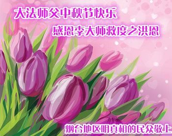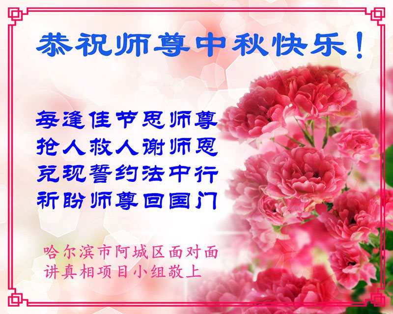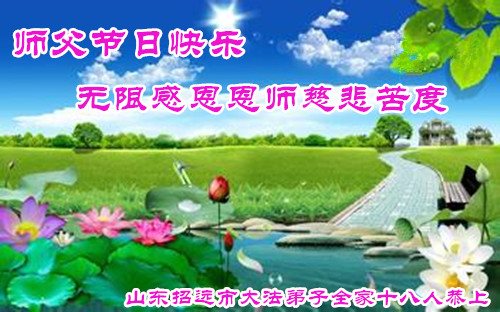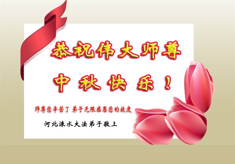 尊敬的李大师您好!在此佳节之际,我们携亲朋好友,向慈悲伟大的李大师致以崇高的谢意!感谢您慈悲救度!感谢您的弟子,是他们不辞辛劳的向世人传递着大法真相,才使我们看清了中共的邪恶。天灭中共在即,奉劝世人一定要珍惜这个机会,要想保命就要与中共邪*党-划清界限,“三:退.”才能保平安!并且也要偕同大法弟子把迫害法轮功的元凶绳之以法,还人间公道,让正义长存。得救的生命再次跪谢李大师救度大恩!您们师徒真的太辛苦了!
