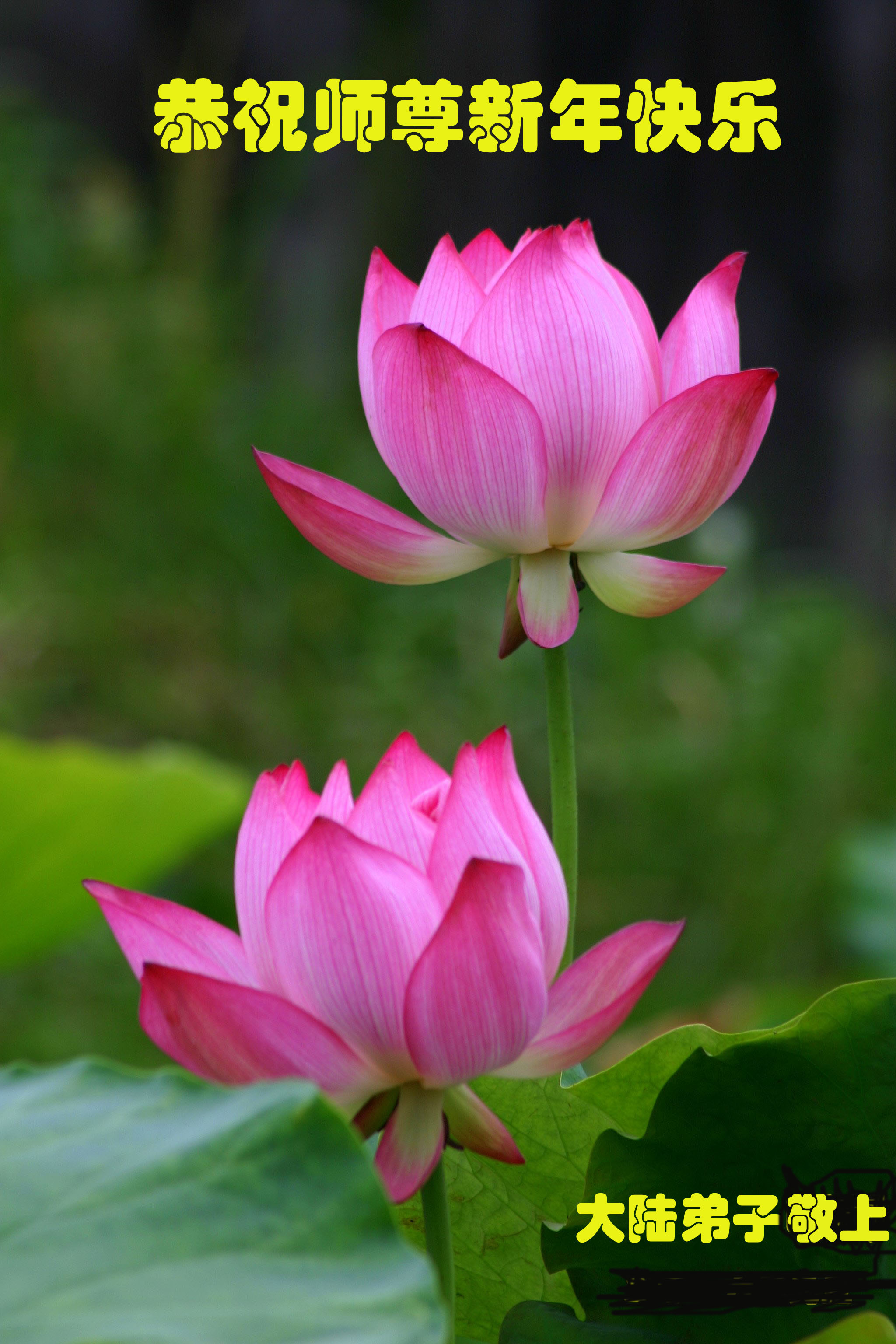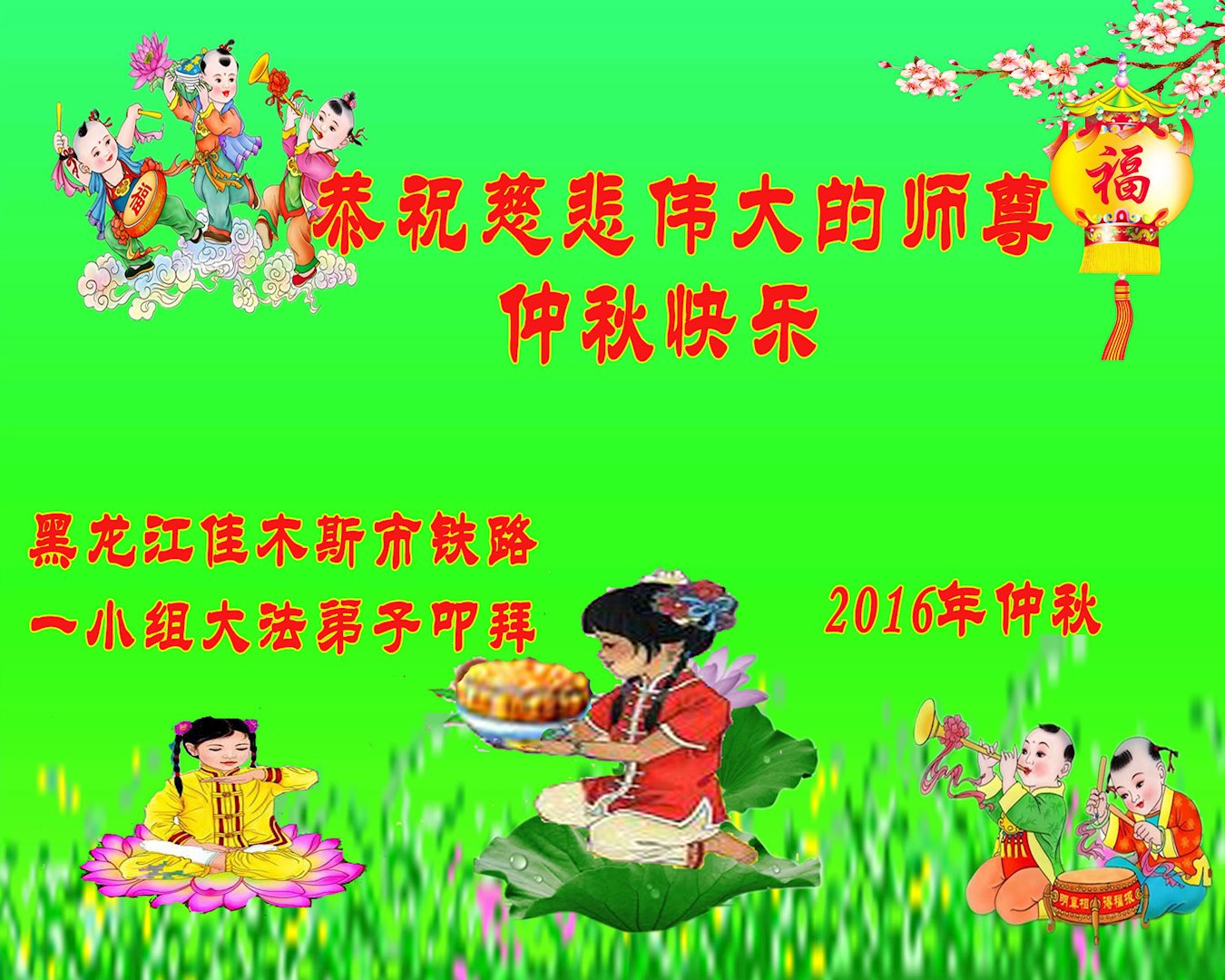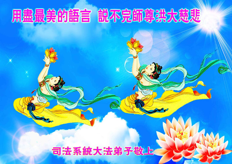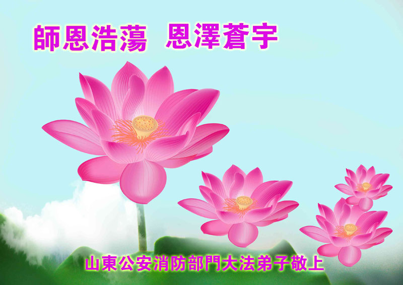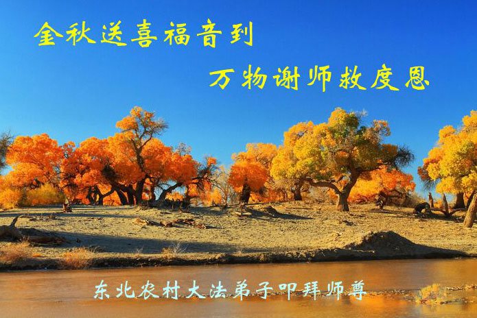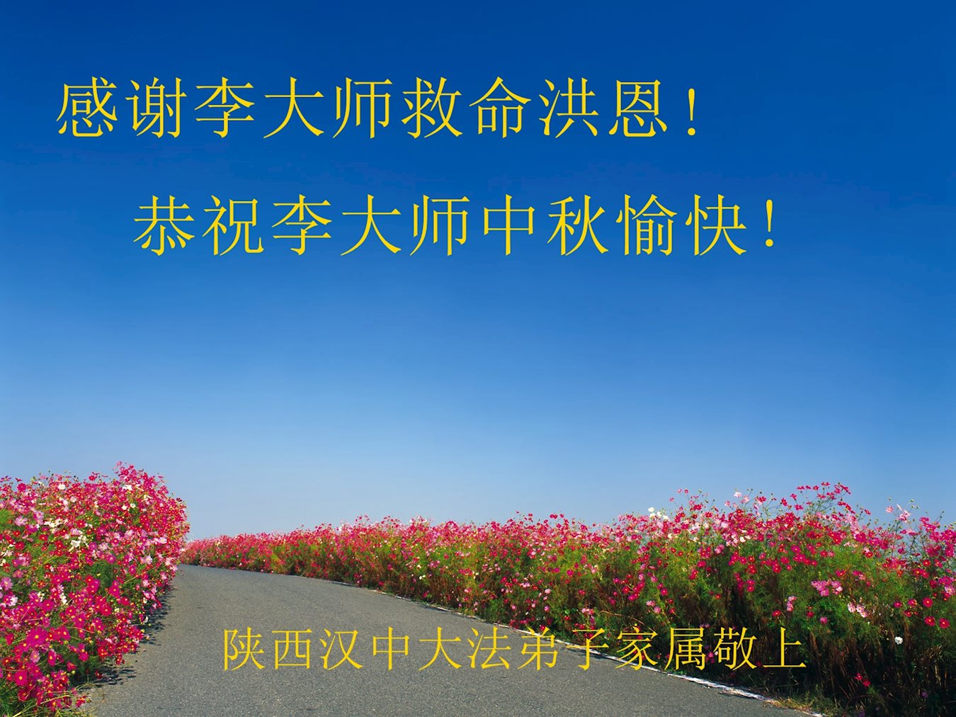 尊敬的李大师您好!在此佳节之际,我们携亲朋好友,向慈悲伟大的李大师致以崇高的谢意!感谢您慈悲救度!感谢您的弟子,是他们不辞辛劳的向世人传递着大法真相,才使我们看清了中共的邪恶。天灭中共在即,奉劝世人一定要珍惜这个机会,要想保命就要与中共邪*党-划清界限,“三:退.”才能保平安!并且也要偕同大法弟子把迫害法轮功的元凶绳之以法,还人间公道,让正义长存。得救的生命再次跪谢李大师救度大恩!您们师徒真的太辛苦了!