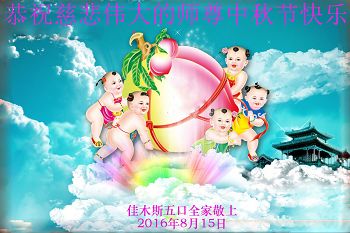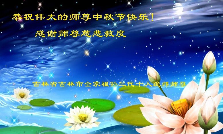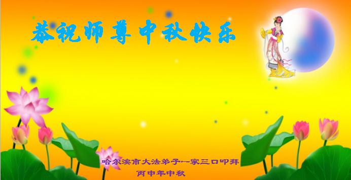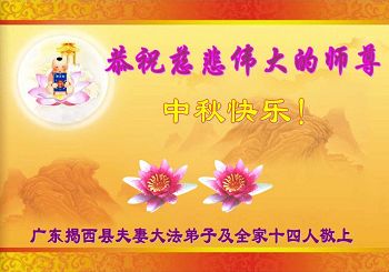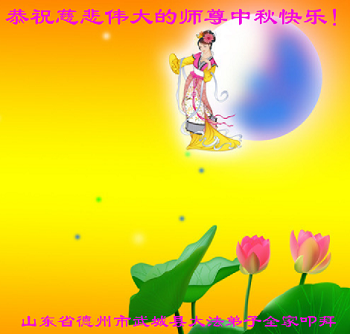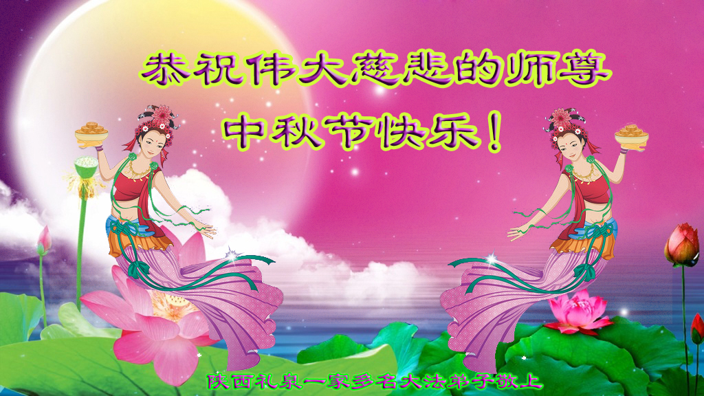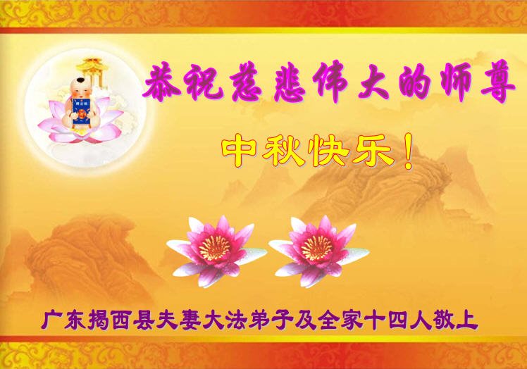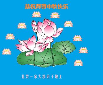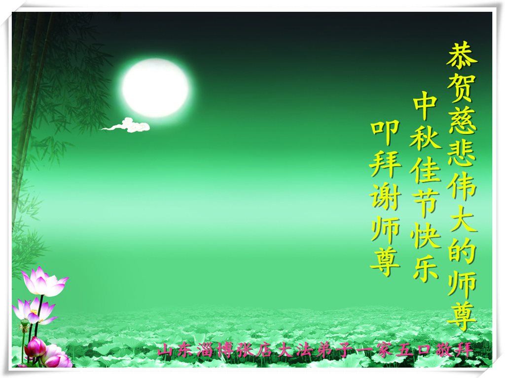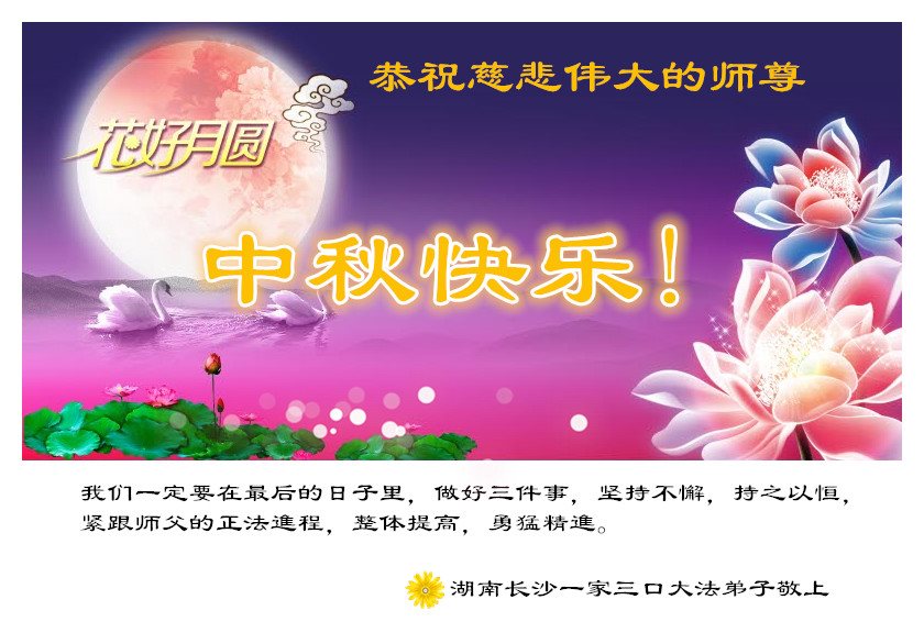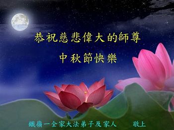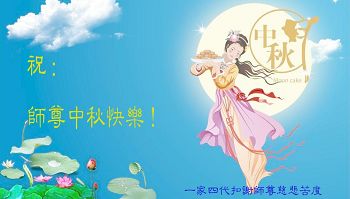 在中秋月圆之时,我们大法弟子及支持大法的家人,特别思念慈悲伟大的李洪志师父。师尊对我们的慈悲苦度,为我们铺就了回归之路。是师尊巨大的承受,大法弟子才能走到今天,家人才能幸福和睦。我们全家人,叩首拜谢师尊慈悲救度。