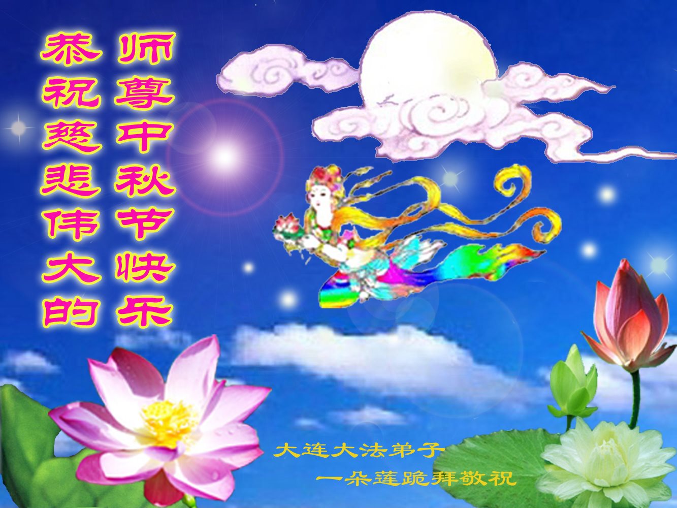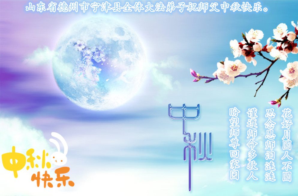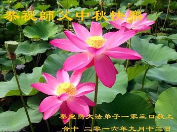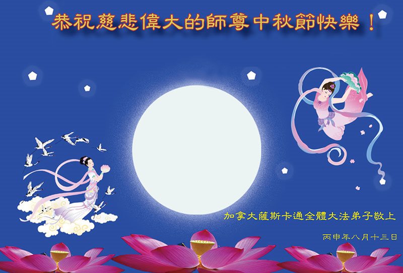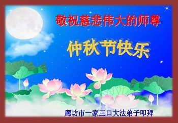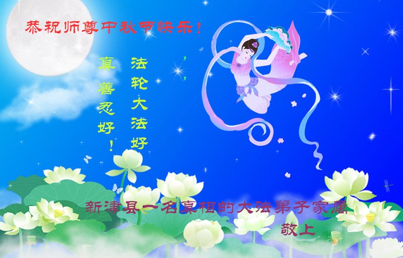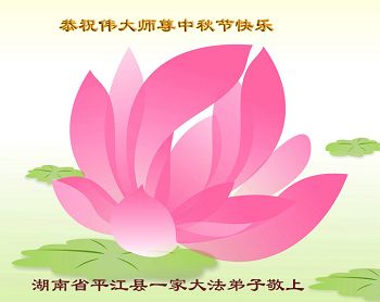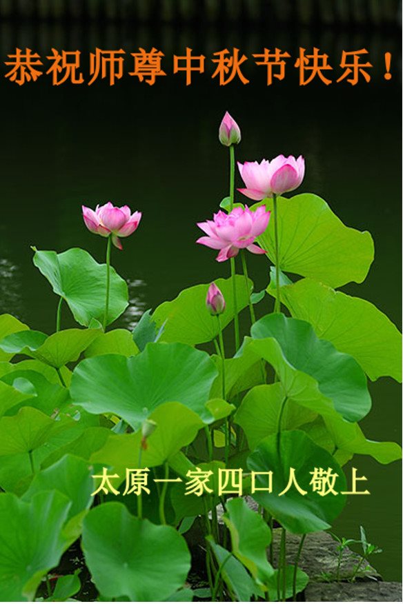 在中秋月圆之时,我们大法弟子及支持大法的家人,特别思念慈悲伟大的李洪志师父。师尊对我们的慈悲苦度,为我们铺就了回归之路。是师尊巨大的承受,大法弟子才能走到今天,家人才能幸福和睦。我们全家人,叩首拜谢师尊慈悲救度。