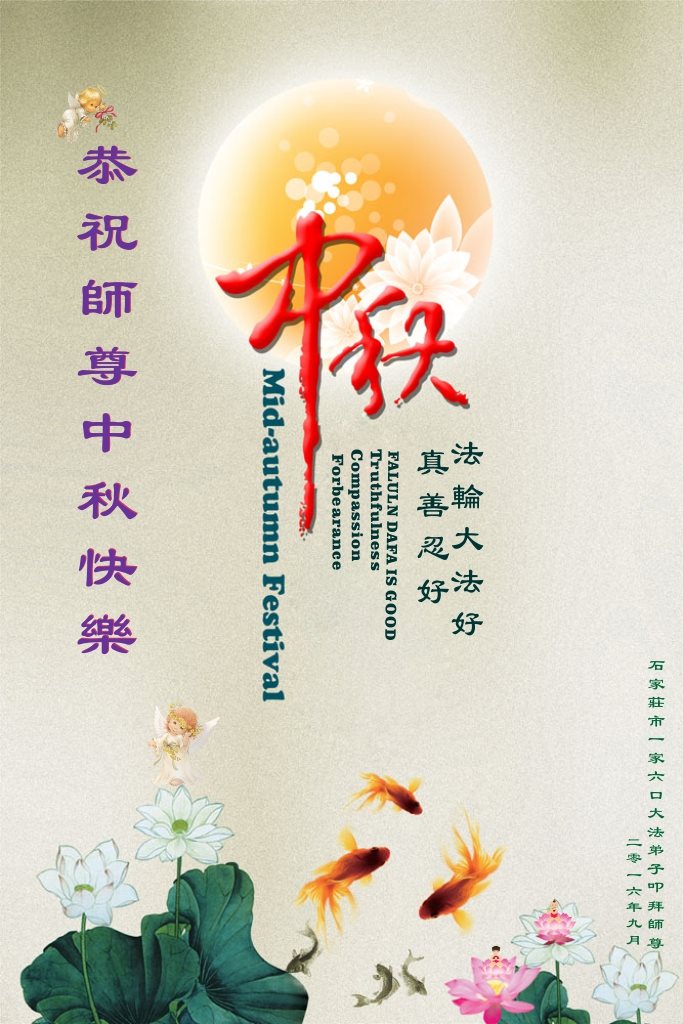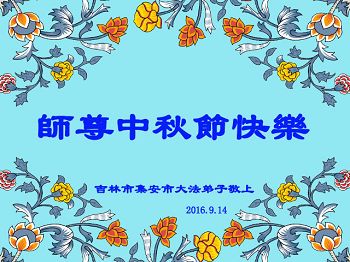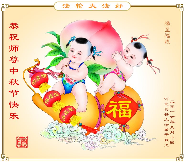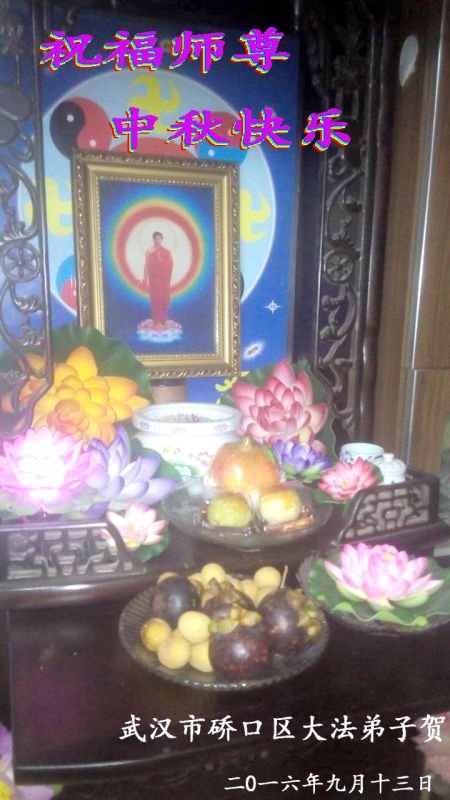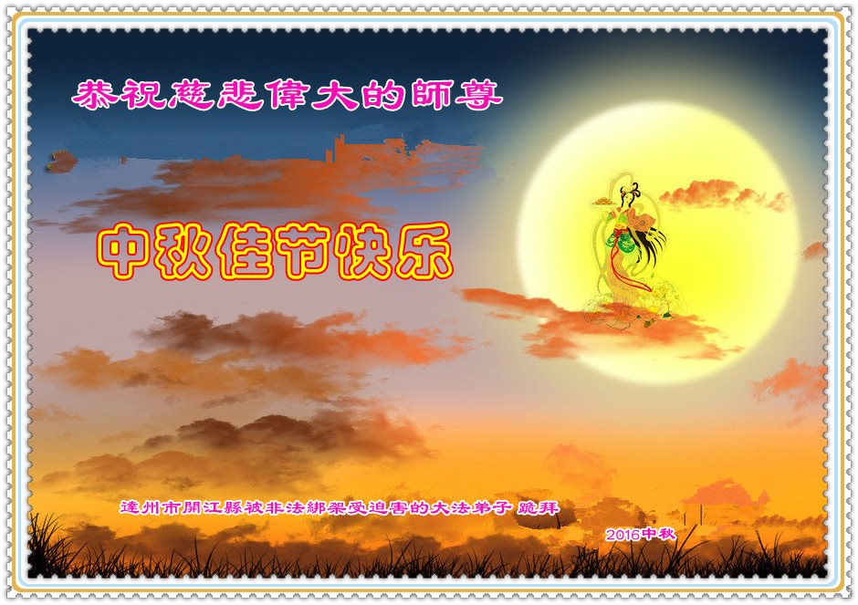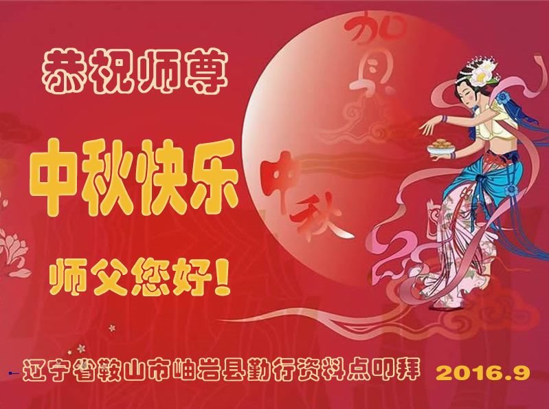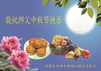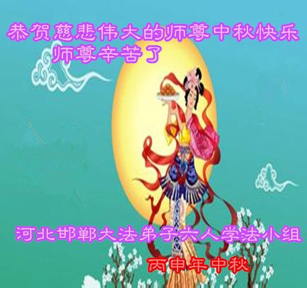 师父辛苦了!在往后的修炼道路上,弟子一定谨记自己正法时期大法弟子的身份和使命,做好三件事,修去所有人心和执着,堂堂正正随师还。家里明白真相的亲人也祝师父中秋节快乐!