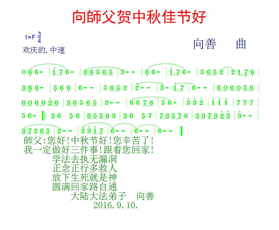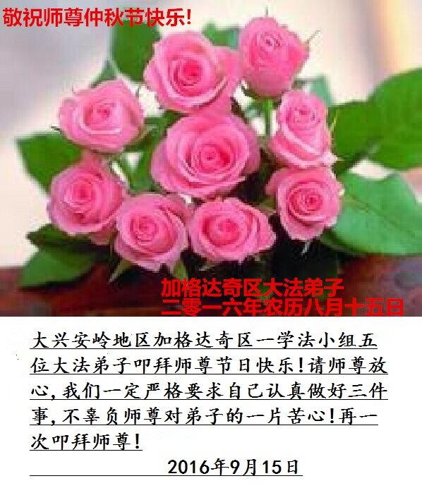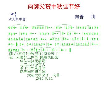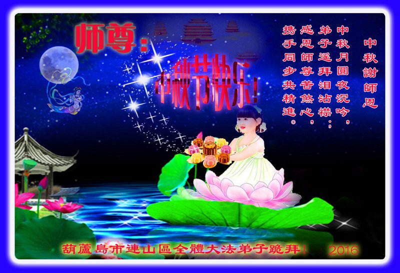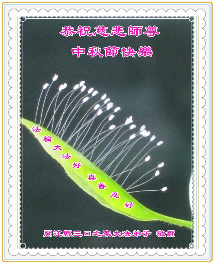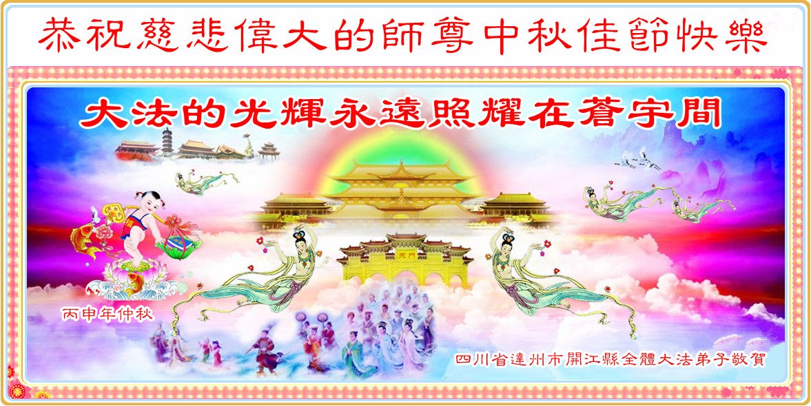 师父辛苦了!在往后的修炼道路上,弟子一定谨记自己正法时期大法弟子的身份和使命,做好三件事,修去所有人心和执着,堂堂正正随师还。家里明白真相的亲人也祝师父中秋节快乐!