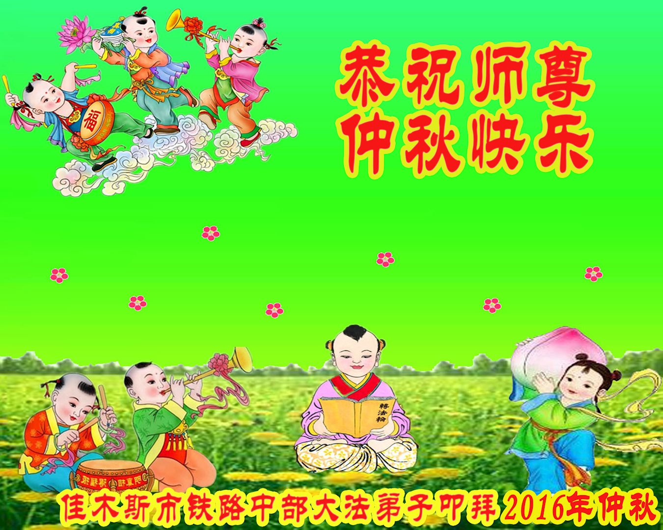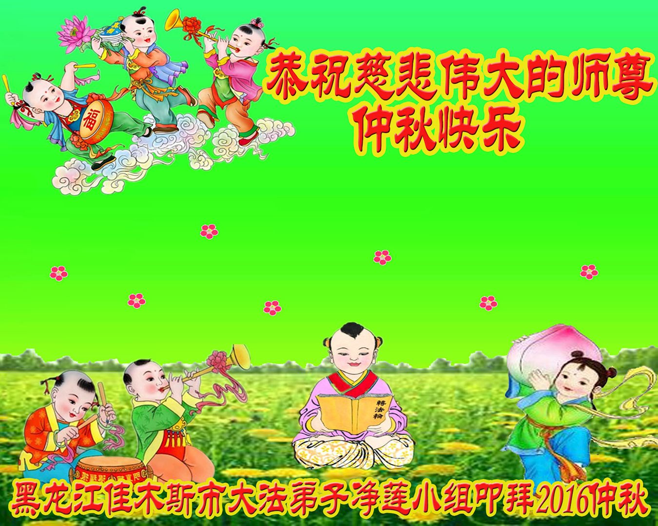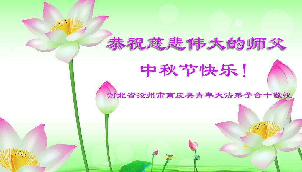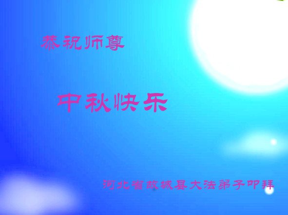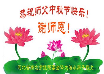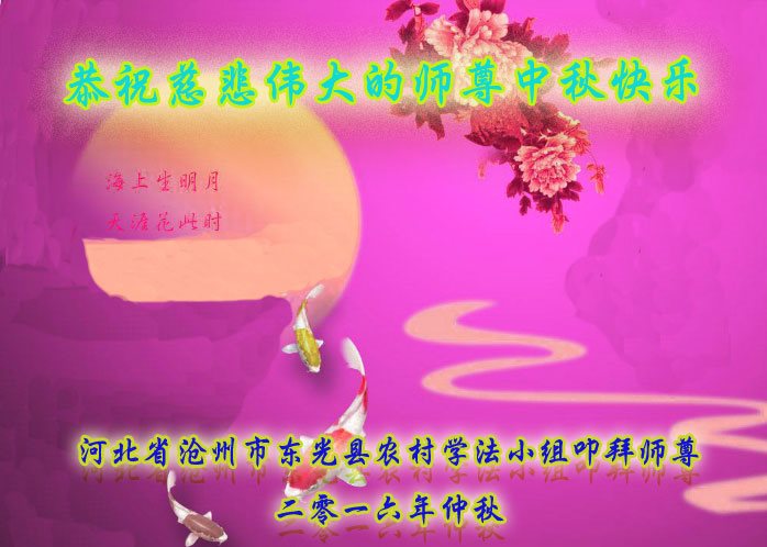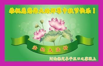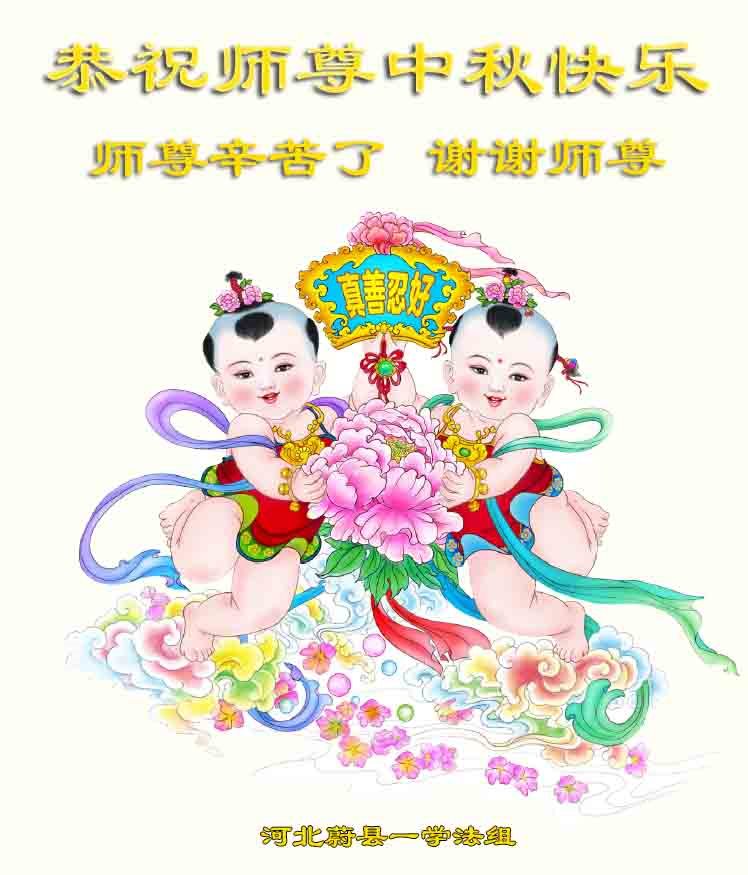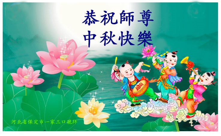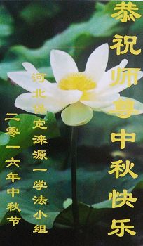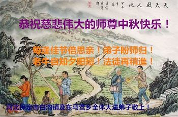 河北保定满城区农村一学法小组大法弟子及明真相的家人恭祝慈悲伟大的师父中秋节快乐!