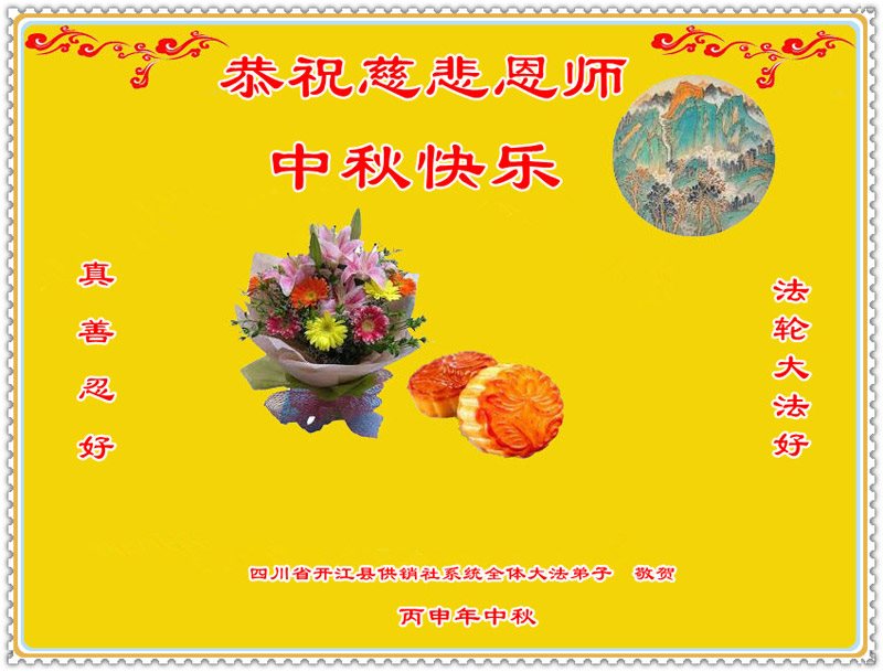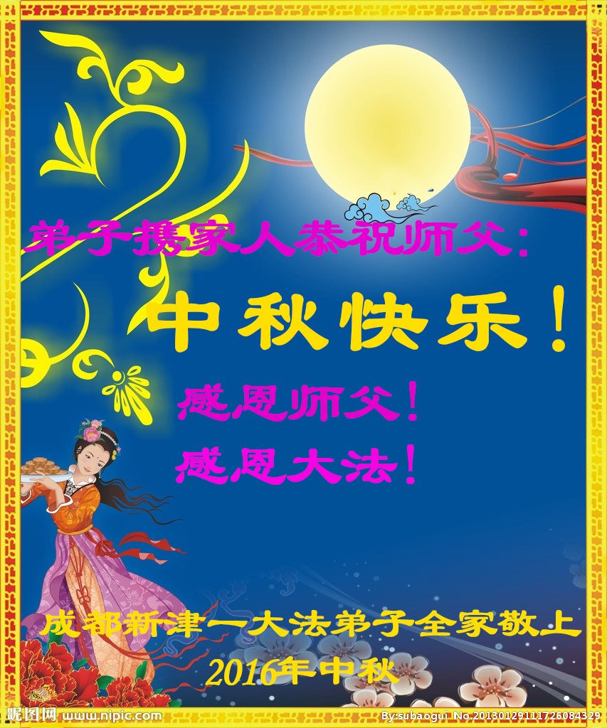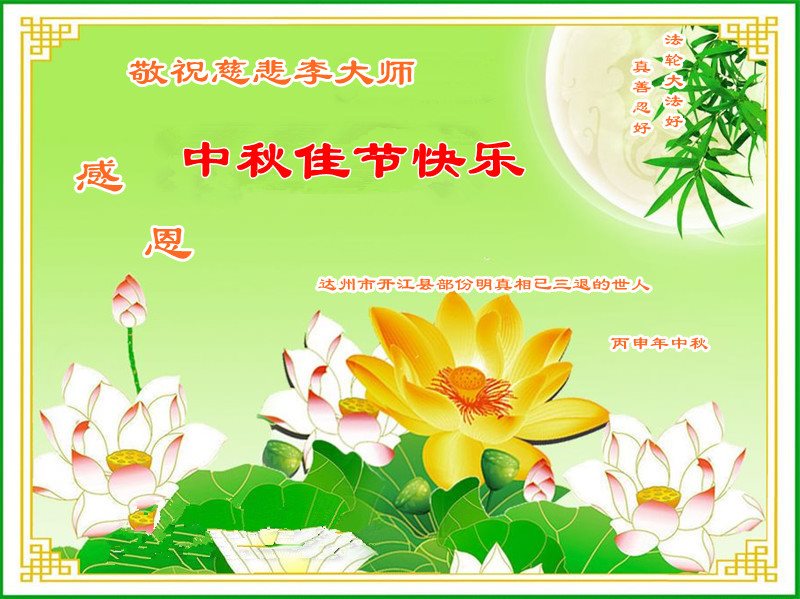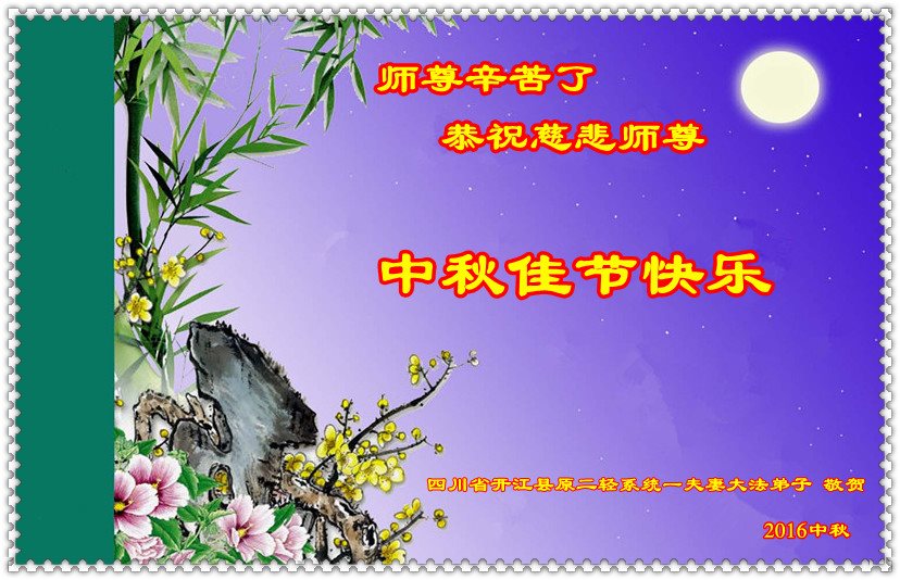 四川省成都市邛崃市明真相的世人恭贺法轮功师父中秋快乐!