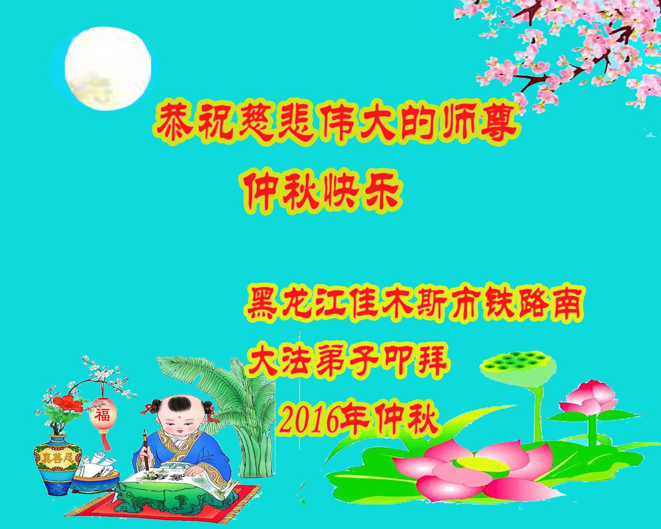 安徽安庆市大法弟子祝师尊中秋快乐!
