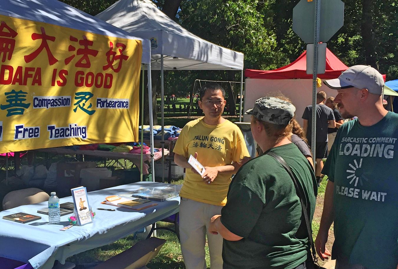 ![]() 伊利诺伊州中部的法轮功学员在菊花节上设立展位,向民众传播法轮功的真相,并征集签名制止活摘。 |