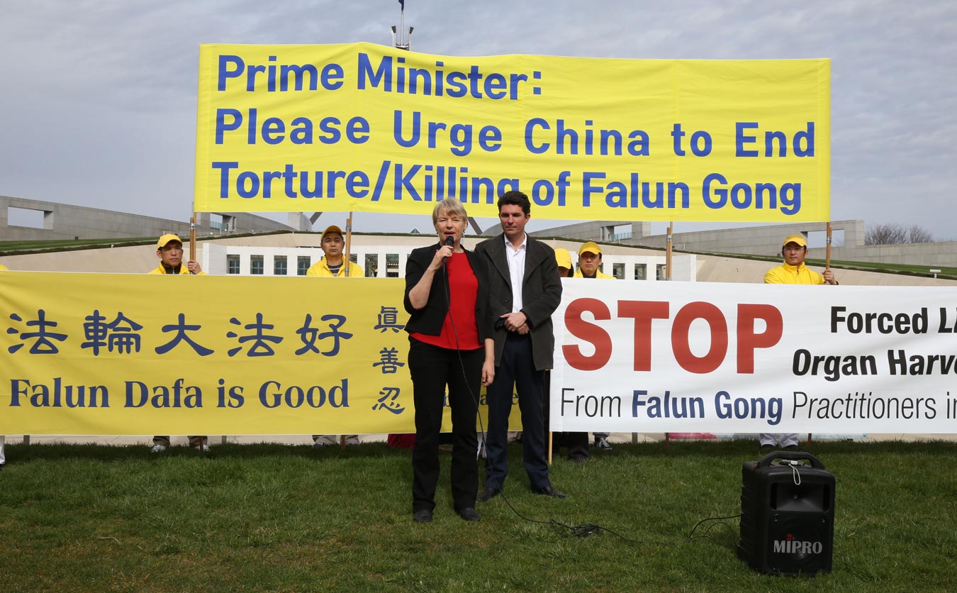 她向公众承诺:“我会继续站出来为你们(法轮功学员)发声,为世界,尤其是中国的基本人权发声,直到在来自包括澳大利亚在内的国际社会压力下,中国的人权状况有所改变为止。”