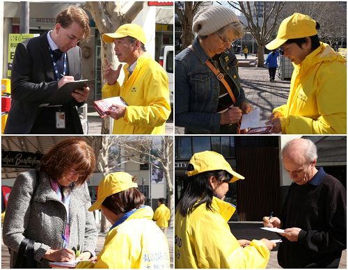 集会结束后,法轮功学员继续在堪培拉的商业中心向民众进行讲真相征签活动。一位姓布莱斯(Meagan Brice)的女士在听到对中国法轮功活体摘取器官的事后,非常震惊,连连表示这太恐怖了,太令人不可思议了。在签了明信片后,她表示要上网去多了解这件事,并希望自己的支持能有助制止这样的罪恶。