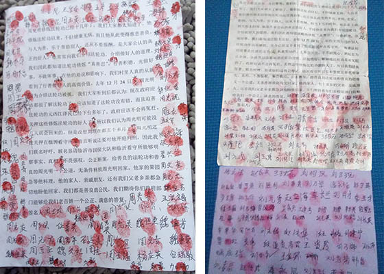 同时在这段时间里,一直盼望赵传文、周光明平安回家的亲朋好友、父老乡亲们联署签名、按手印,依法、联名要求相关部门秉公办案、无罪释放赵传文和周光明、给善良的法轮功及其学员一个公道。