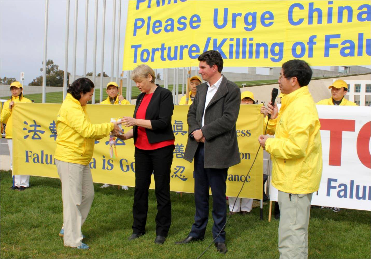 新州联邦参议员莉•雷亚农(Lee Rhiannon)致信声援,她表示美国通过343决议案谴责活摘罪行,这给人以希望,欧洲议会和加拿大也采取了类似的行动,世界已经开始倾听。澳洲国会也应对此做出正式谴责,她并表示会努力促成此事。
