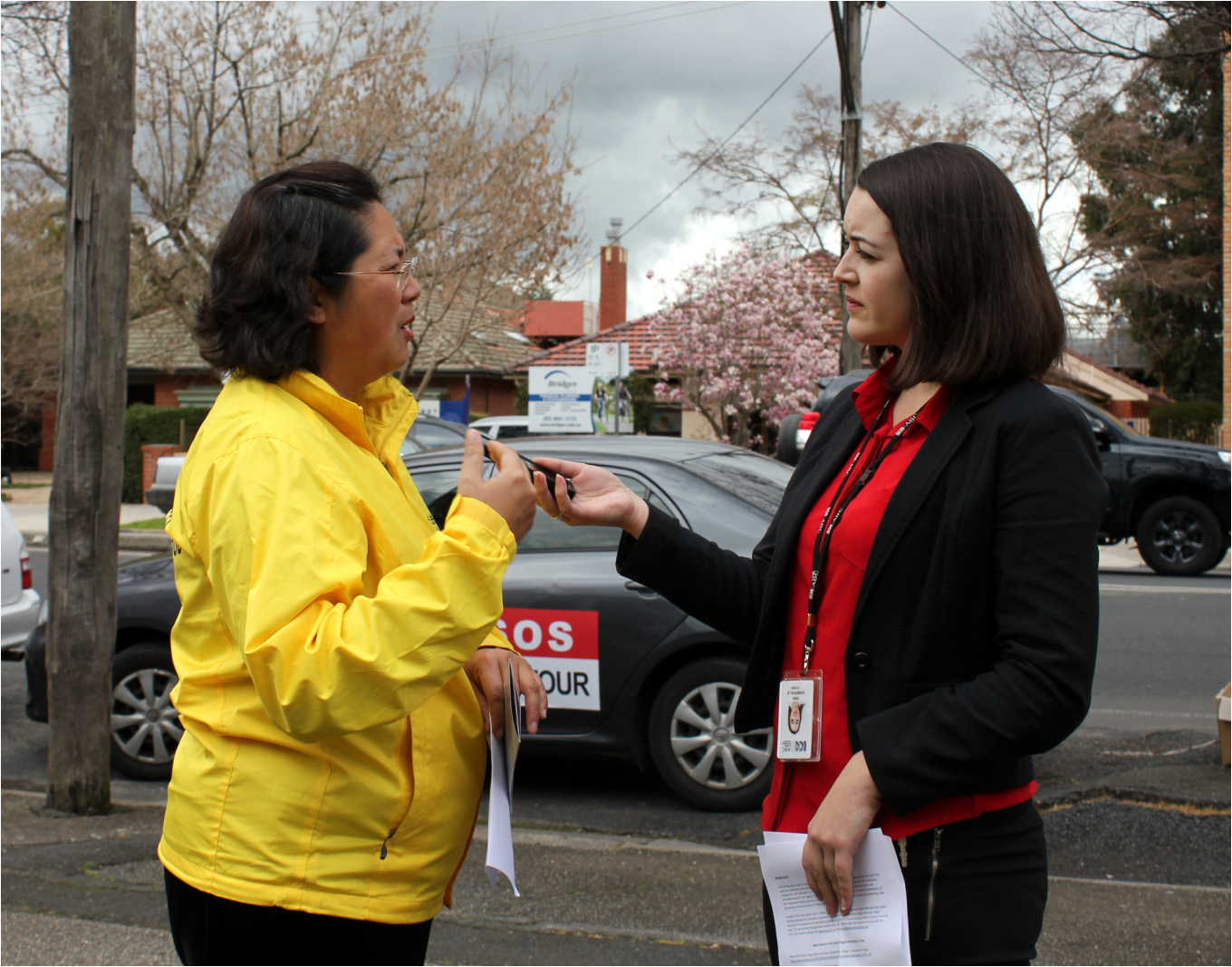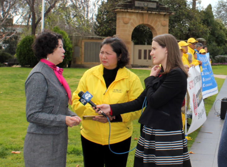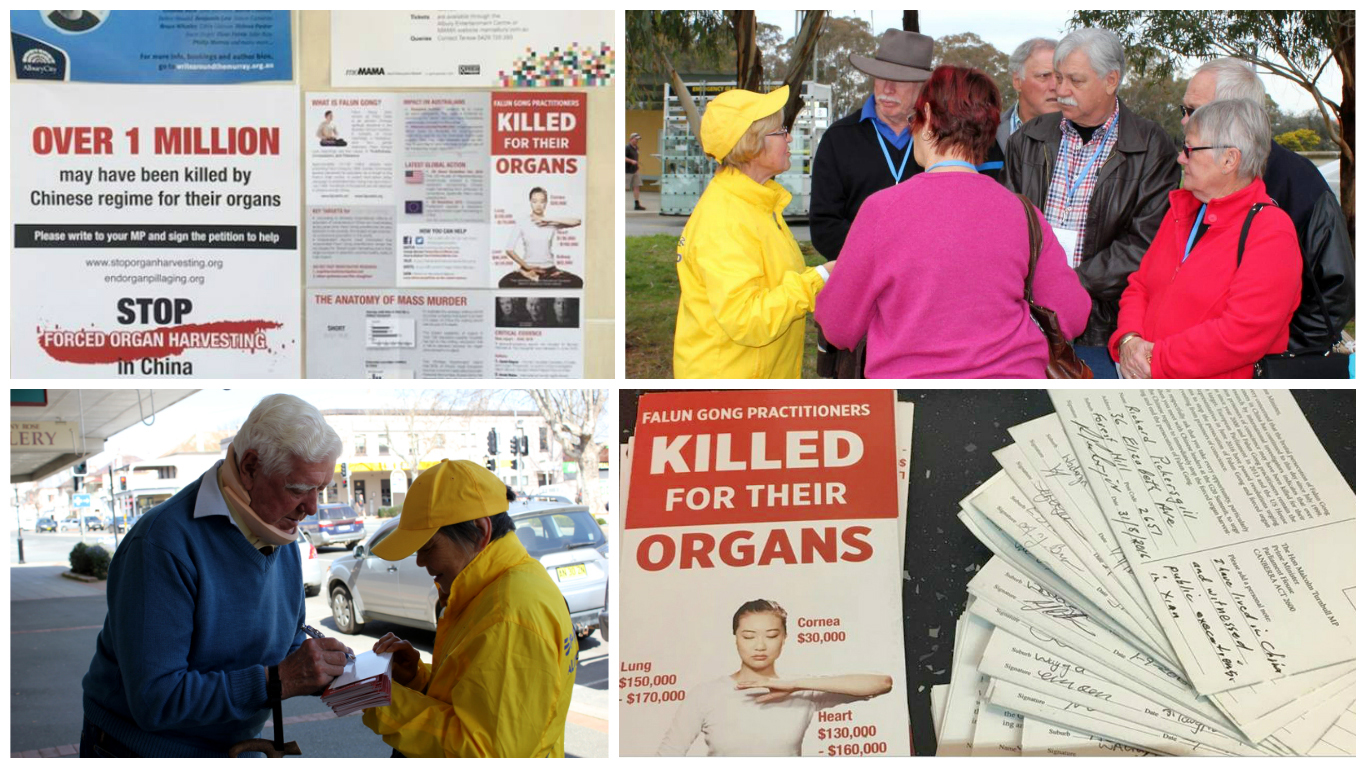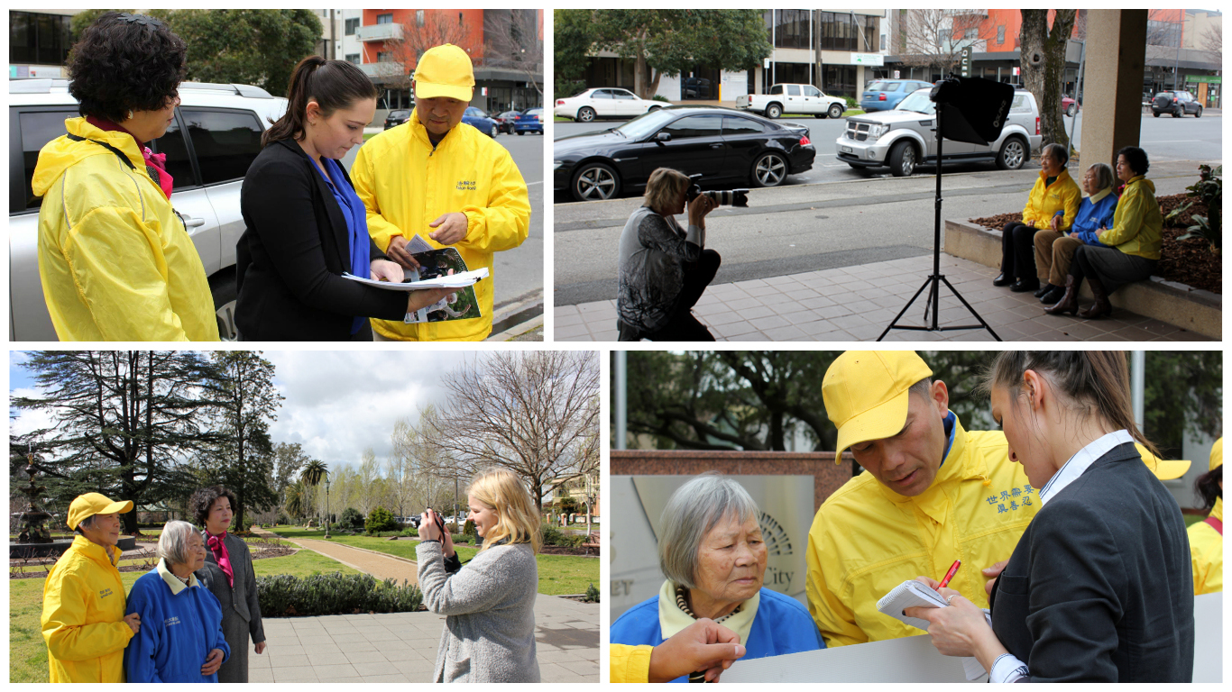 ![]() 人们听学员讲真相,签名呼吁澳洲总理采取行动反活摘 |