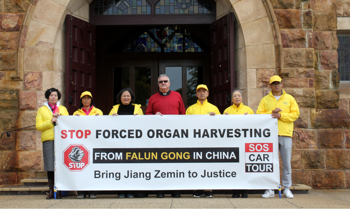 Wagga Wagga 镇的天主教牧师 Ken 听闻学员介绍活摘器官的真相后,当即表示他会为终止此事而祈祷,并邀学员们到教堂门口合影以表支持。